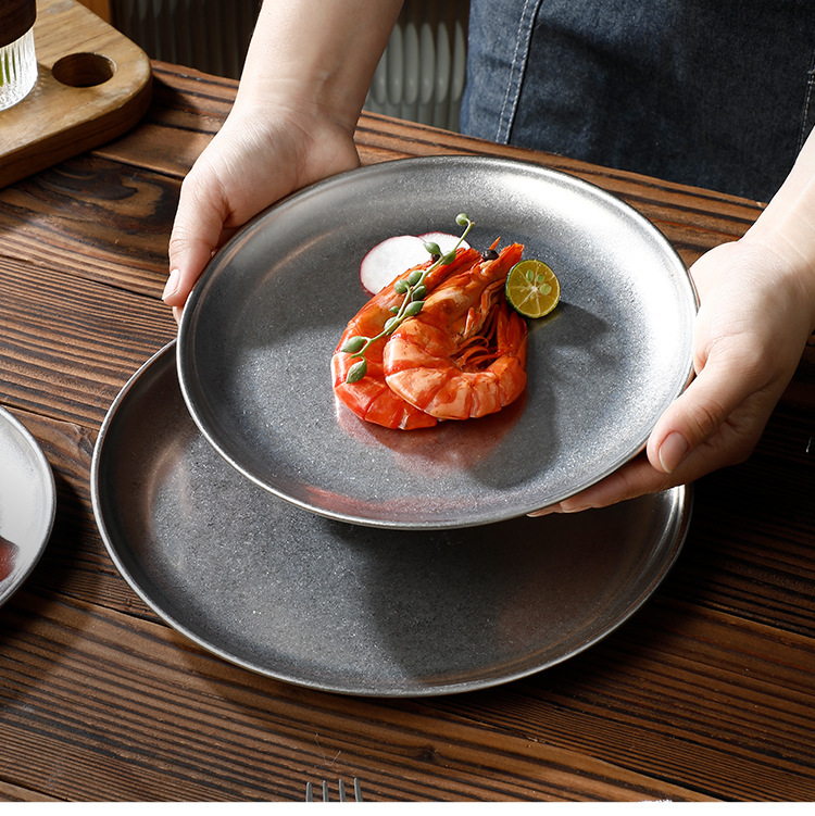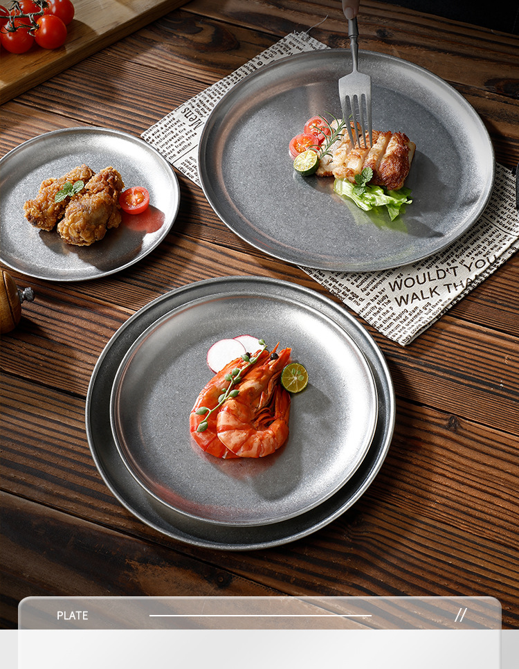 304 스테인레스 스틸 플레이트 한국식 바베큐 플레이트 오래된 가정용 디스크 트레이 서양 식품 플레이트 바베큐 플레이트 뼈 플레이트 도매스토어 가기
