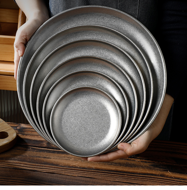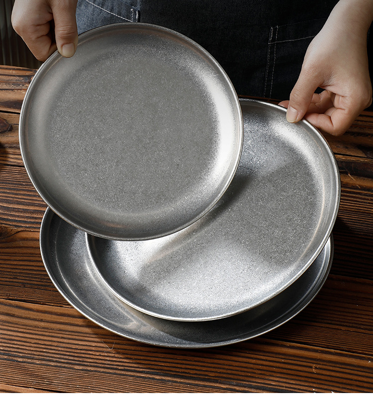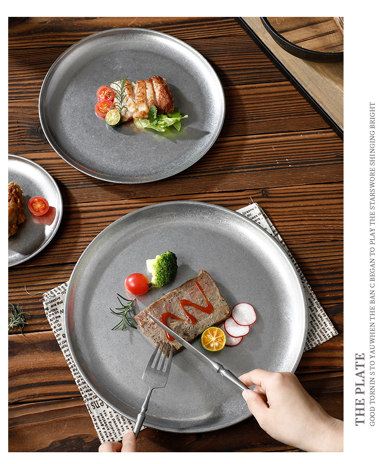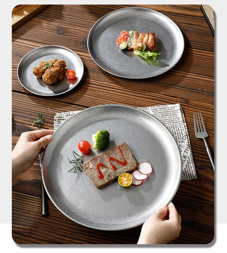 304 스테인레스 스틸 플레이트 한국식 바베큐 플레이트 오래된 가정용 디스크 트레이 서양 식품 플레이트 바베큐 플레이트 뼈 플레이트 도매