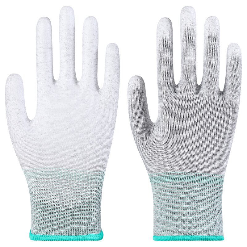 탄소 섬유 정전기 방지 PU 코팅 팜 장갑 노동 보호 내마모성 담근 먼지가없는 전자 공장 작업 보호 장갑