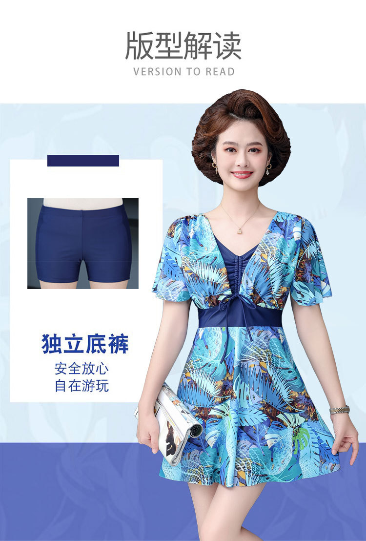 온천 플러스 사이즈 플러스 사이즈 수영복 여성 스플릿 복서 치마 보수적 인 중년 엄마 수영복 통통녀 도매스토어 가기