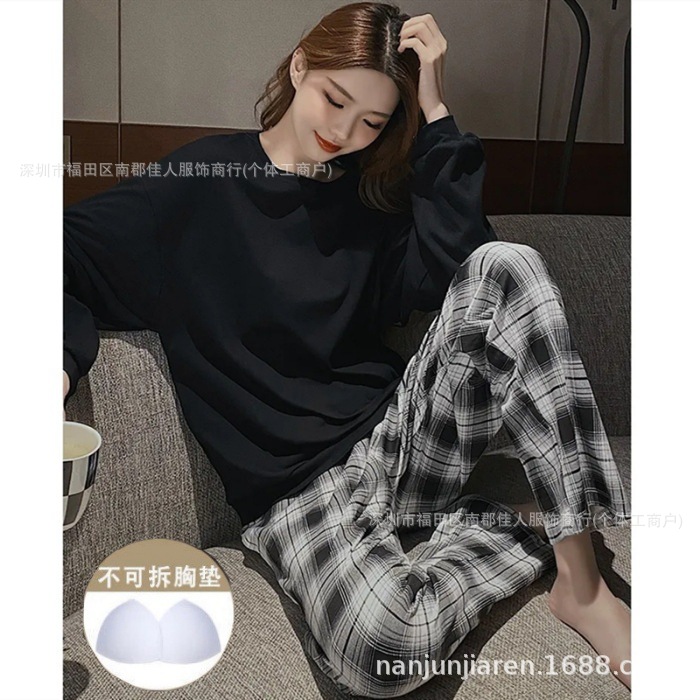 • 703#검은색 탑 체크 무늬 바지