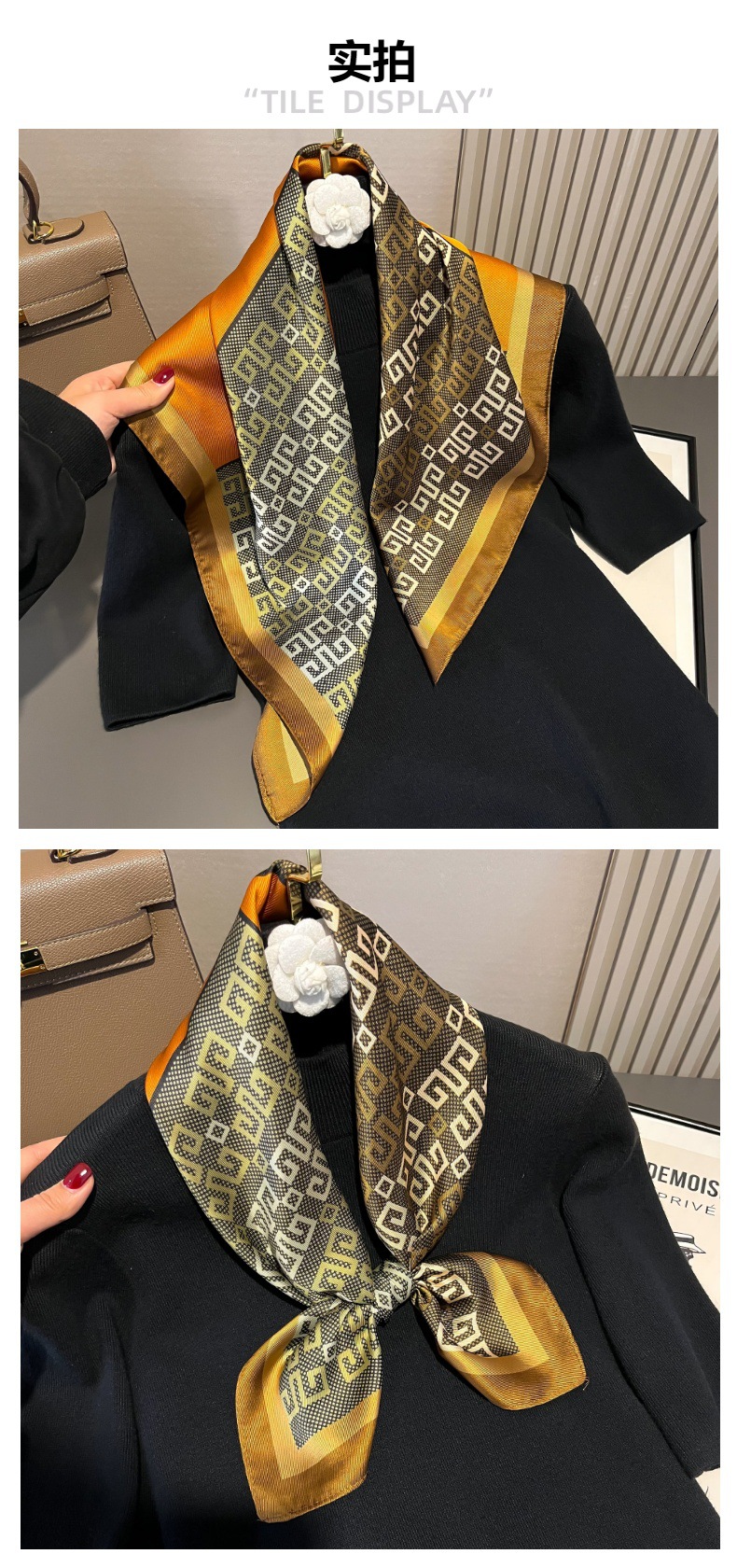 봄 새로운 우아한 간단한 인쇄 인공 실크 스카프 70cm 패션 작은 사각형 스카프 여성의 올 매치 고급 실크 스카프스토어 가기