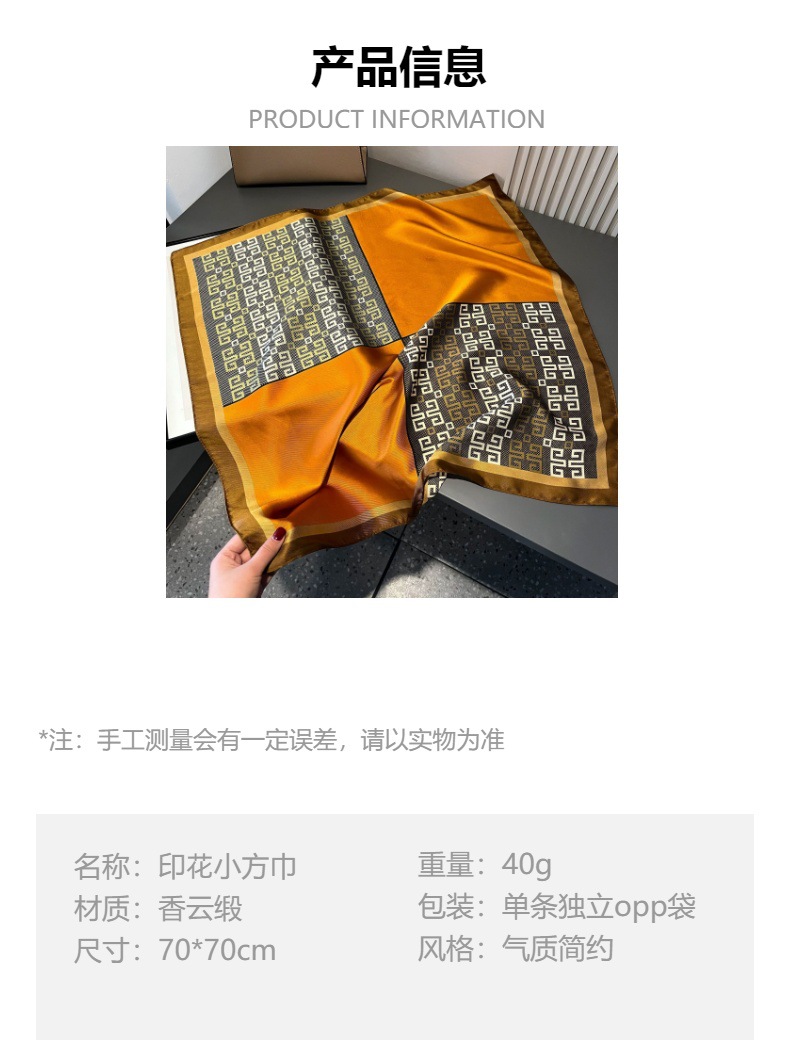봄 새로운 우아한 간단한 인쇄 인공 실크 스카프 70cm 패션 작은 사각형 스카프 여성의 올 매치 고급 실크 스카프