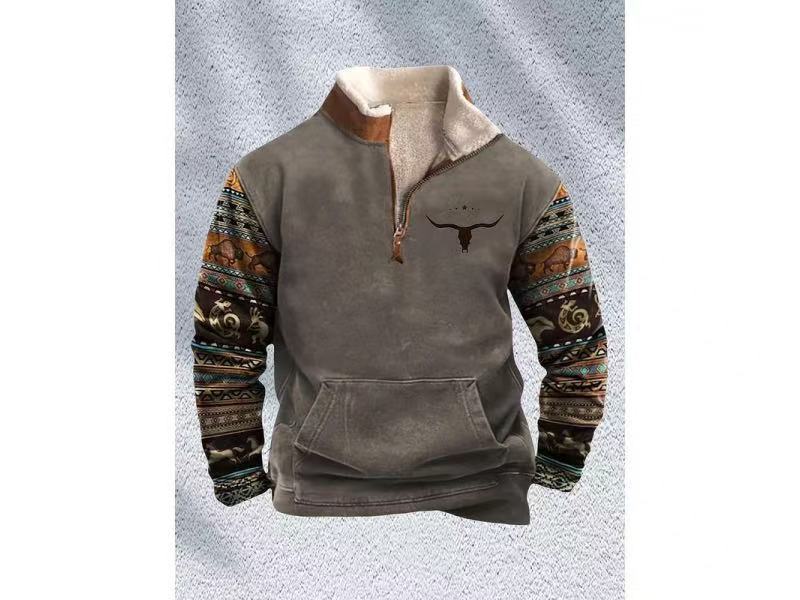 아마존 봄과 가을 새로운 남자의 긴 소매 반 지퍼 스웨트 셔츠 3D 인쇄 캐주얼 패션 유럽과 미국의 패션 재킷 외부