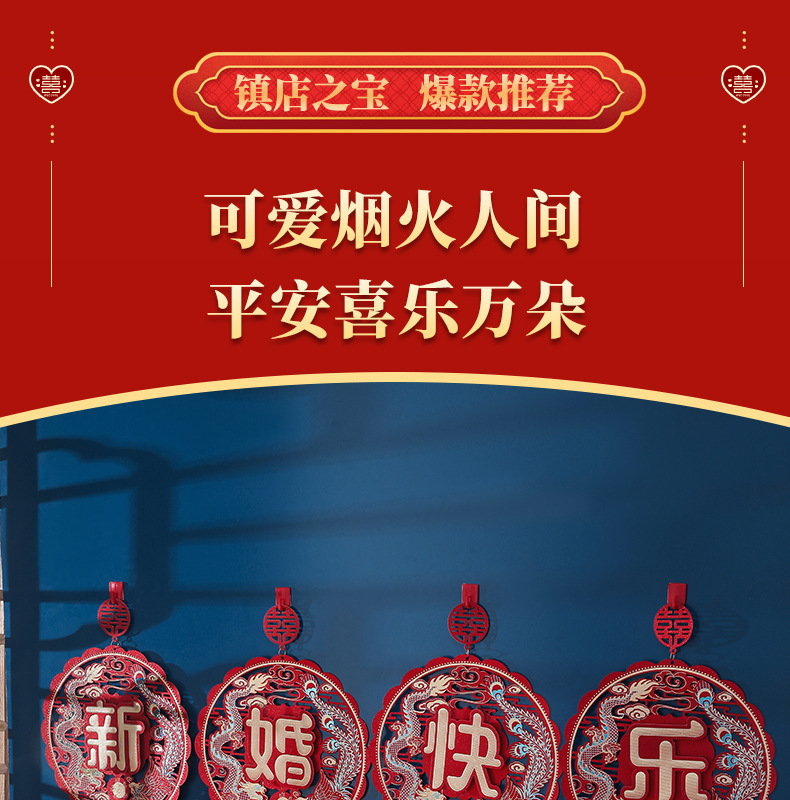 웨딩 장식 웨딩 룸 레이아웃 배경 장식품 웨딩 세트 남성과 여성의 새 집 거실 침실 Xi 캐릭터 펜던트스토어 가기
