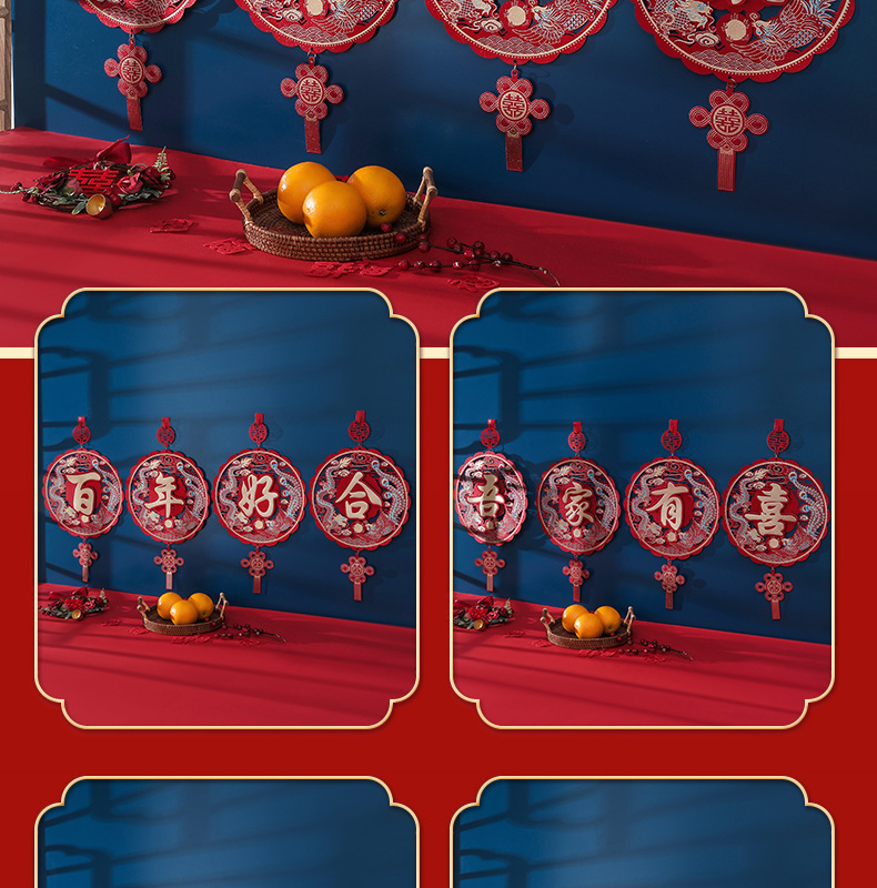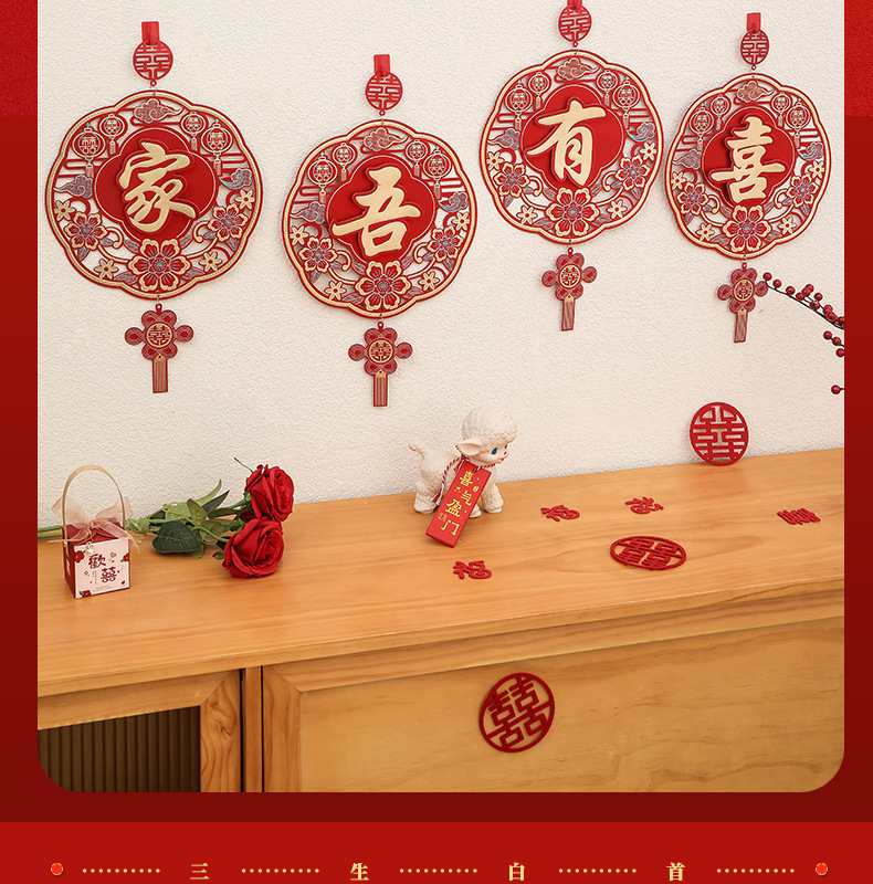 웨딩 장식 웨딩 룸 레이아웃 배경 장식품 웨딩 세트 남성과 여성의 새 집 거실 침실 Xi 캐릭터 펜던트