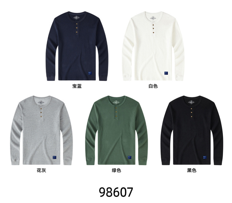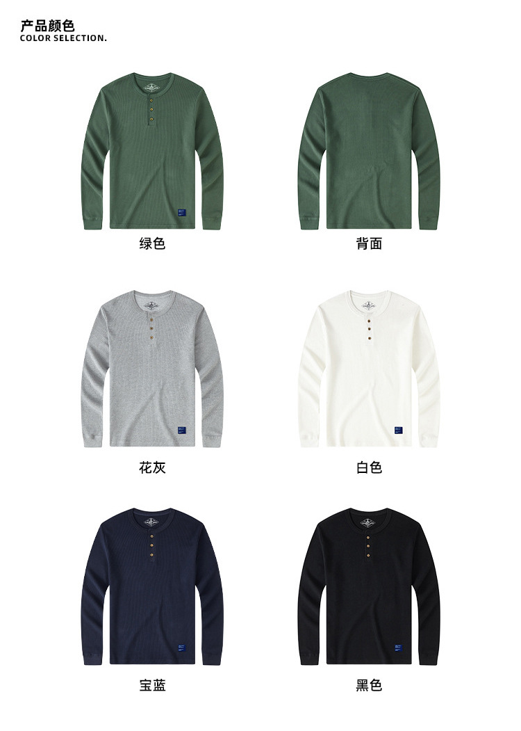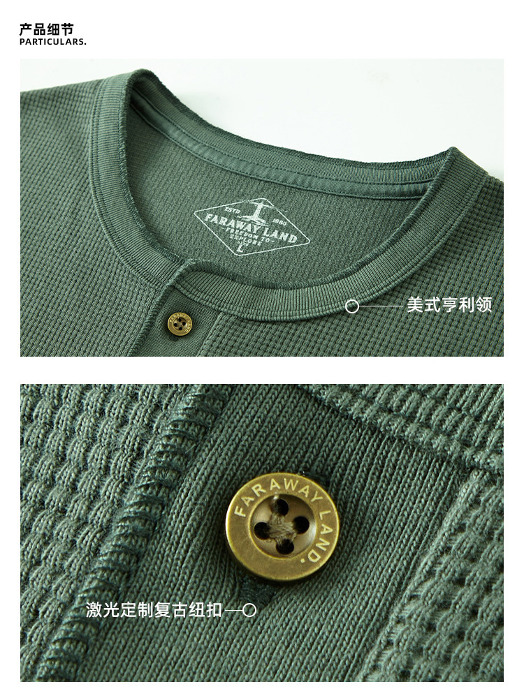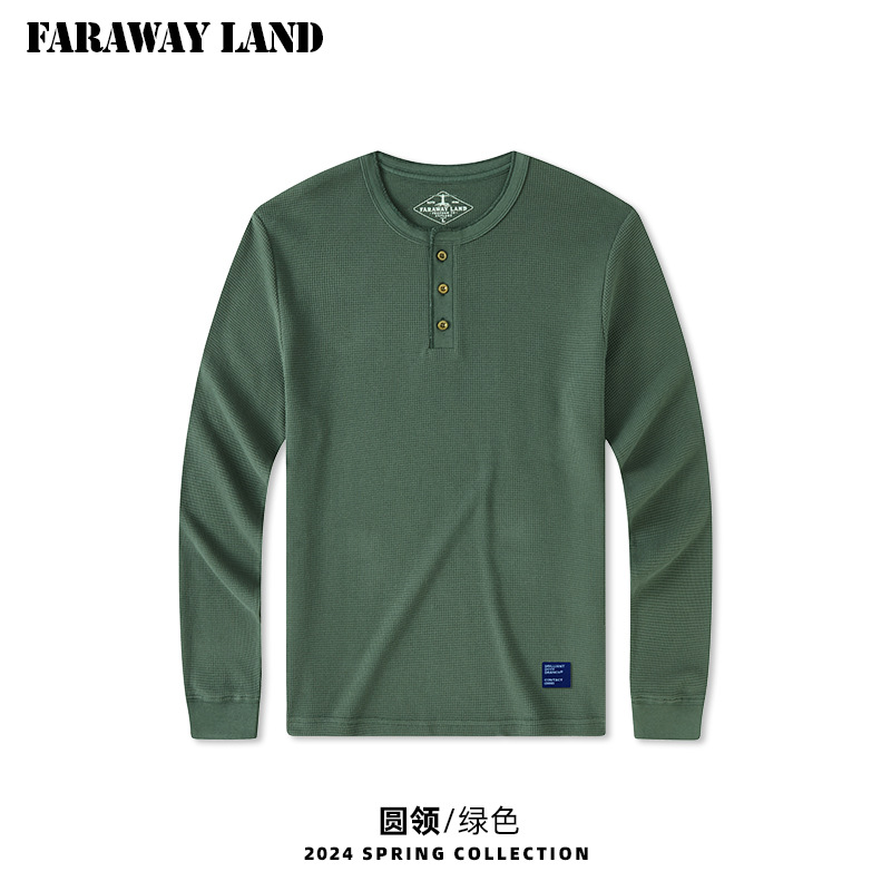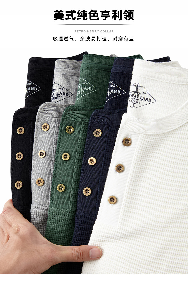 헨리 칼라 밑단 셔츠 남성 티셔츠 와플 아메리칸 솔리드 컬러 이너웨어 남성 아미 카키색 옷 심플 긴팔스토어 가기