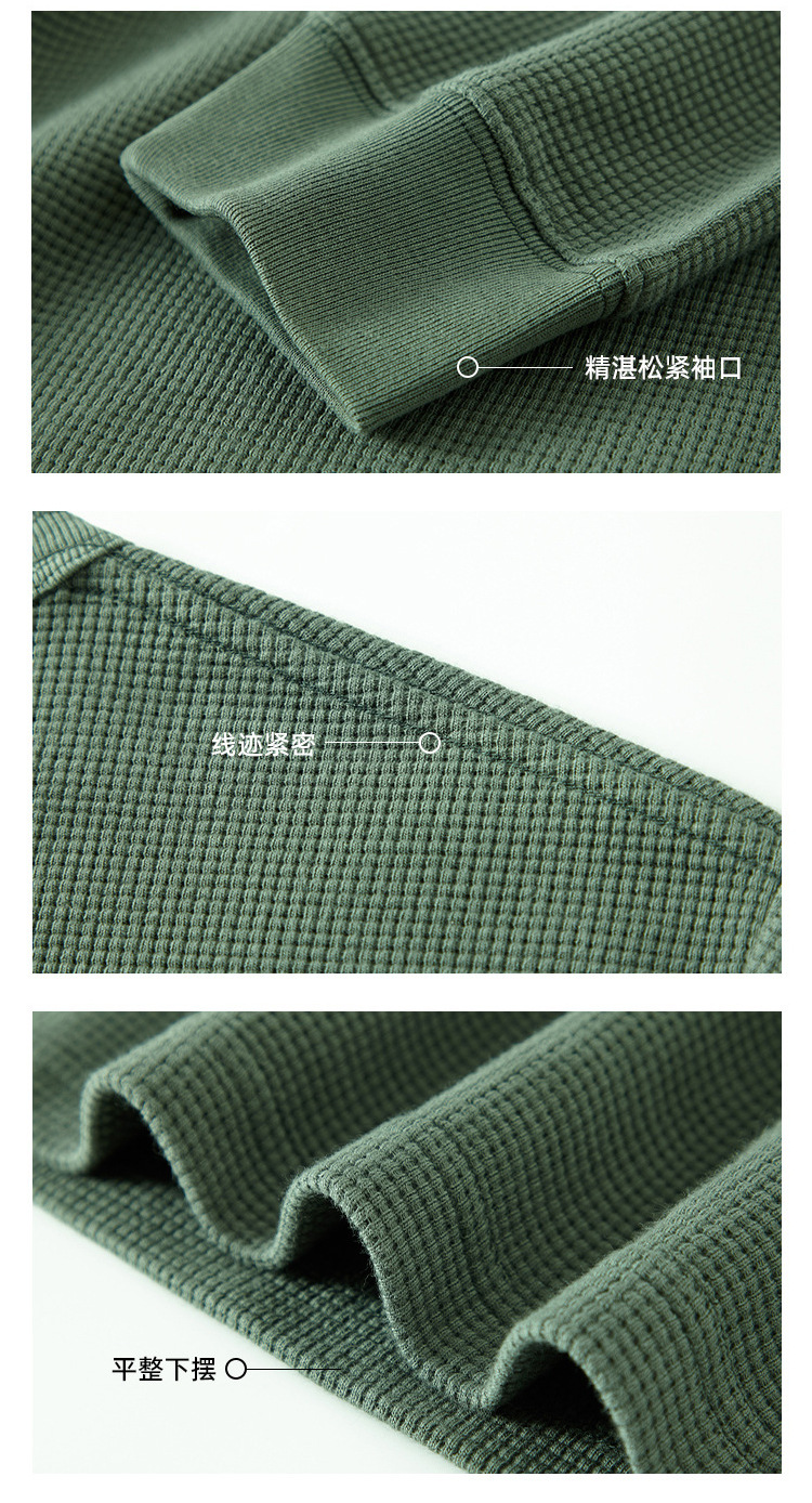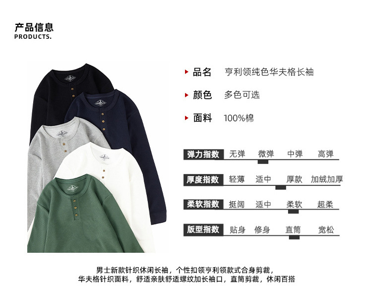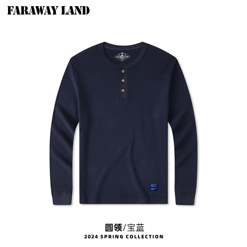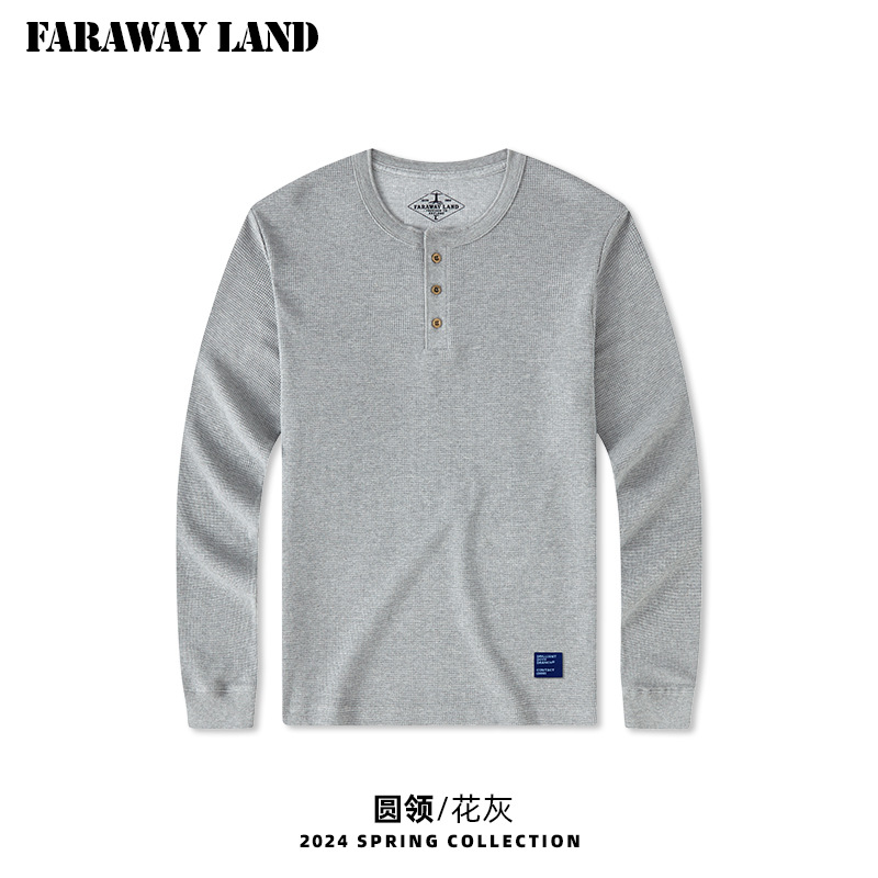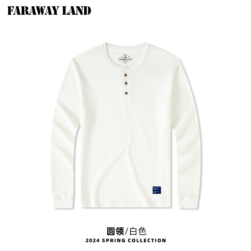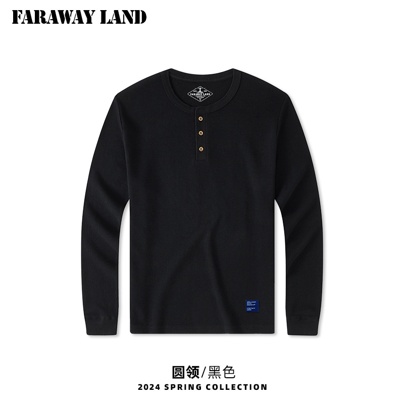 헨리 칼라 밑단 셔츠 남성 티셔츠 와플 아메리칸 솔리드 컬러 이너웨어 남성 아미 카키색 옷 심플 긴팔스토어 가기