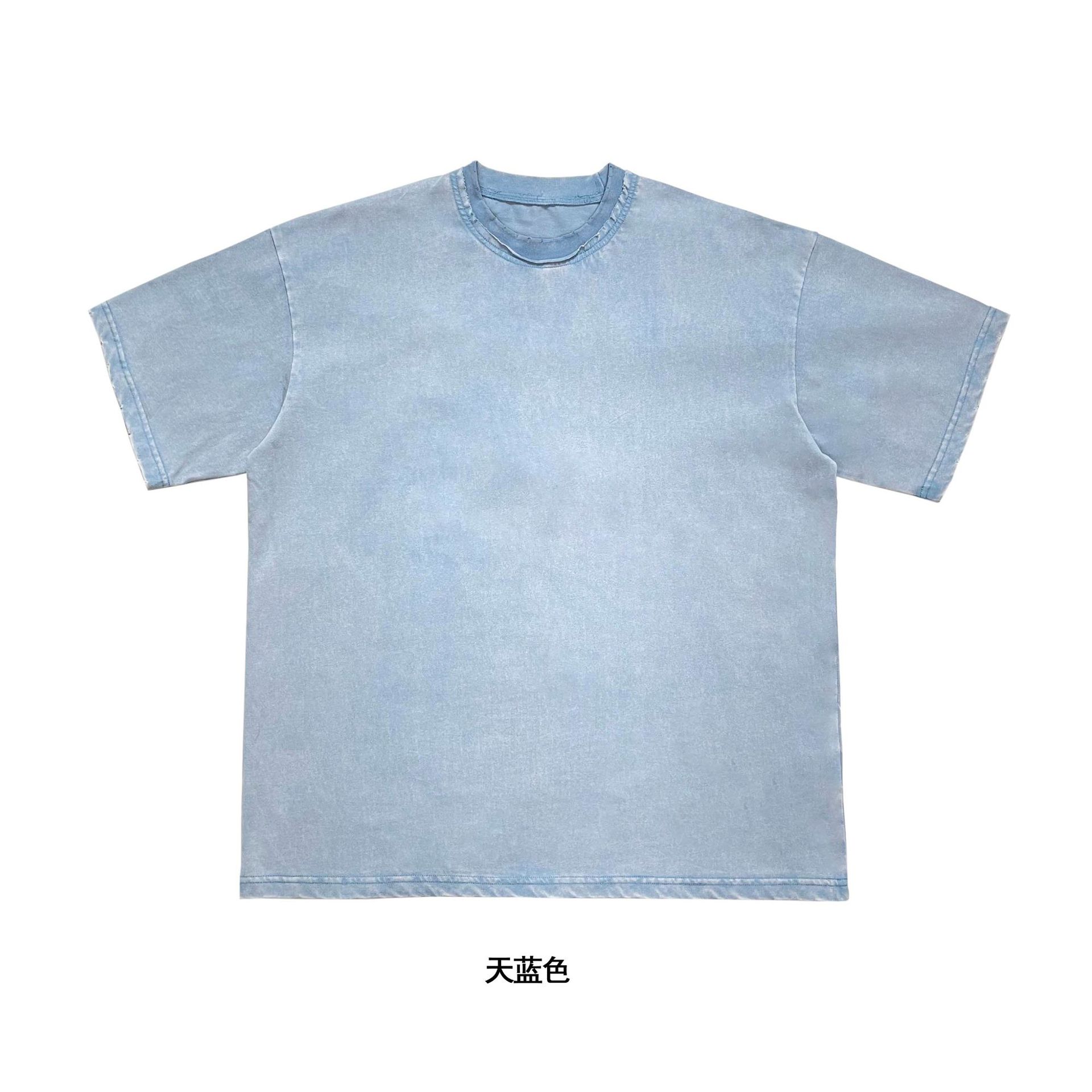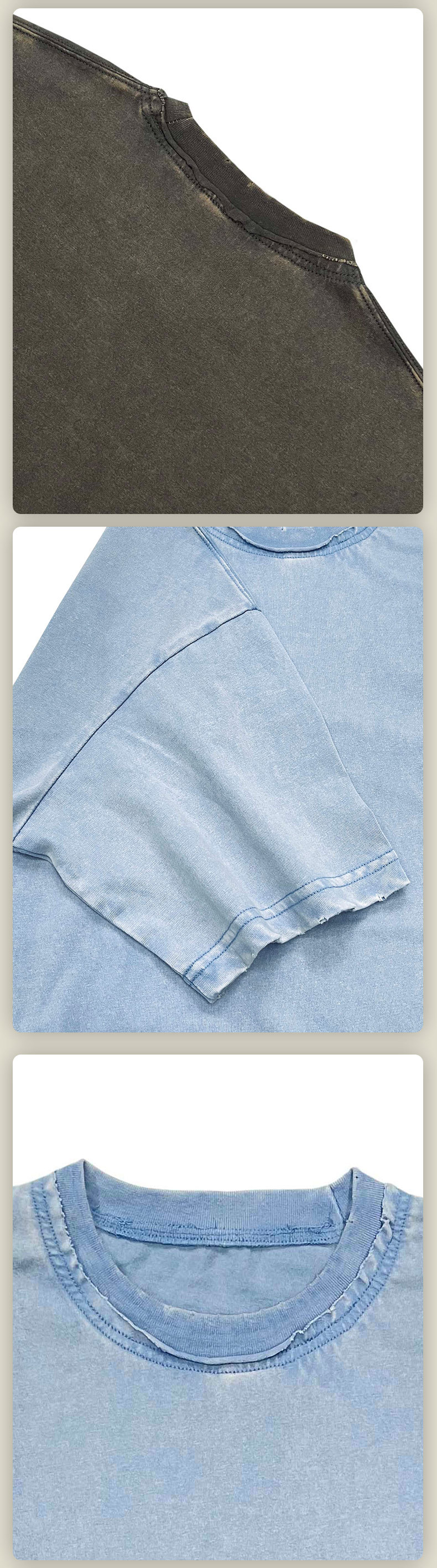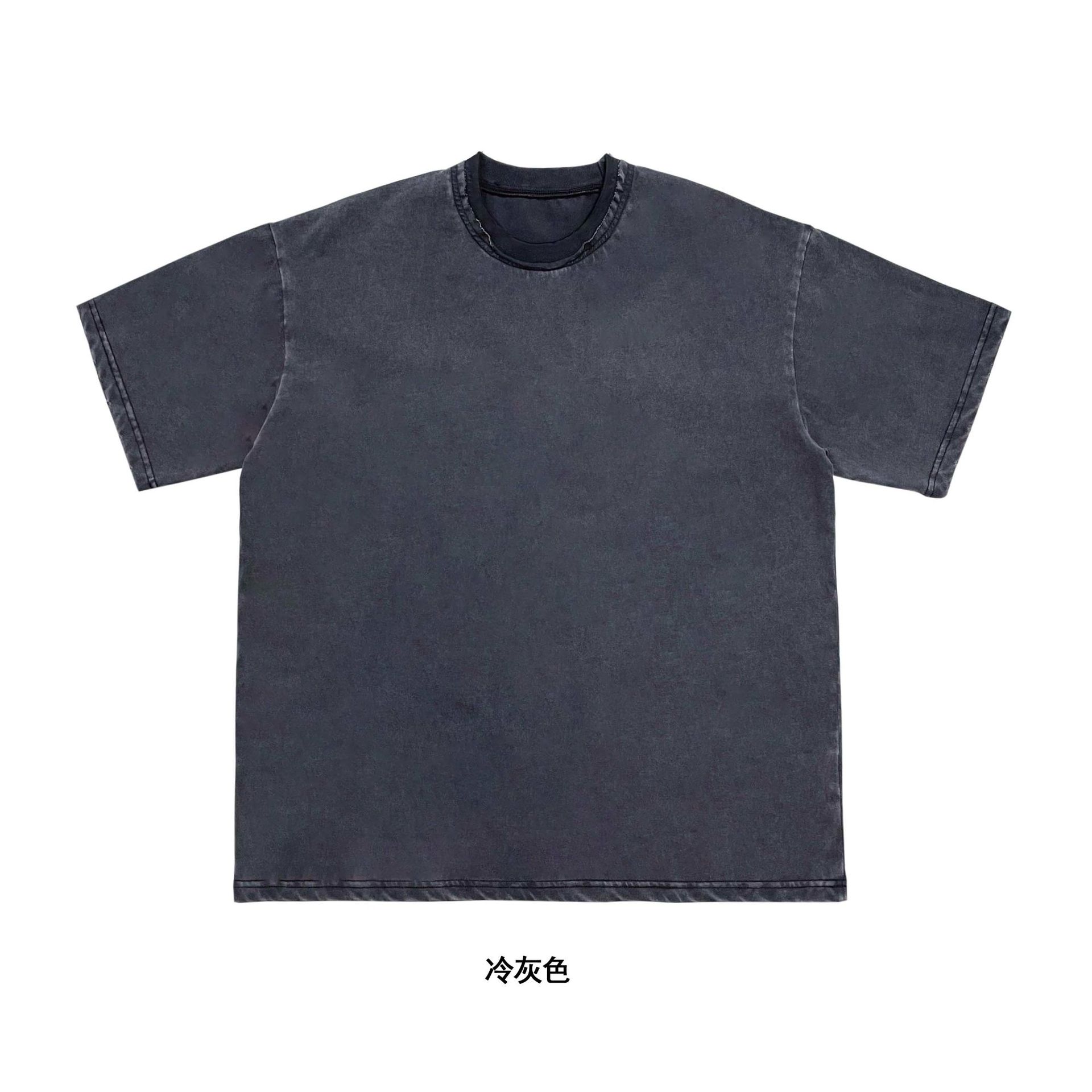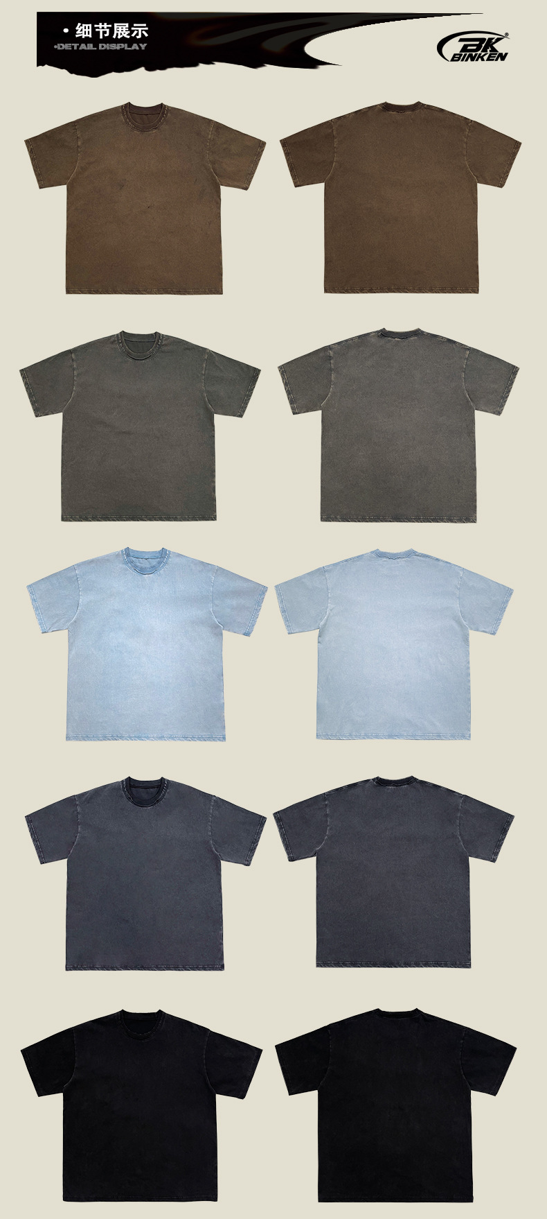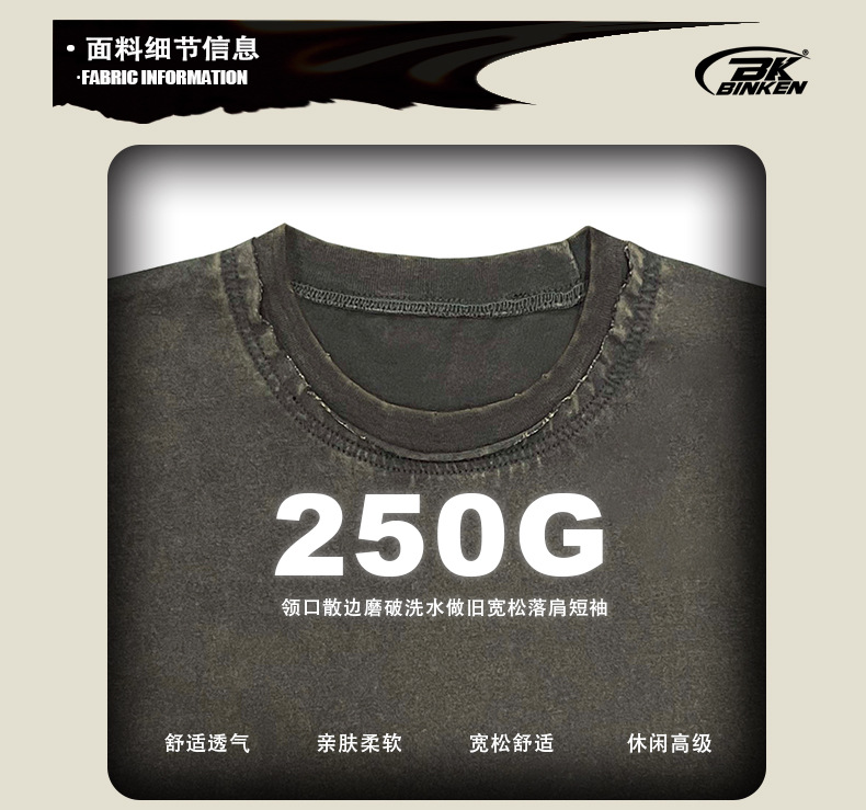BK 남성복 250g 더블 칼라 디자인 데미지드 순면 티셔츠 남성용 아메리칸 스트리트 패션 워싱 빈티지 반팔 브랜드 티셔츠스토어 가기