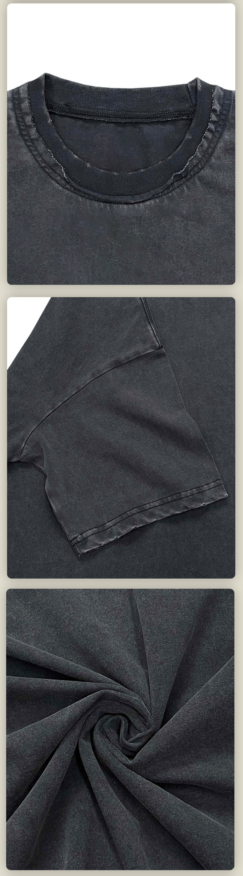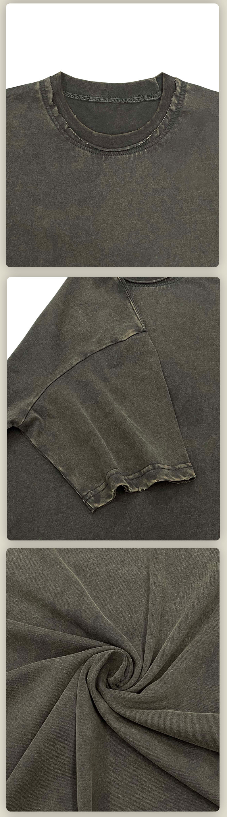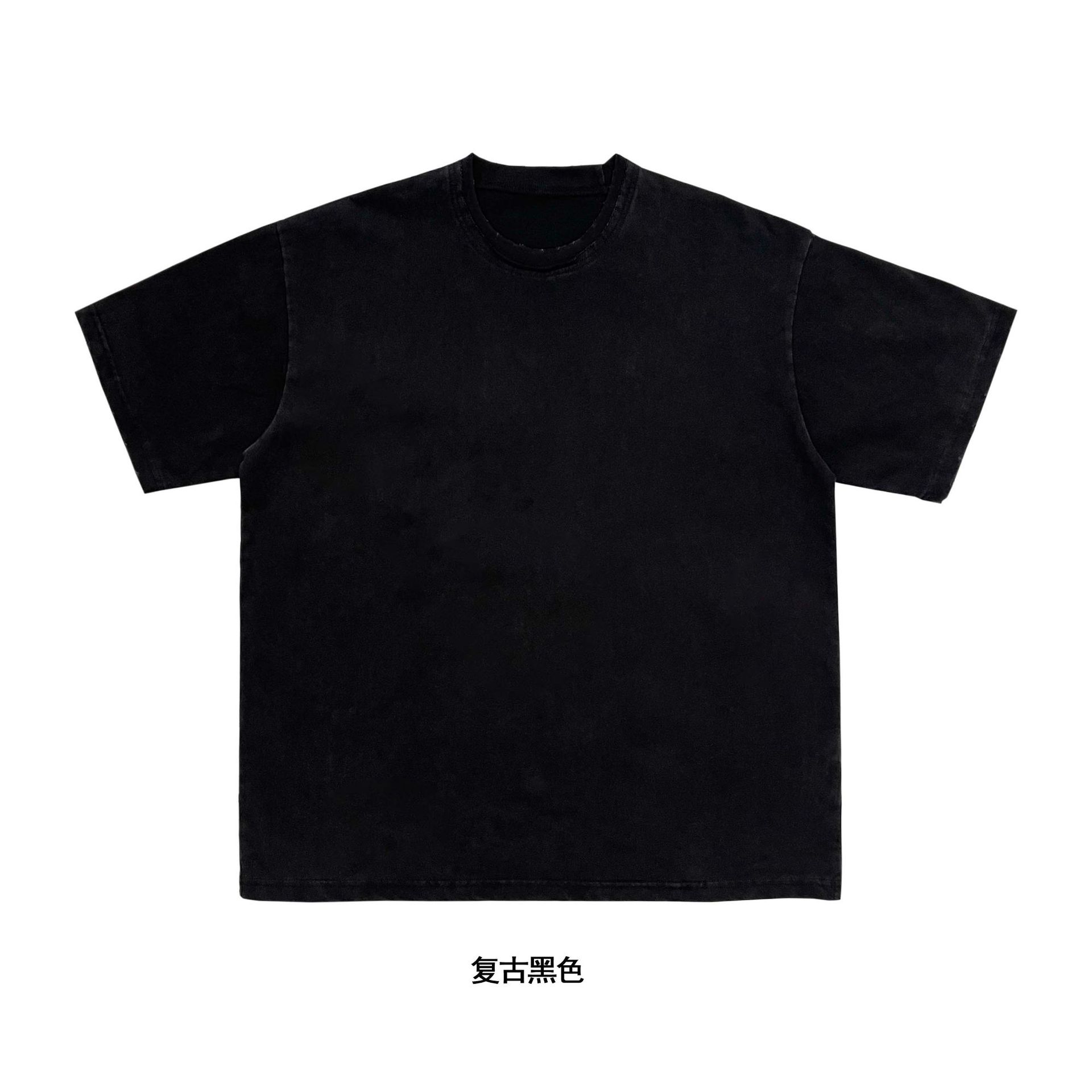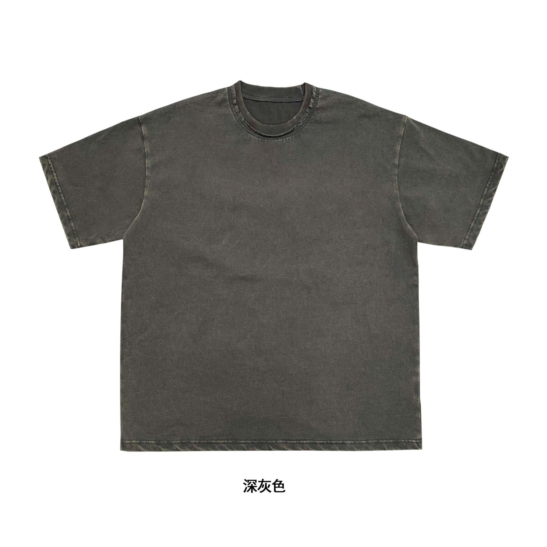 BK 남성복 250g 더블 칼라 디자인 데미지드 순면 티셔츠 남성용 아메리칸 스트리트 패션 워싱 빈티지 반팔 브랜드 티셔츠스토어 가기