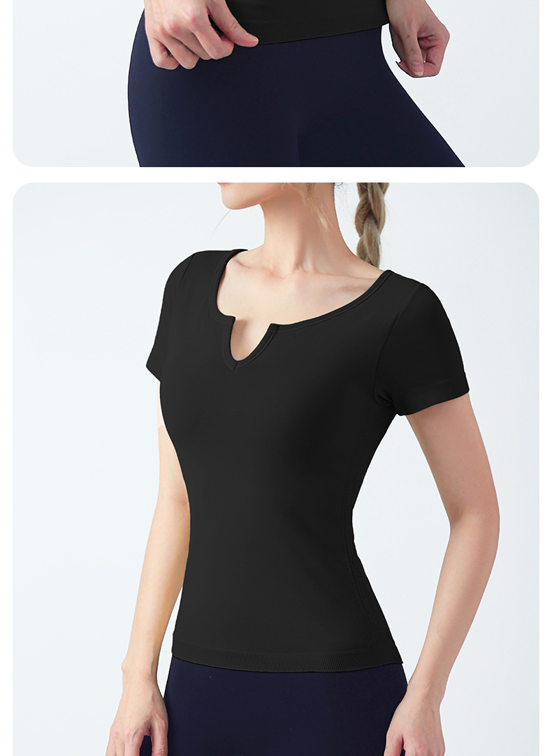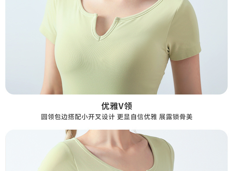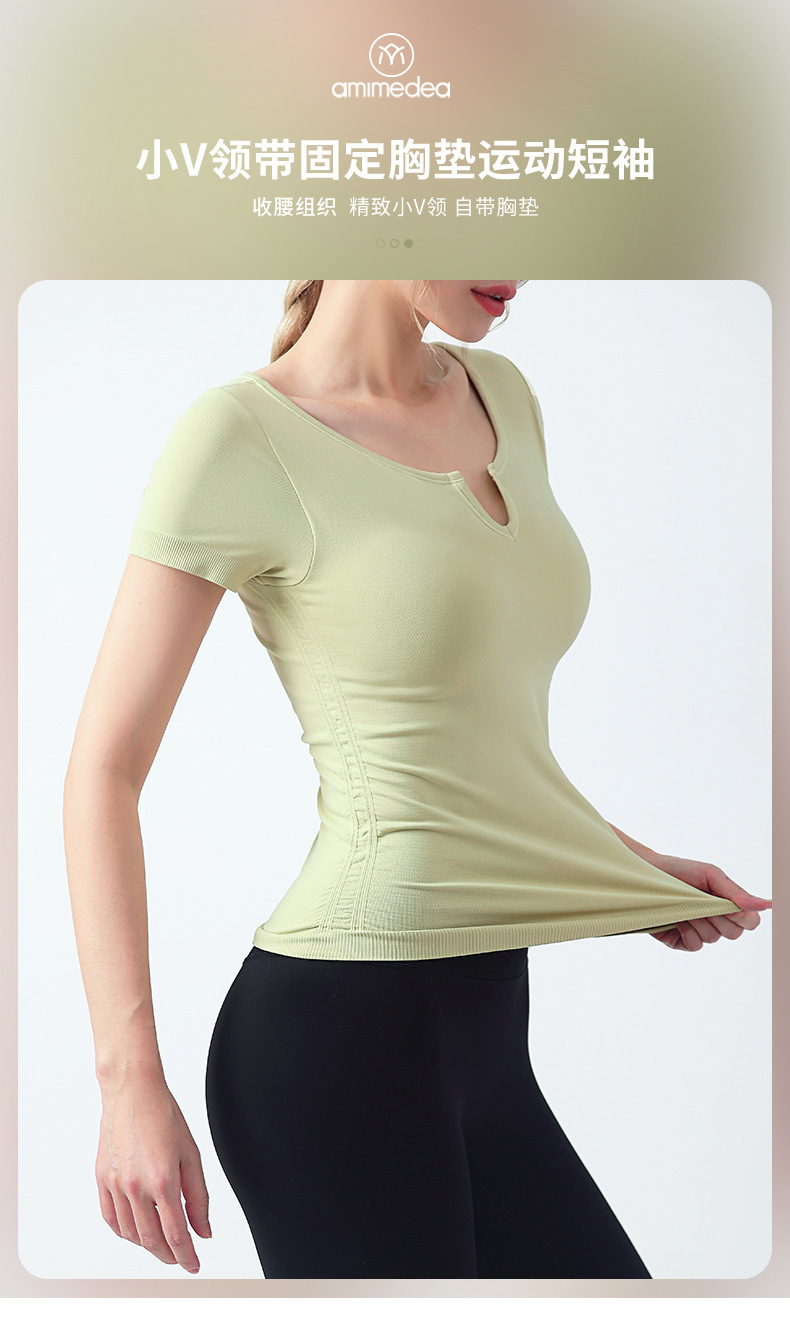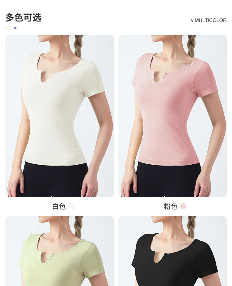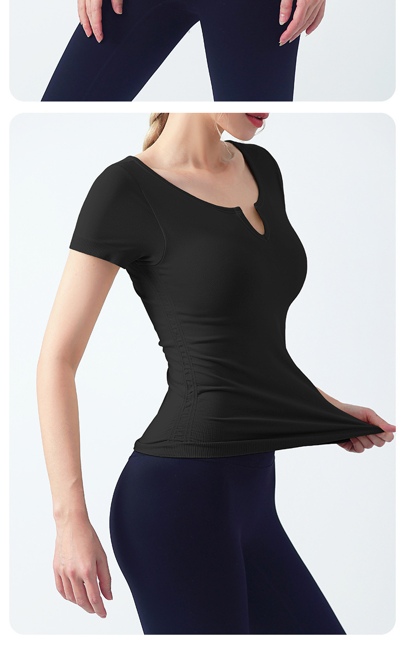 아이스크림 주름 거품 슬리밍 원활한 V 넥 짧은 소매 스포츠 고정 코스터 요가 옷 피트니스 탑