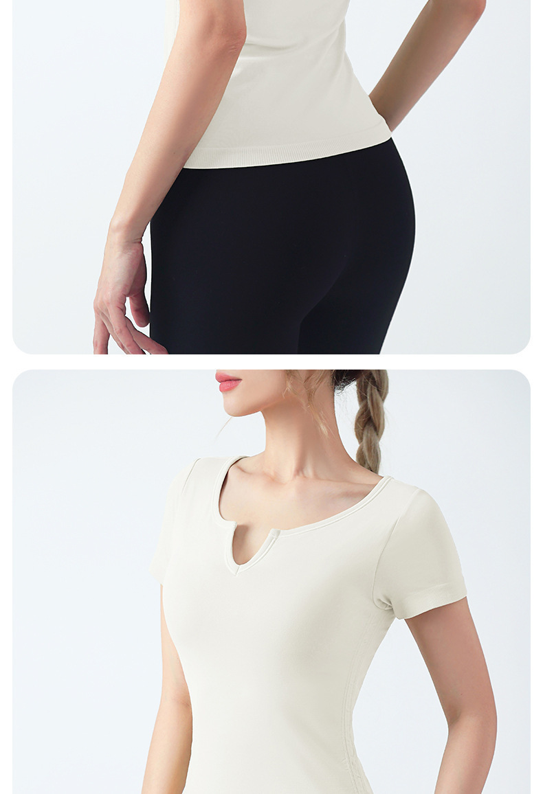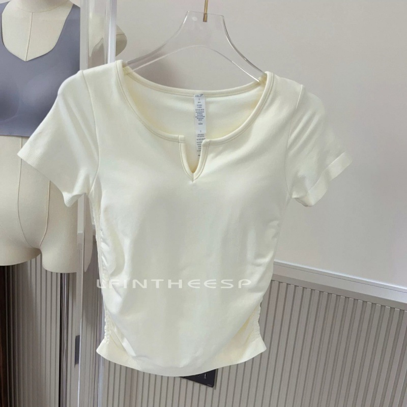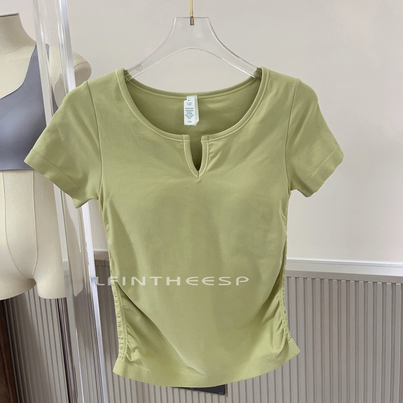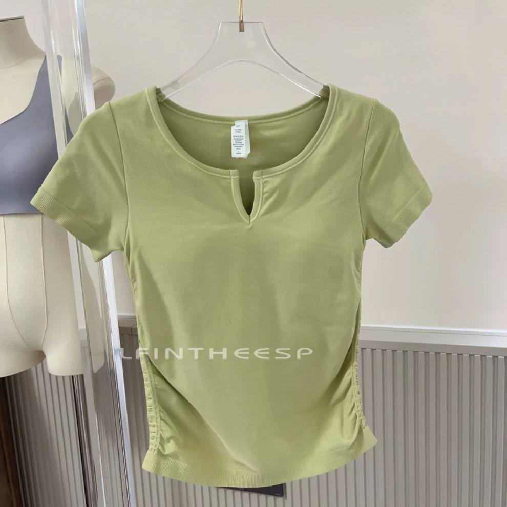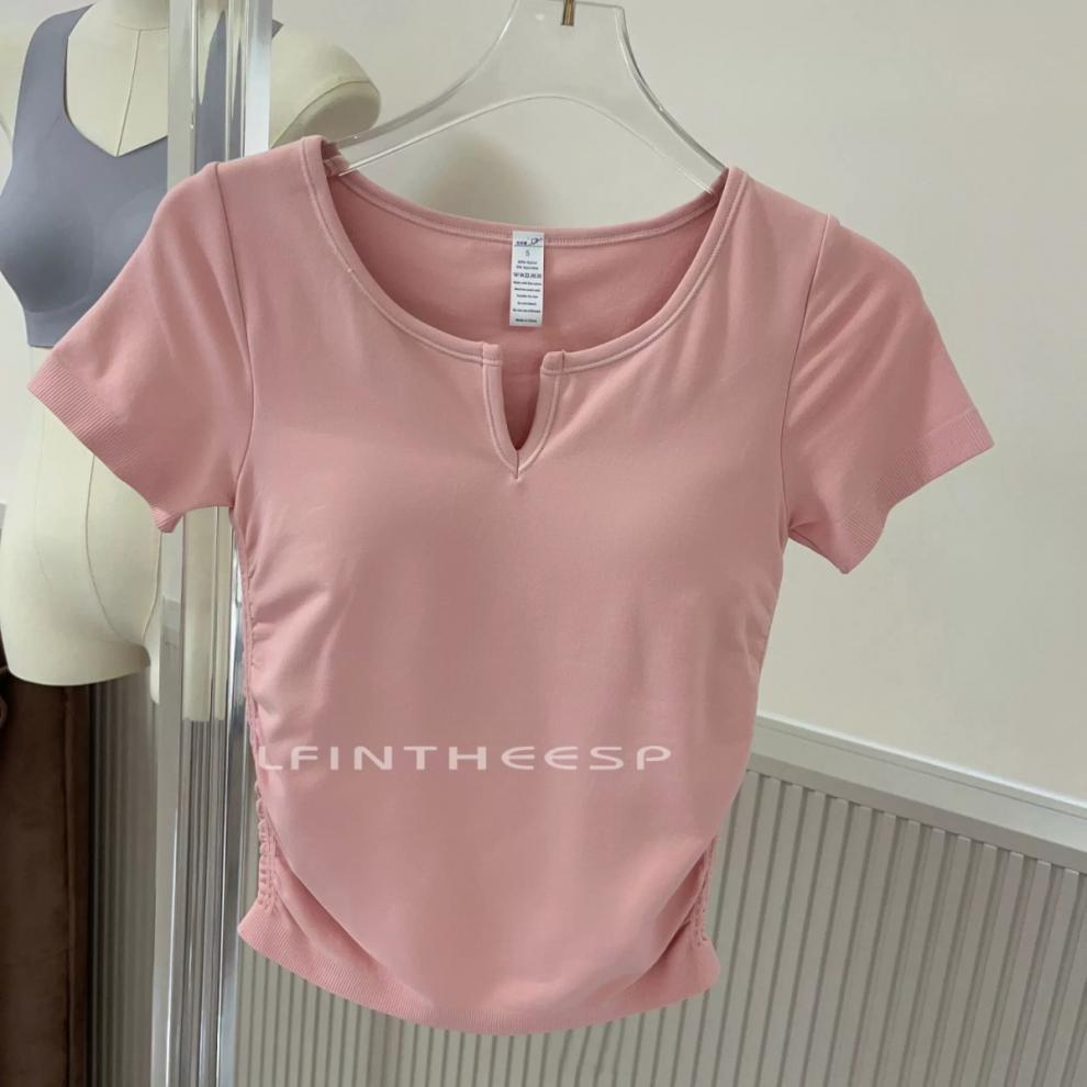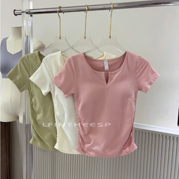 아이스크림 주름 거품 슬리밍 원활한 V 넥 짧은 소매 스포츠 고정 코스터 요가 옷 피트니스 탑스토어 가기