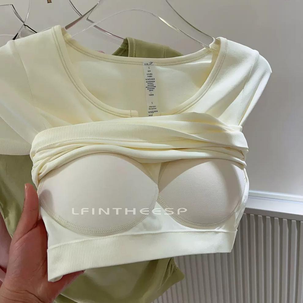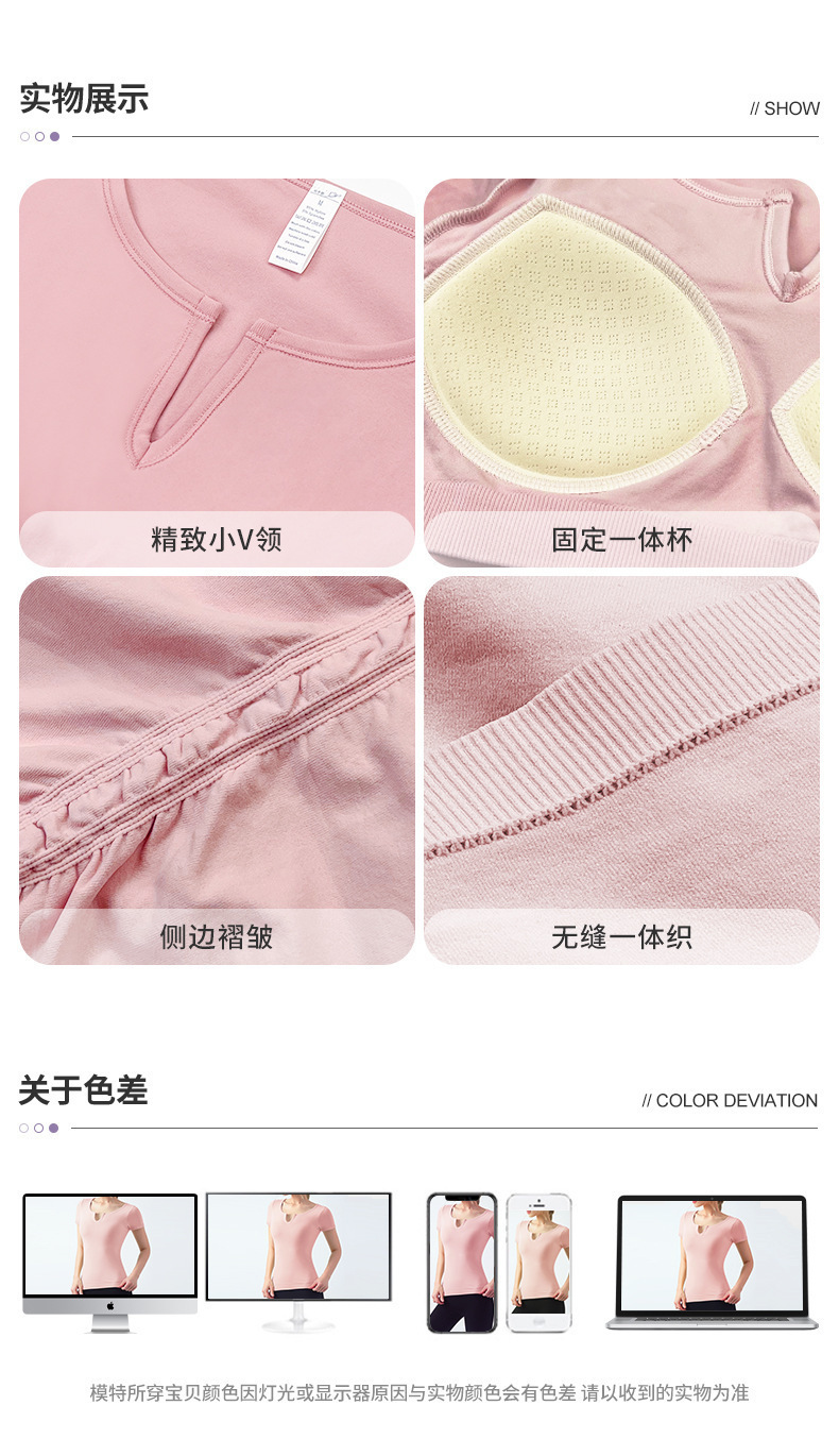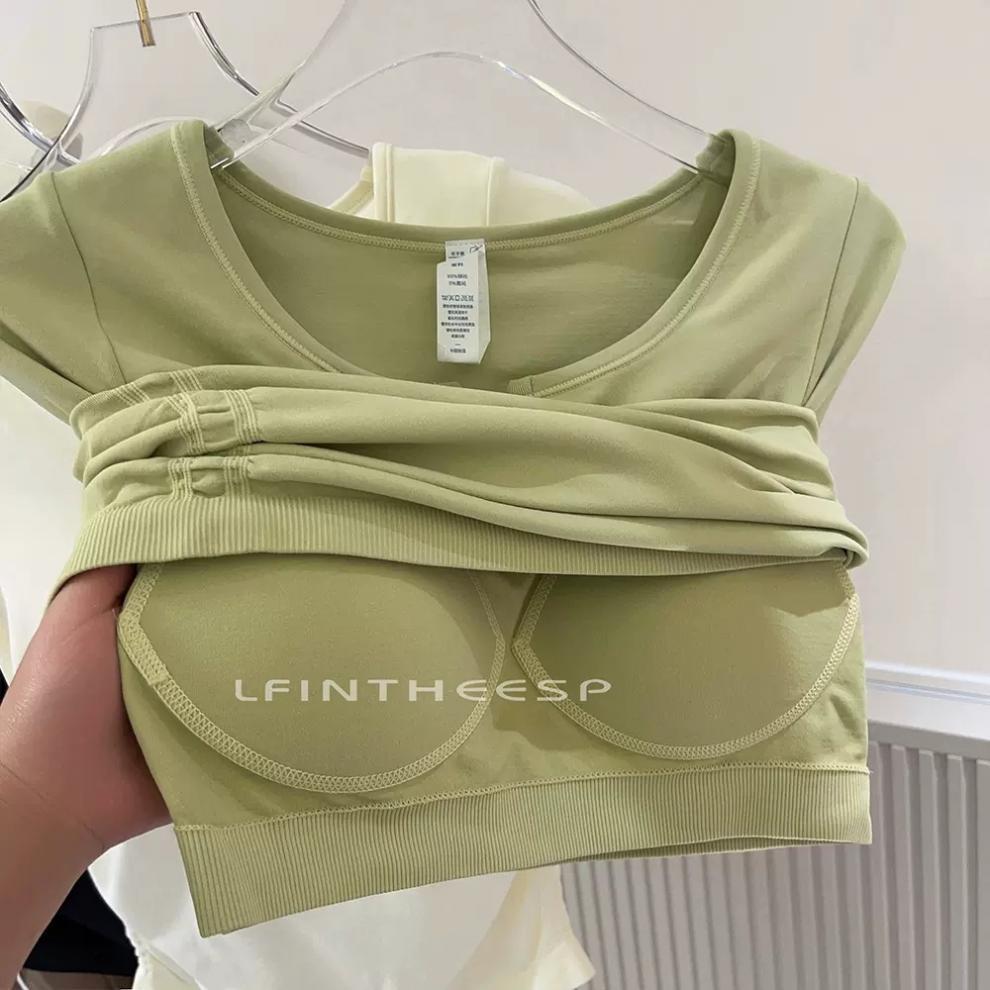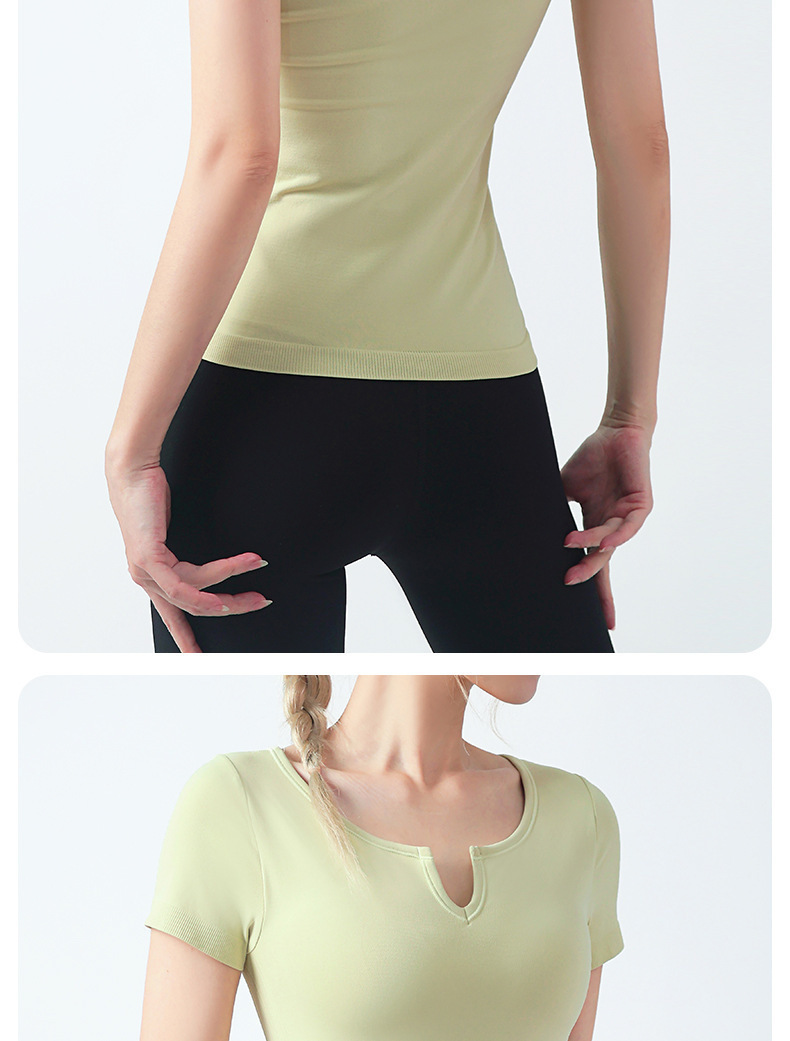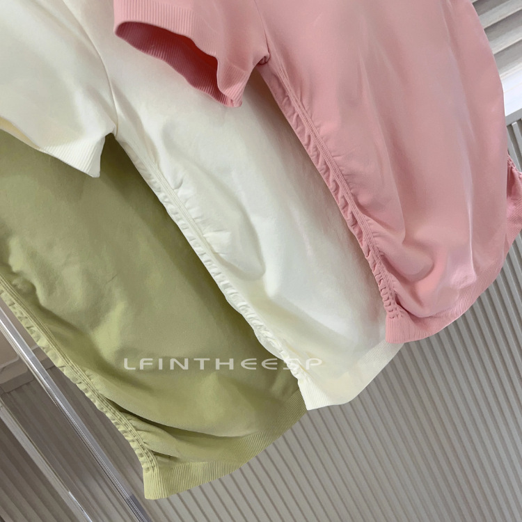 아이스크림 주름 거품 슬리밍 원활한 V 넥 짧은 소매 스포츠 고정 코스터 요가 옷 피트니스 탑스토어 가기