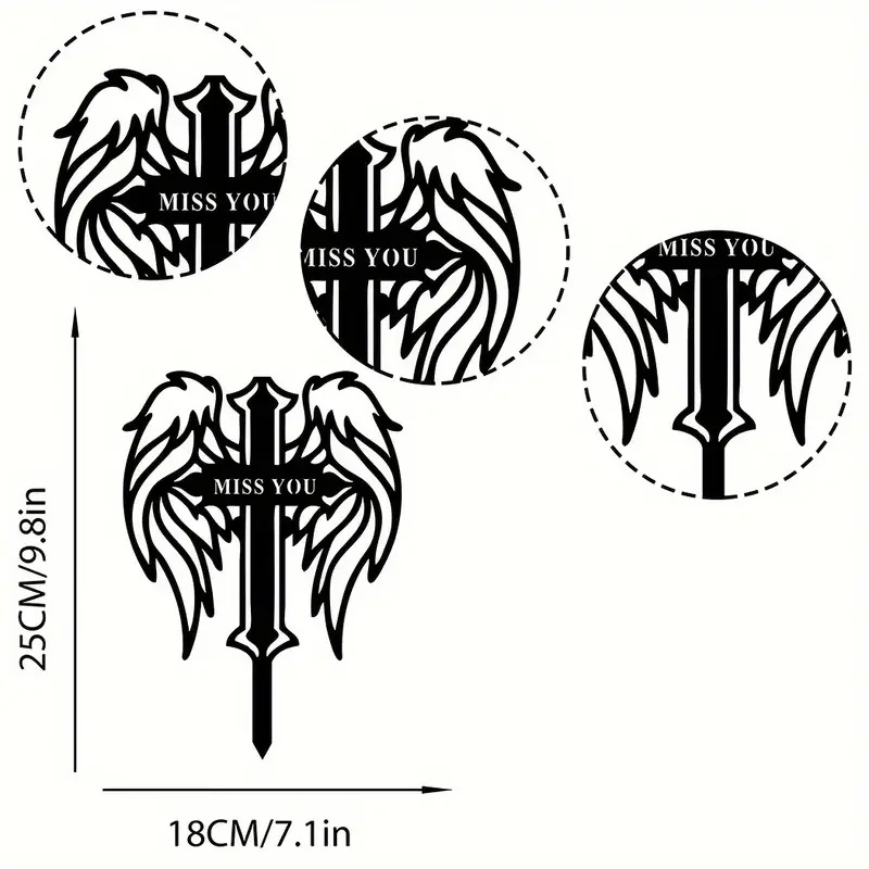 국경 간 천사 날개 교차 기념 정원 스테이크 무덤 마커 스테이크, 묘지, 금속 기념 크로스