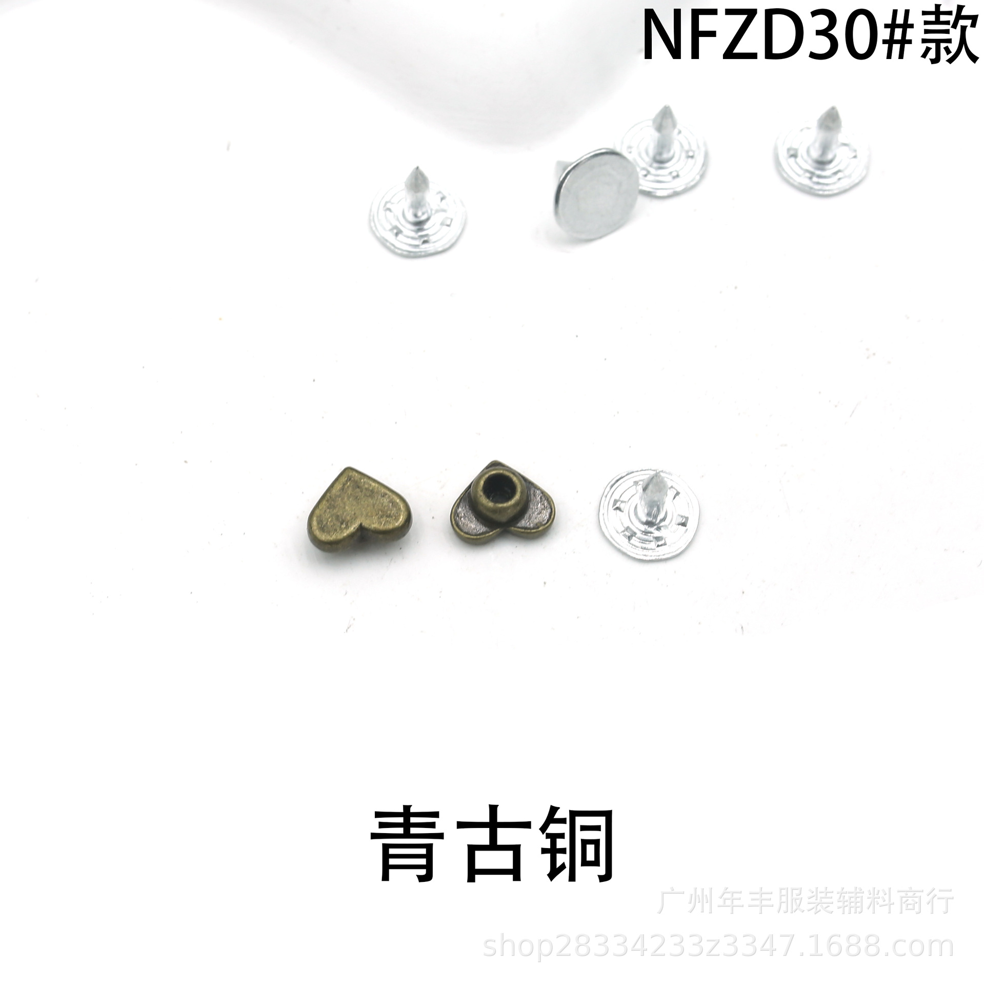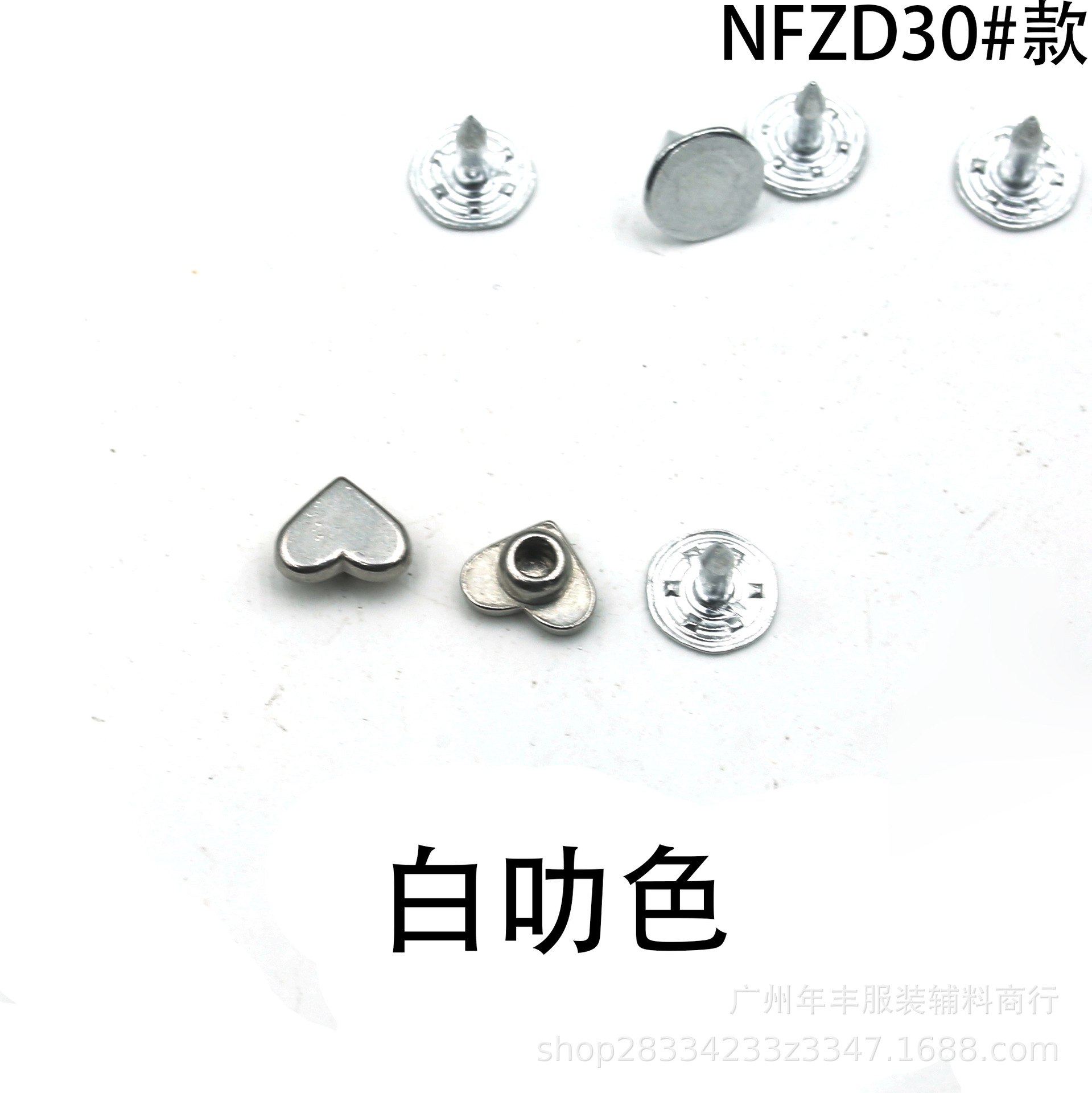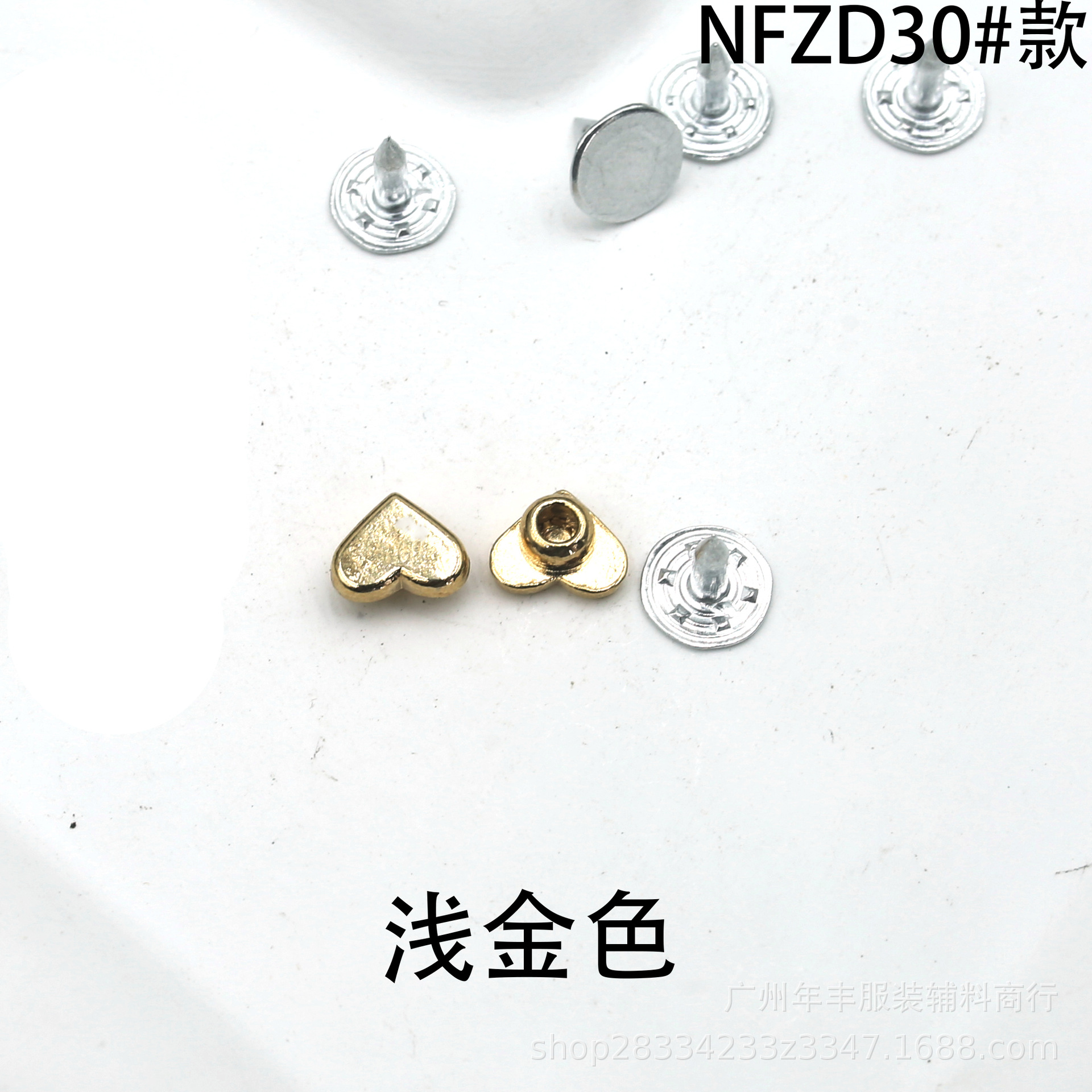소스 공장 심장 모양의 학생 어린이 성인 청바지 엉덩이 가방 균열 스터드 롤 도금 복숭아 심장 아연 합금 리벳