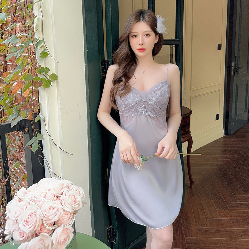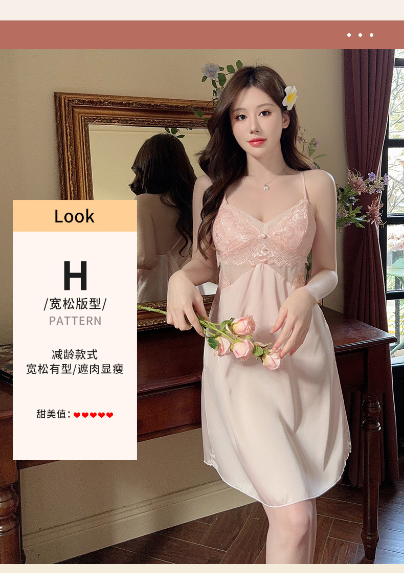 2025 섹시한 멀티 컬러 선택 가능한 레이스 슬립 홈웨어 달콤하고 우아한 프렌치 레트로 인스타 스타일 잠옷 세트스토어 가기