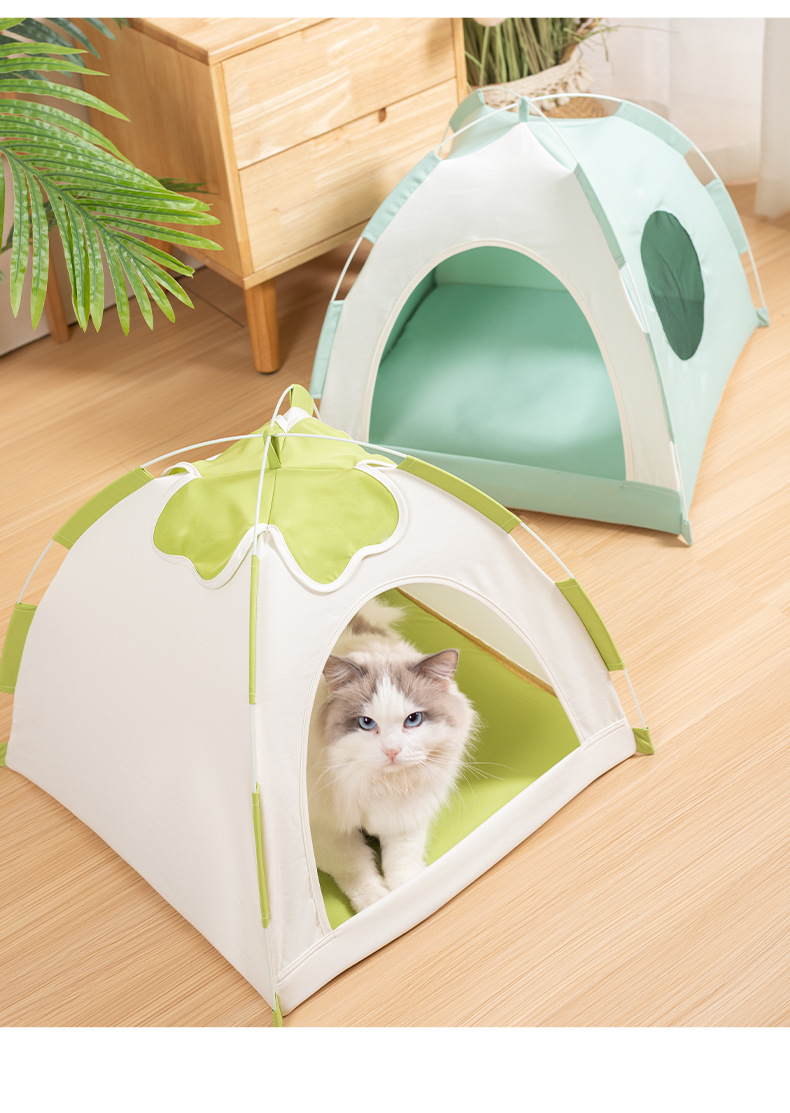 고양이 텐트 창조적 인 고양이 둥지 작은 신선한 4 잎 클로버 여름 애완 동물 용품 사계절 보편적 인 설치-무료 접이식