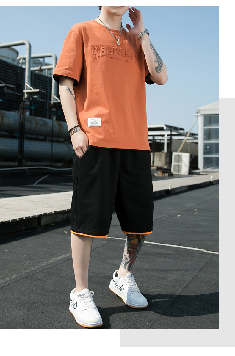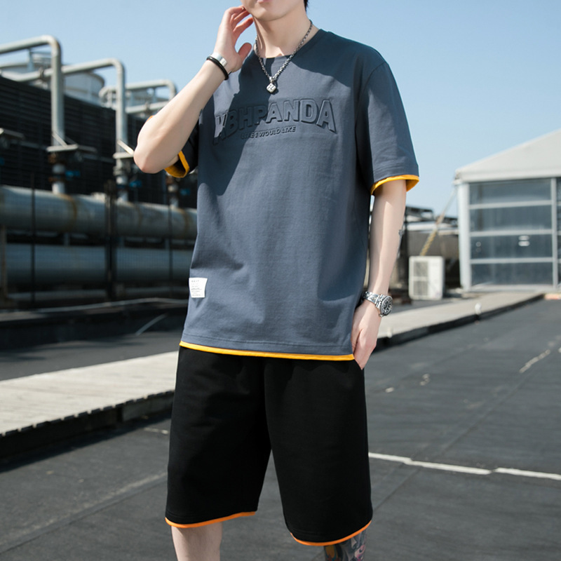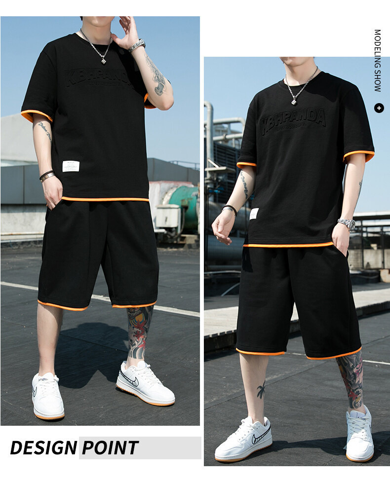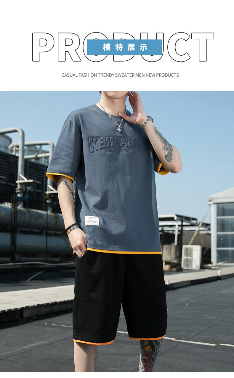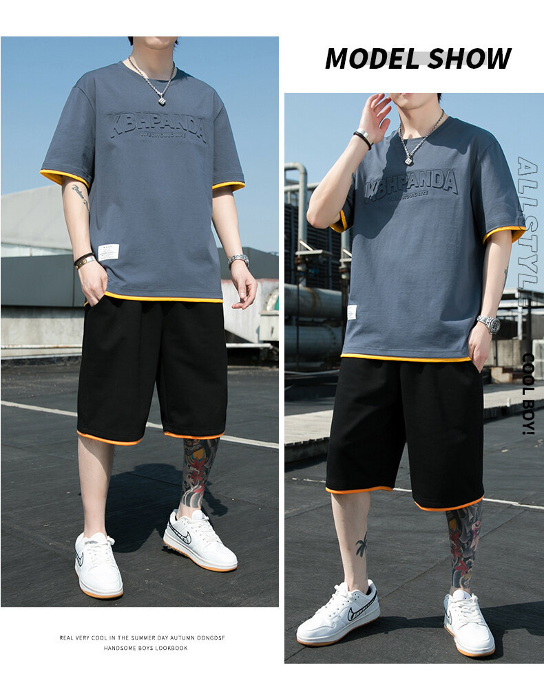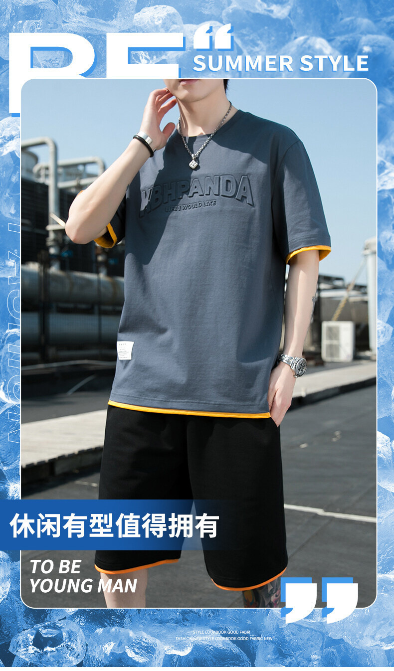 스포츠 세트 남자 여름 2023 새로운 반팔 티셔츠 남자 반바지 세트 잘 생긴 남자 옷을 입고스토어 가기