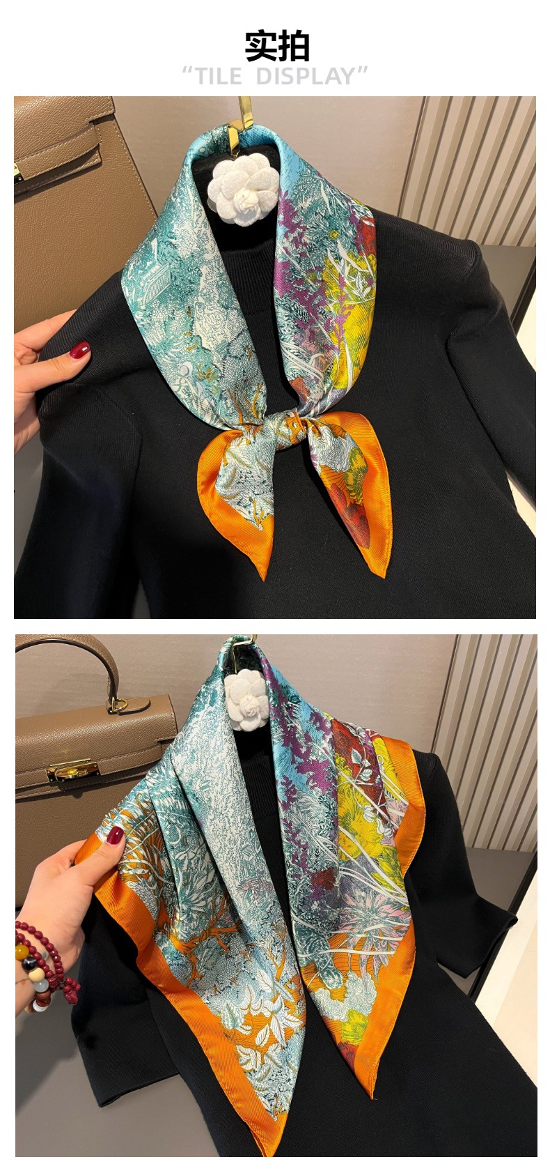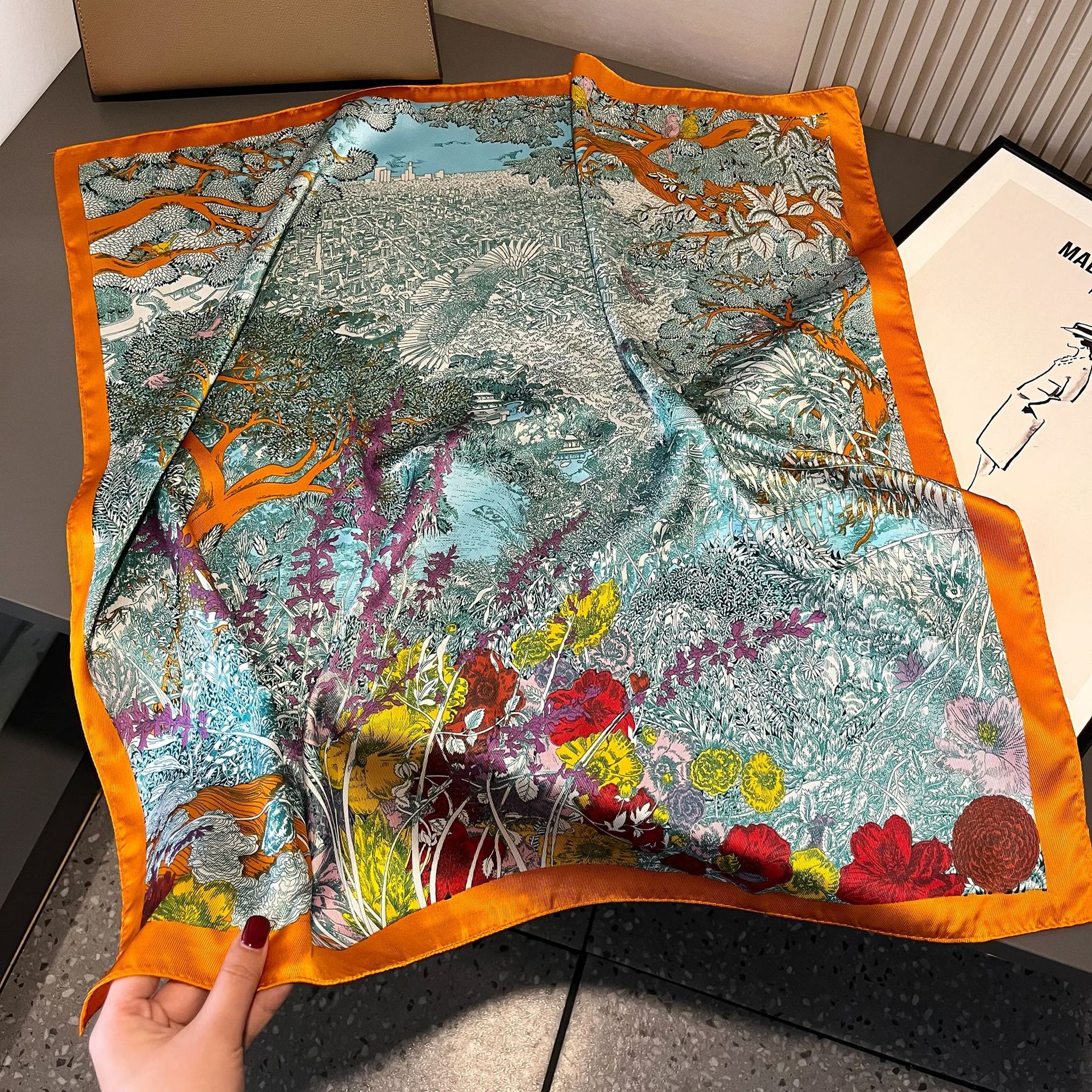 2024 봄과 여름 새로운 인공 실크 70cm 작은 사각형 스카프 여성의 복고풍 꽃 무늬 스카프 패션 올 매치 스카프스토어 가기