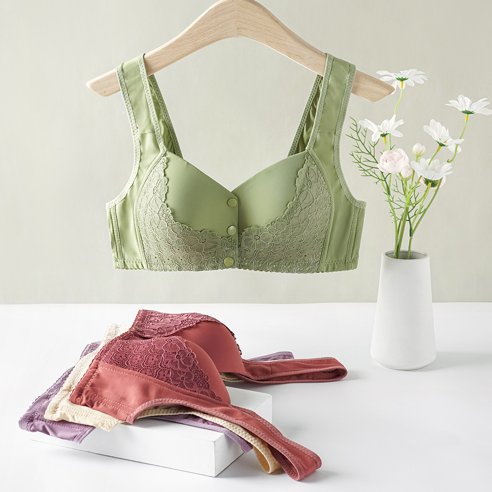 쉐이핑 컵 프론트 버클 중년 및 노인 속옷 여성의 광택 무선 와이드 어깨 끈 조끼 새로운 플러스 사이즈 브래지어스토어 가기
