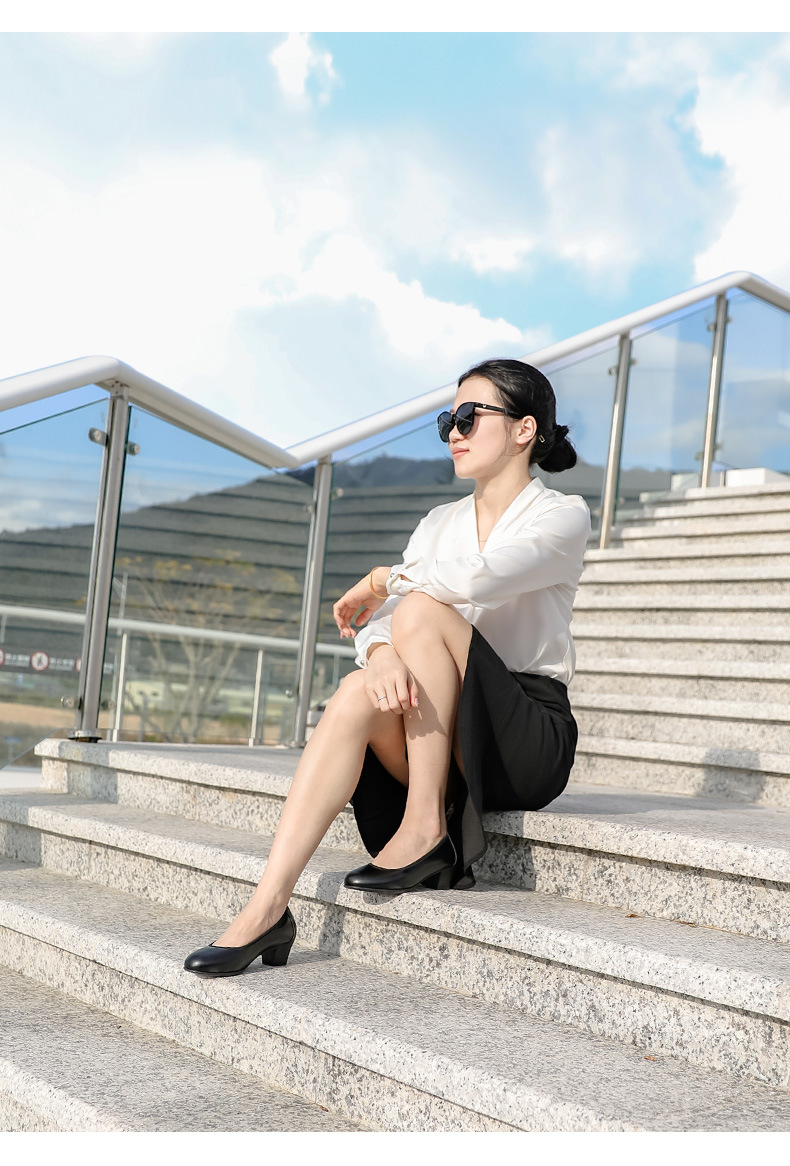 • 검은 둥근 발가락 낮은 뒤꿈치 3.5CM 602