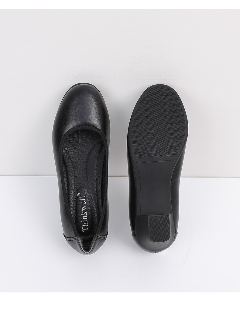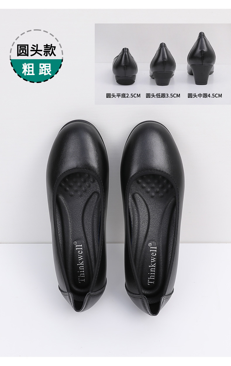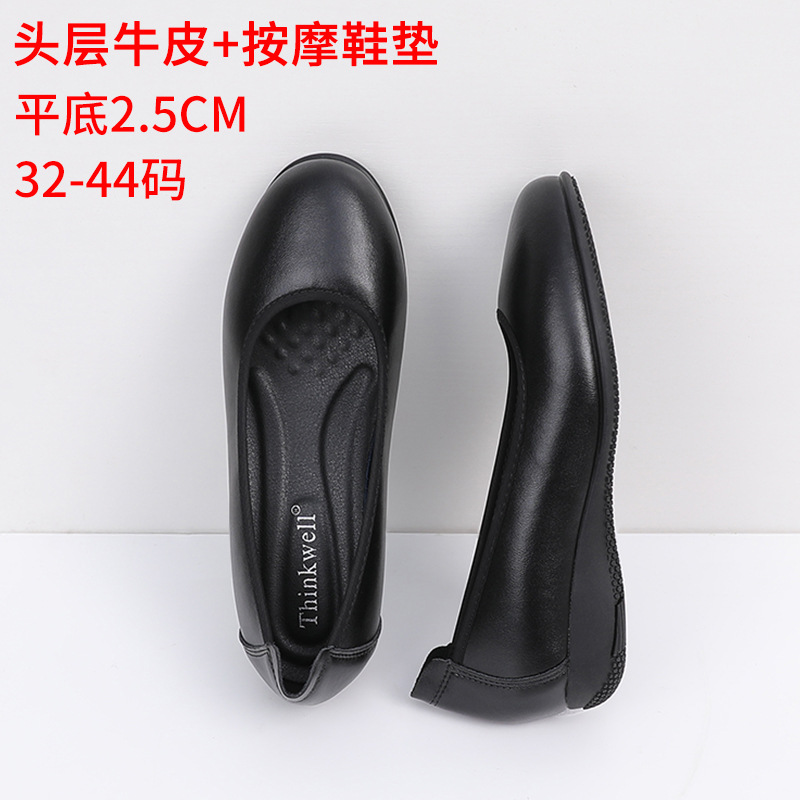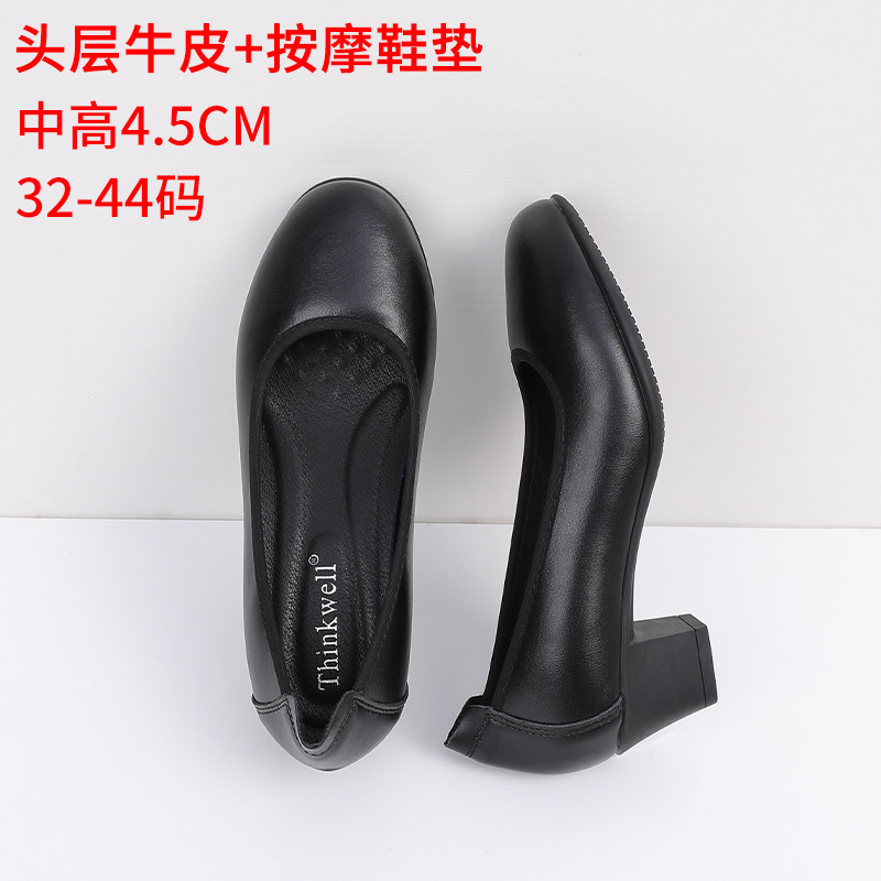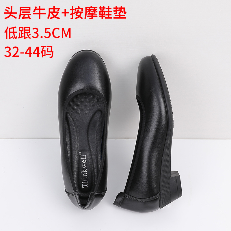 Cowhide 가죽 작업화 여성 검은 봄 새로운 부드러운 바닥 플랫 신발 청키 힐 하이힐 스몰 사이즈 플러스 사이즈 여성 신발스토어 가기