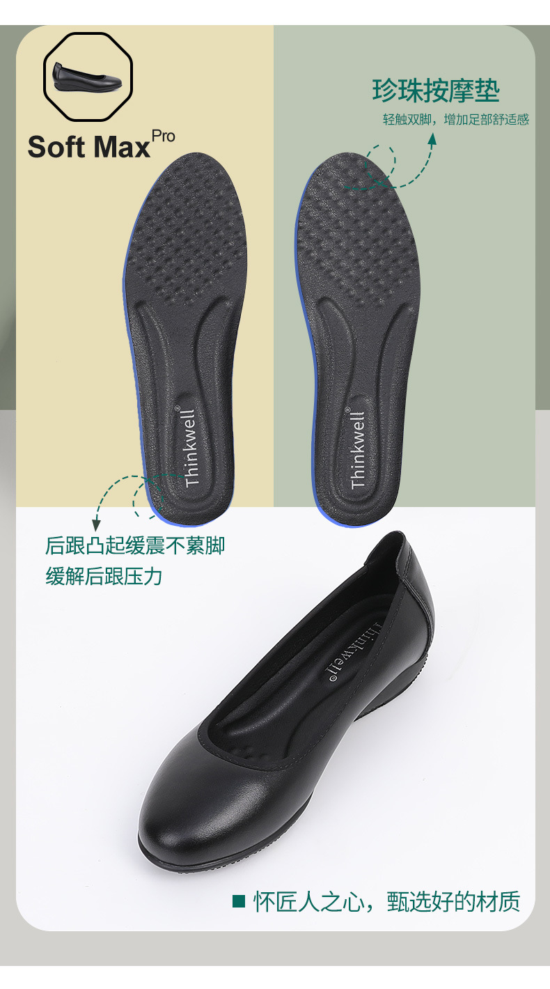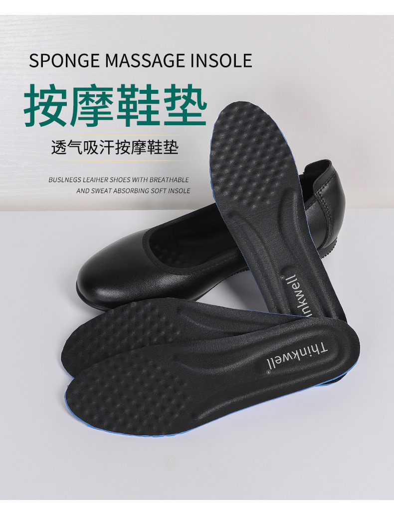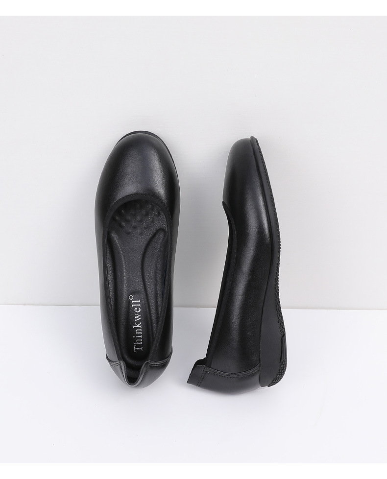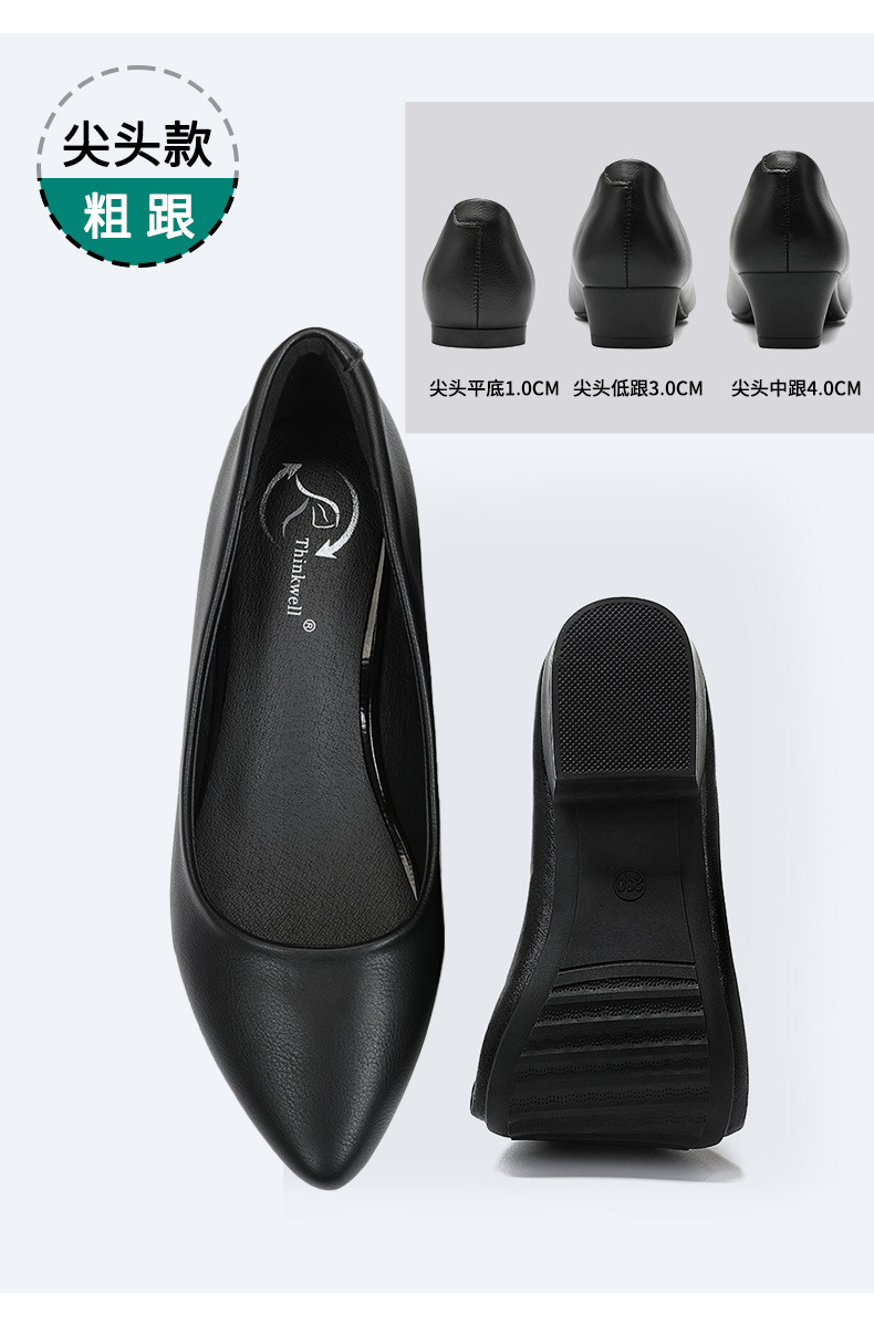 Cowhide 가죽 작업화 여성 검은 봄 새로운 부드러운 바닥 플랫 신발 청키 힐 하이힐 스몰 사이즈 플러스 사이즈 여성 신발스토어 가기