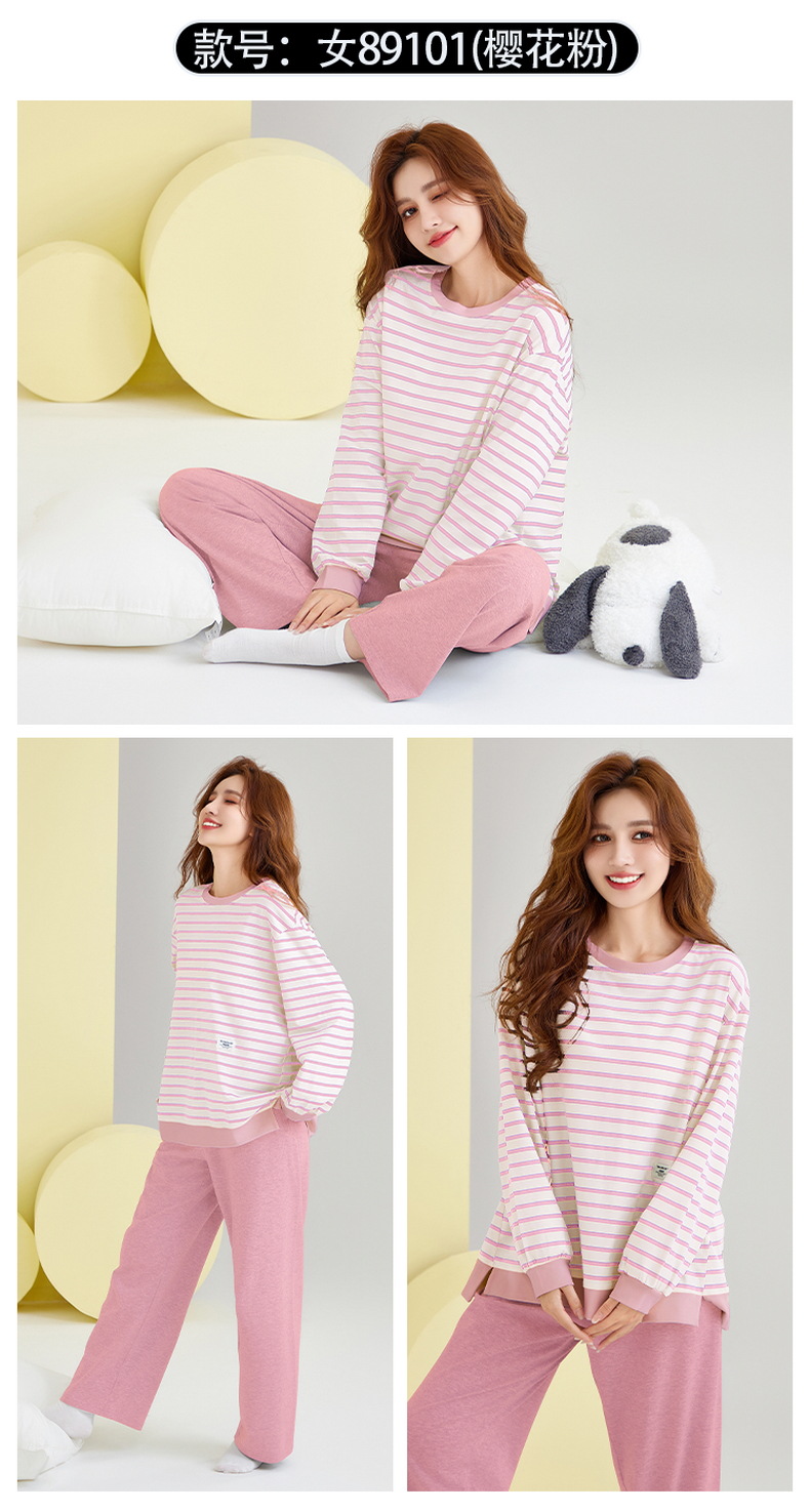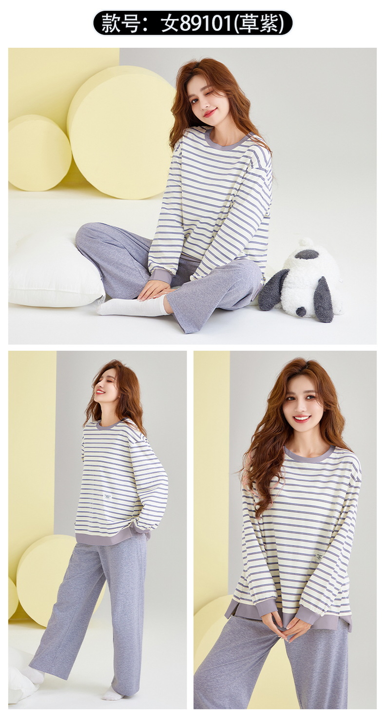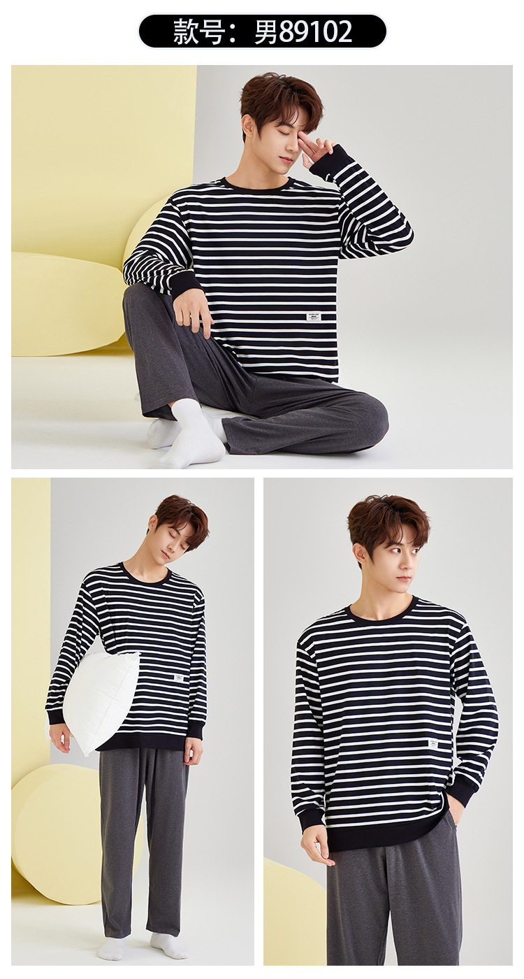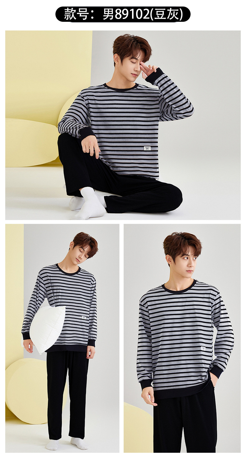 커플 코튼 긴팔 잠옷 가을 여성용 느슨한 세트 코튼 홈 스트라이프 단색 겉옷 남성용스토어 가기