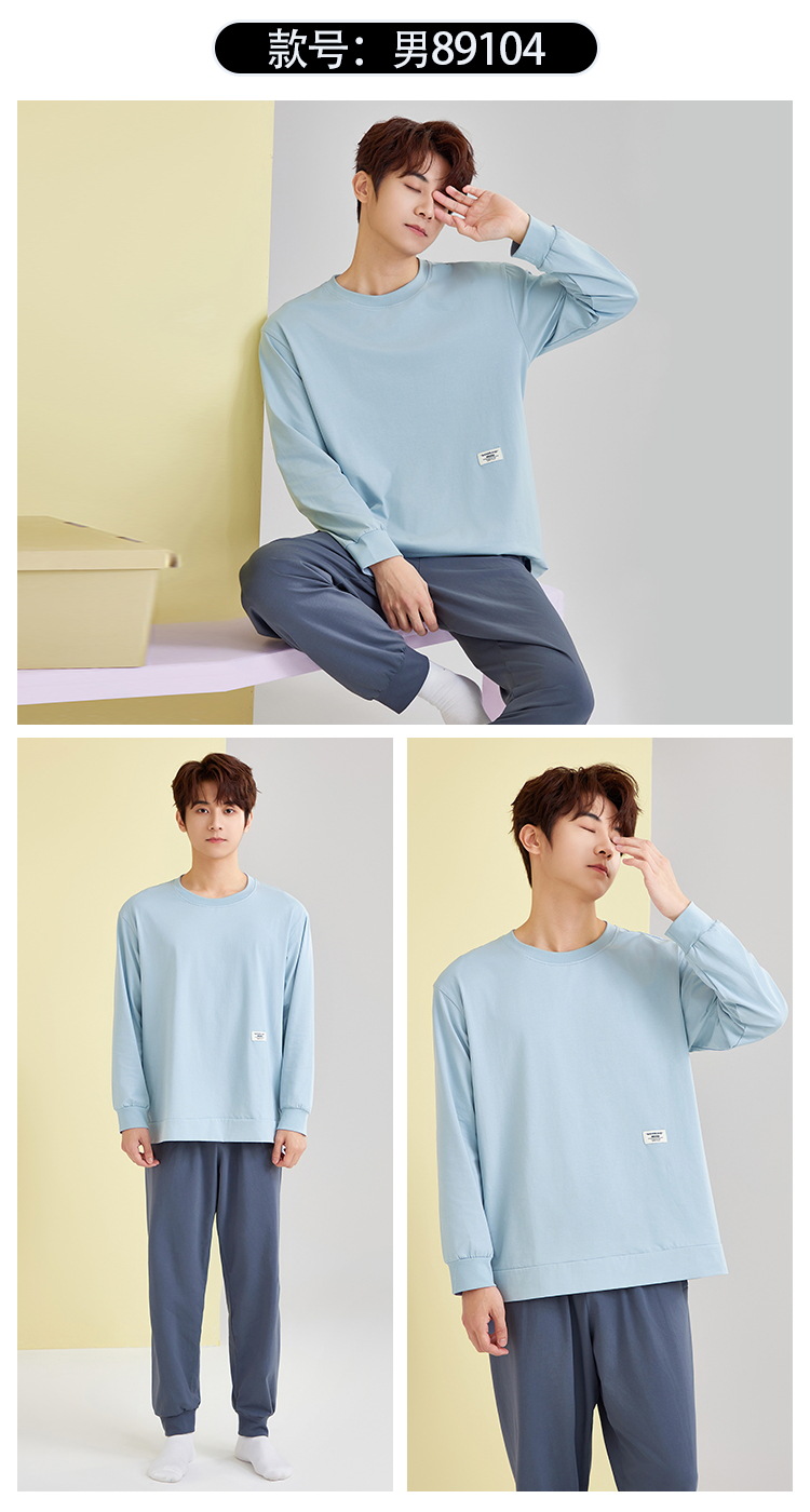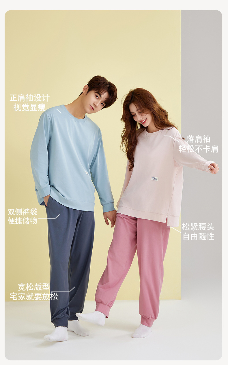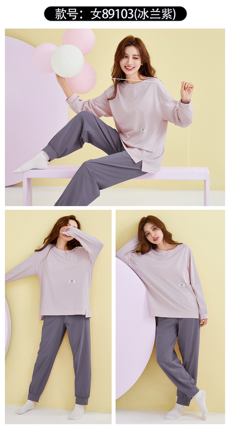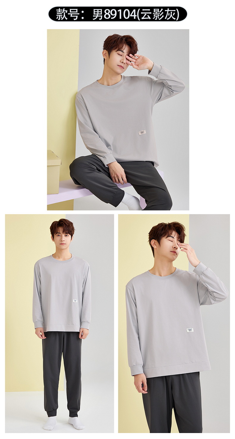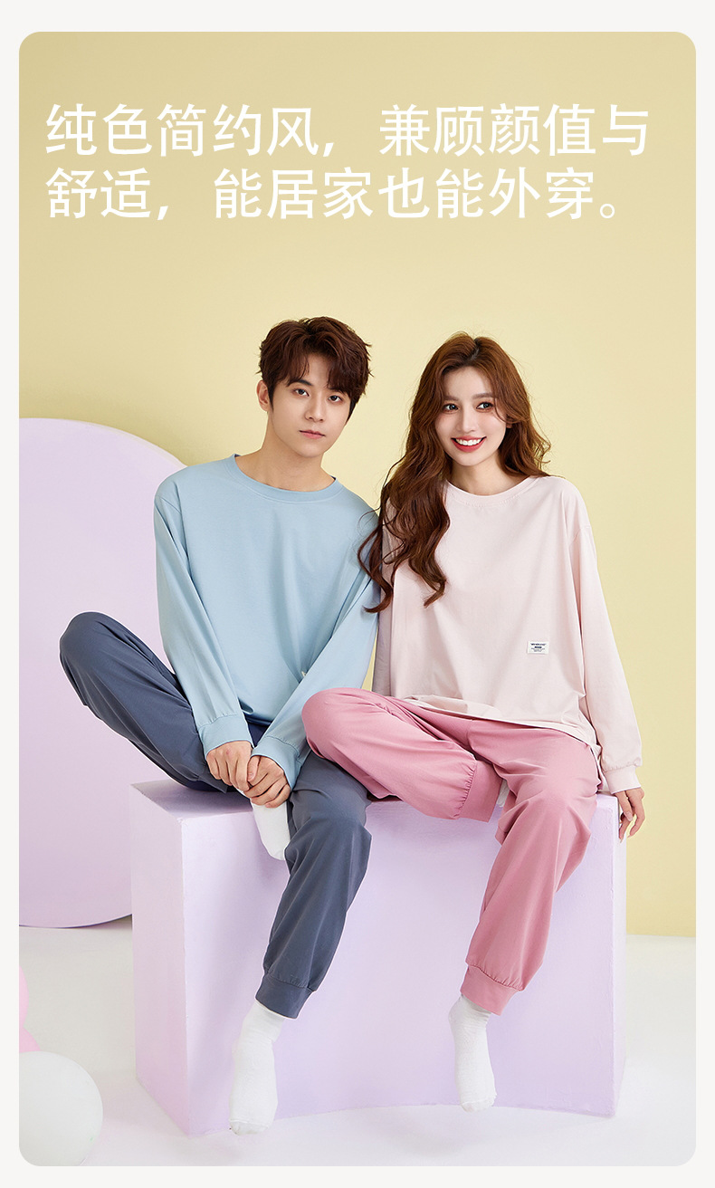 커플 코튼 긴팔 잠옷 가을 여성용 느슨한 세트 코튼 홈 스트라이프 단색 겉옷 남성용스토어 가기