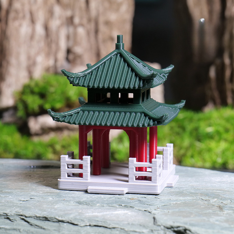 • [복층 사각 파빌리온] 중간 녹색 지붕丨베이스 길이, 너비 3.9, 높이 5cm