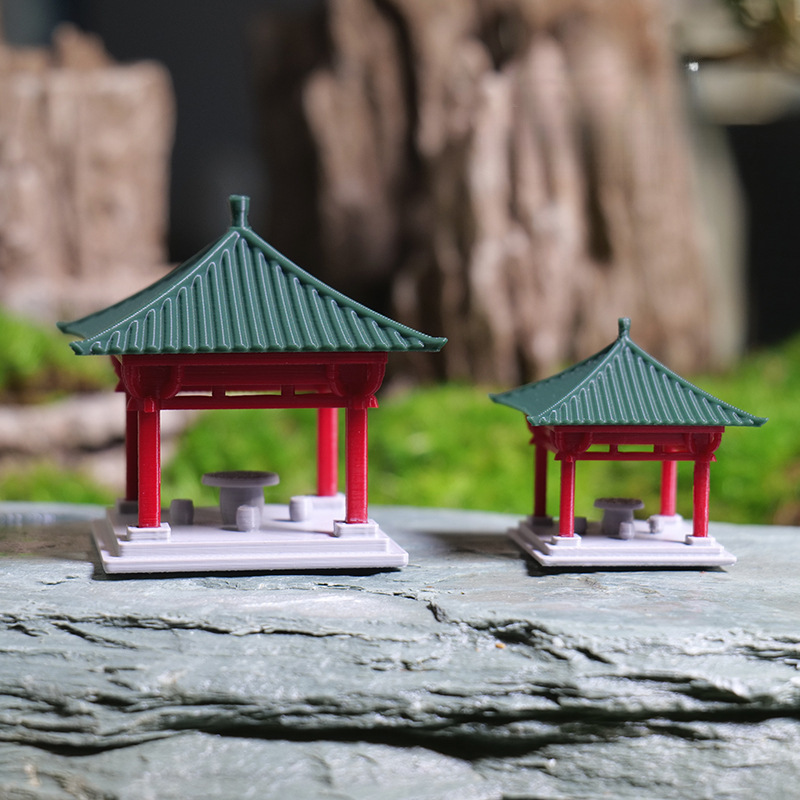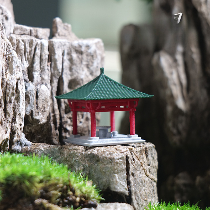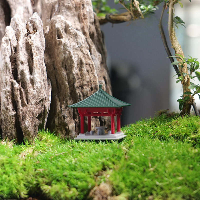 • 【2층 사각 정자】 소형 녹색 지붕 | 밑면 가로세로 3.2cm, 높이 4cm