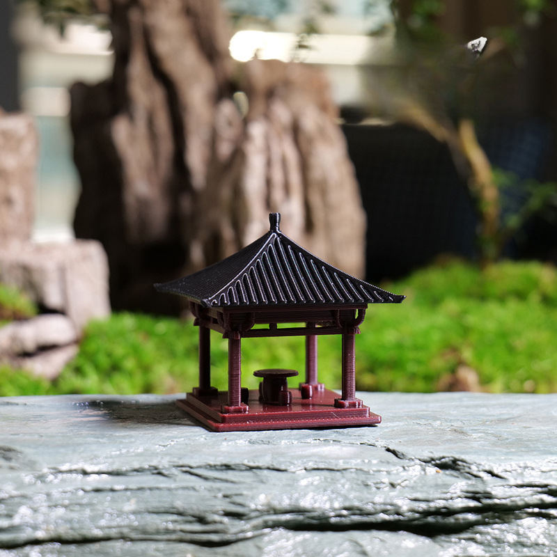 • 【2층 사각 정자】 소형 검정 지붕 | 밑면 가로세로 3.2cm, 높이 4cm