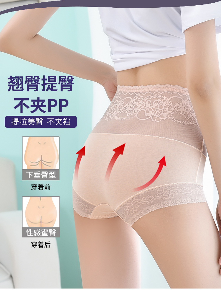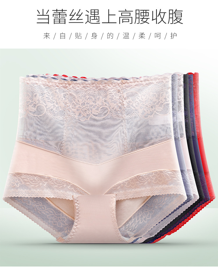 레이스 속옷 여성의 높은 허리 배, 순수한면 항균 가랑이 섹시한 통기성 중공 플러스 사이즈 엉덩이 들어 올리는 여성용 삼각형 속옷