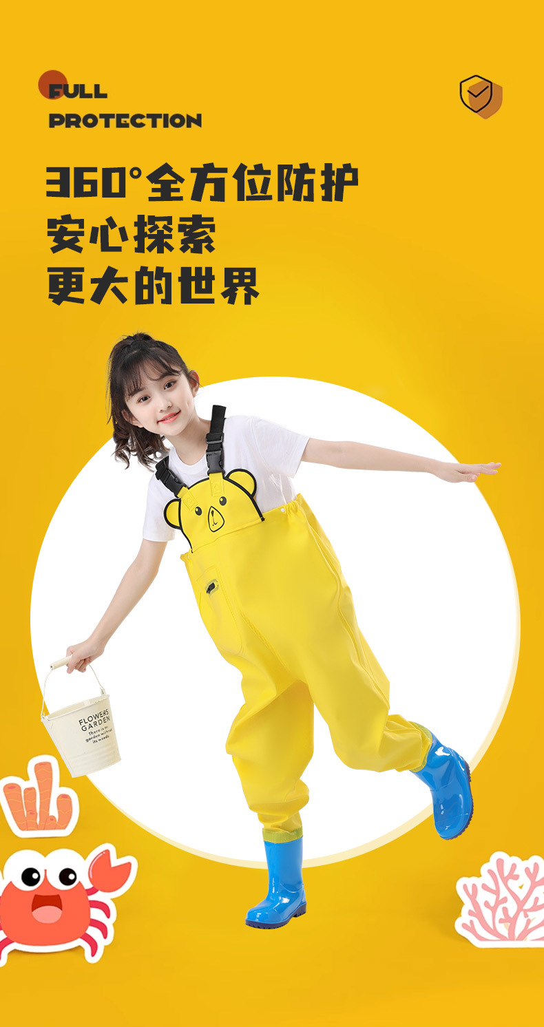물과 함께 놀기위한 어린이 물 바지 한 조각 유치원 방수 옷 남자와 여자를위한 바다 비 바지를 잡아라 어린이 물고기 해변을위한 비 신발