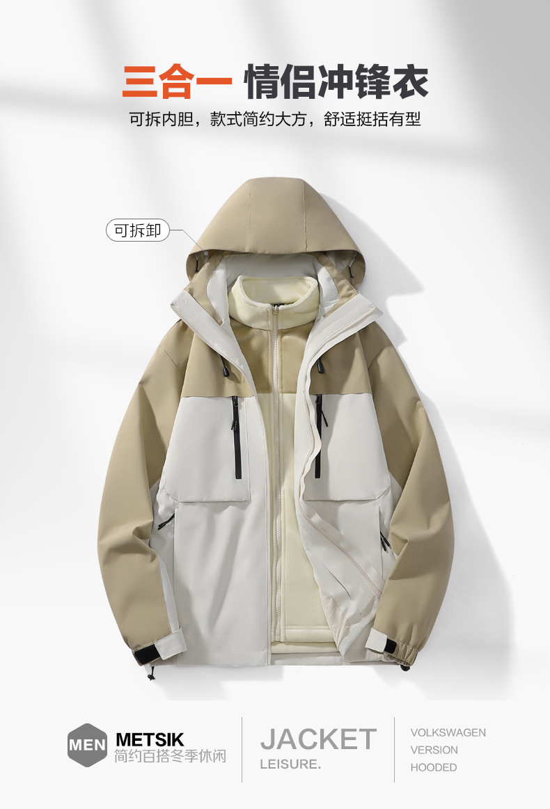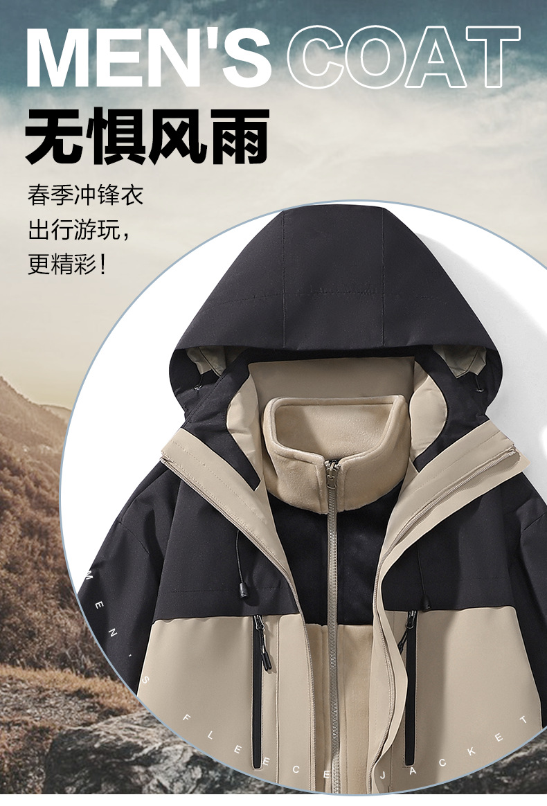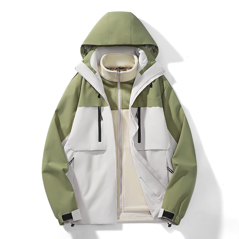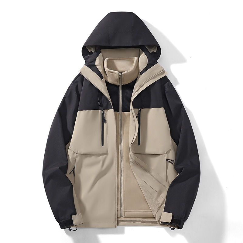 남성용 가을과 겨울 새로운 반짝 방풍 3 대 1 야외 남성 재킷 작업 코트