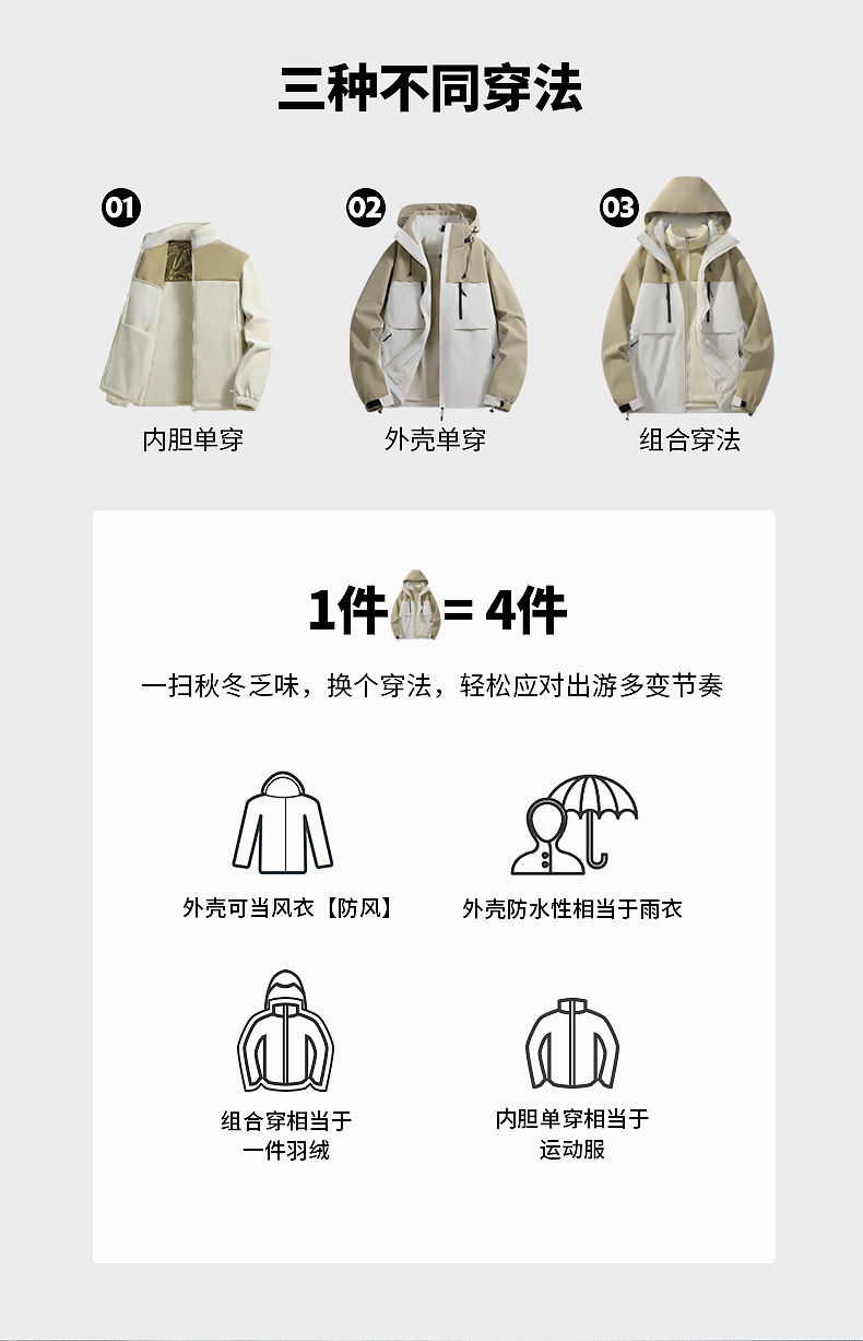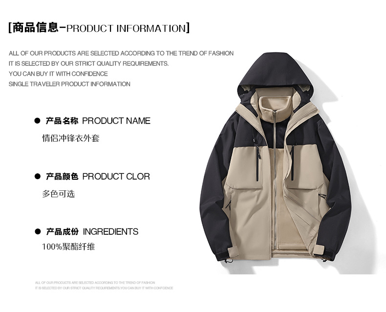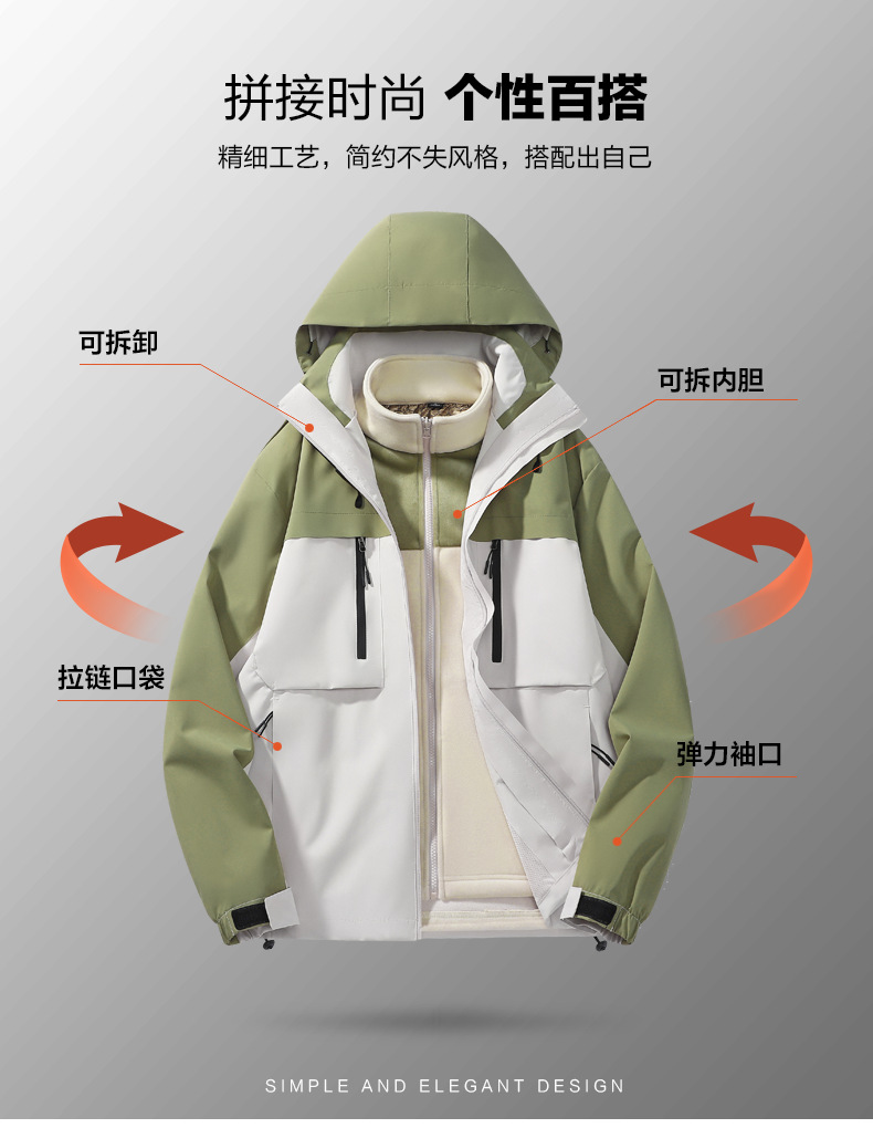 남성용 가을과 겨울 새로운 반짝 방풍 3 대 1 야외 남성 재킷 작업 코트스토어 가기