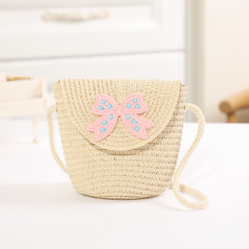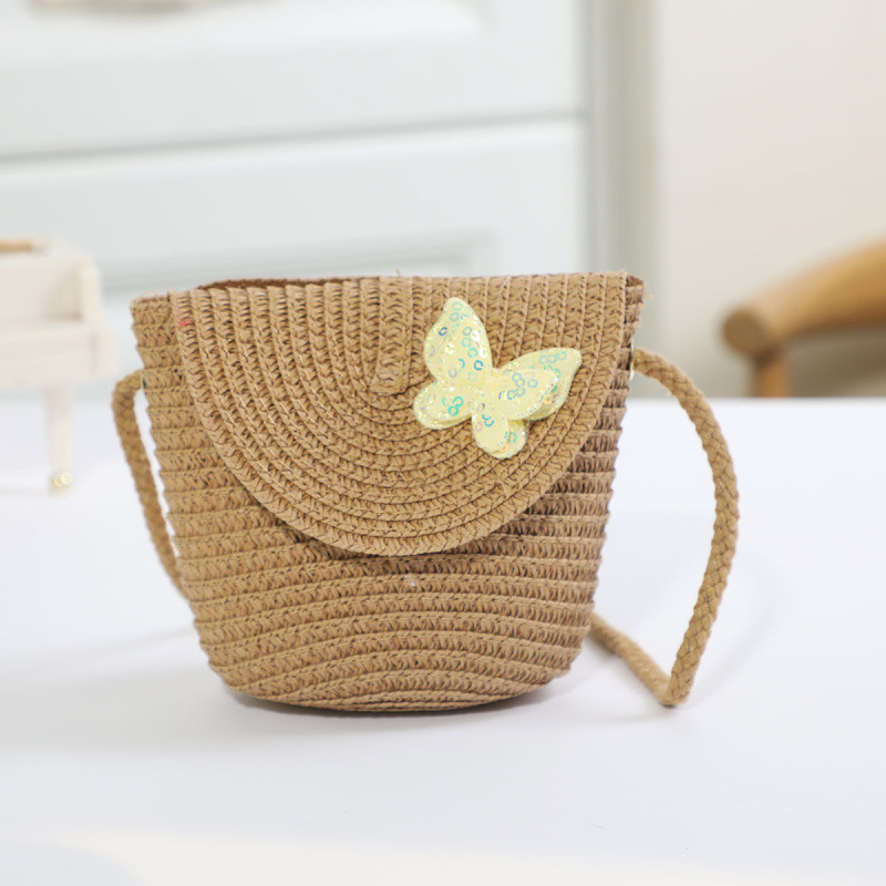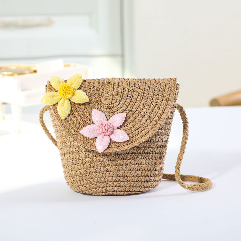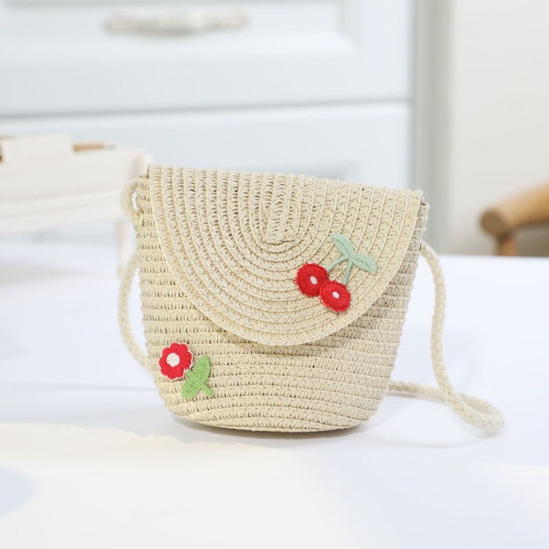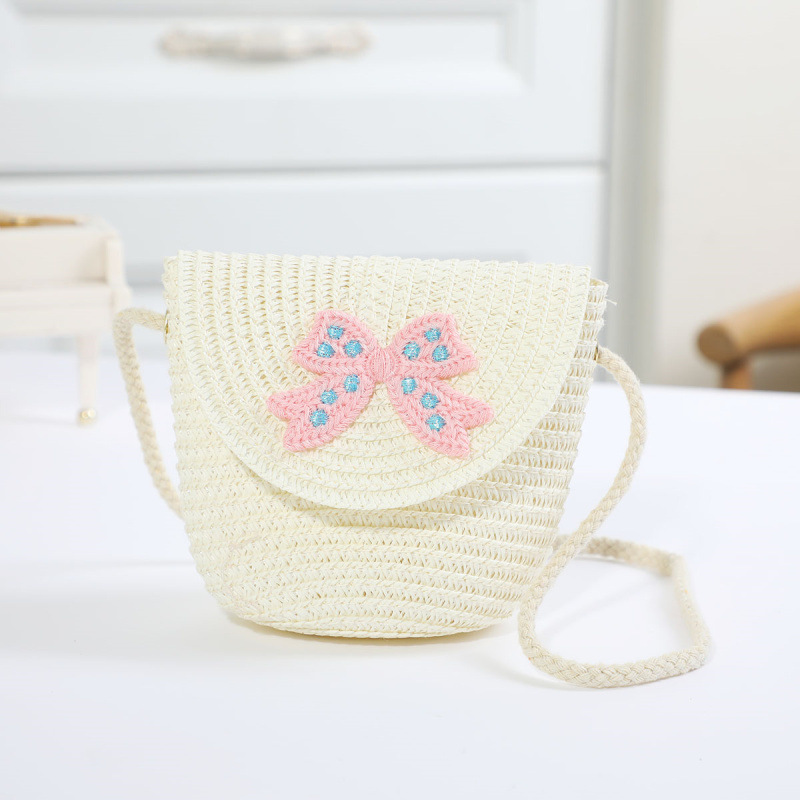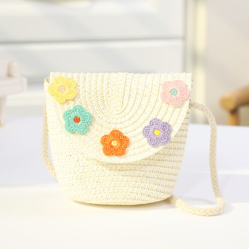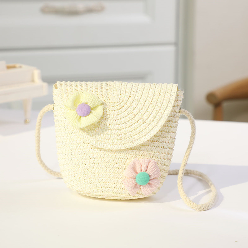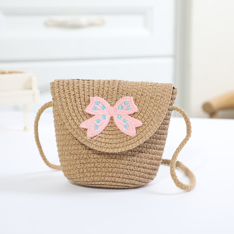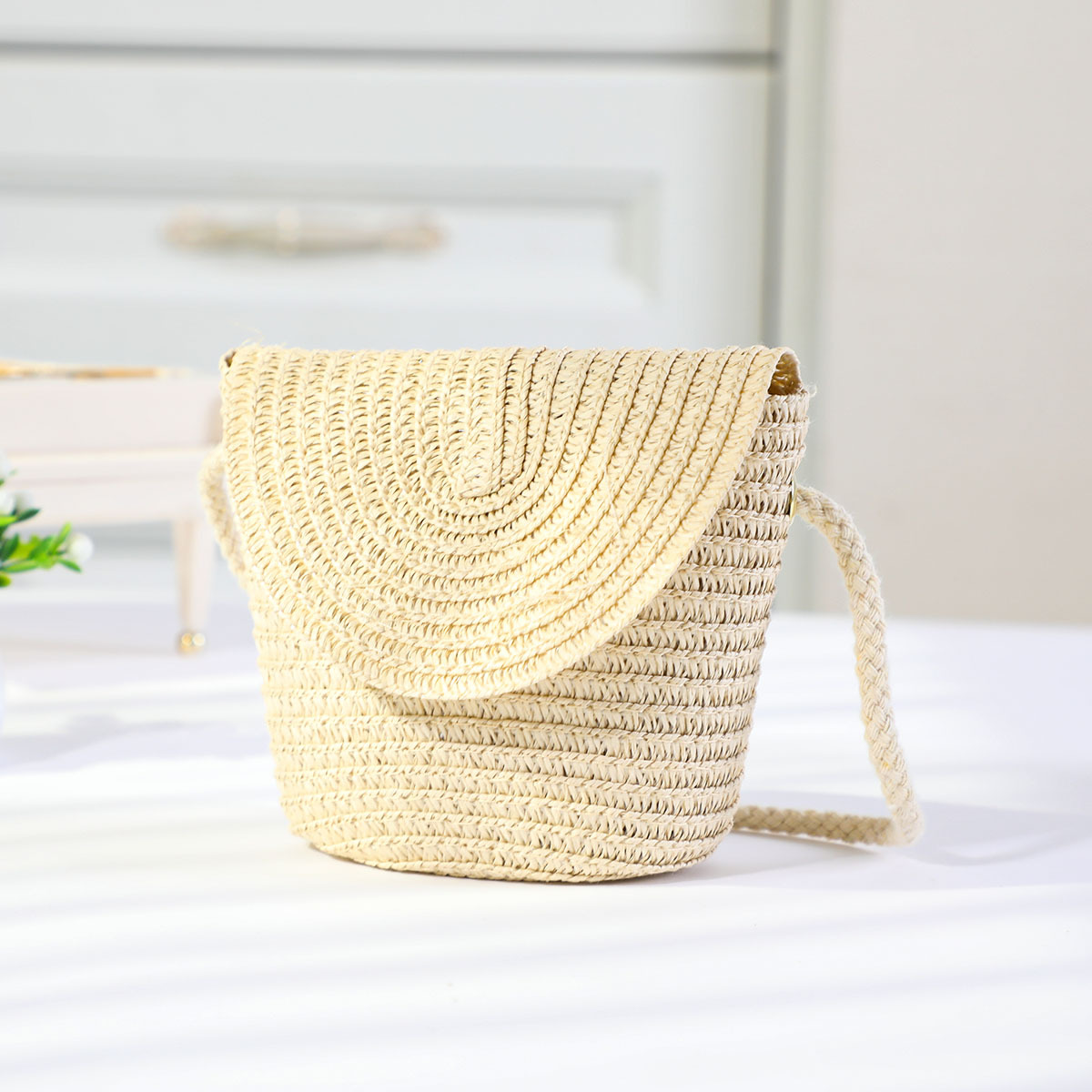 새로운 플립 작은 변화 가방 여름 미니 작은 가방 패션 어린이 밀짚 가방 만화 귀여운 어깨 메신저 가방