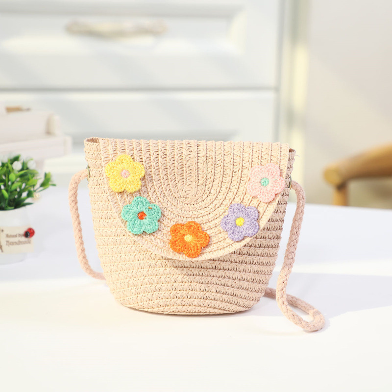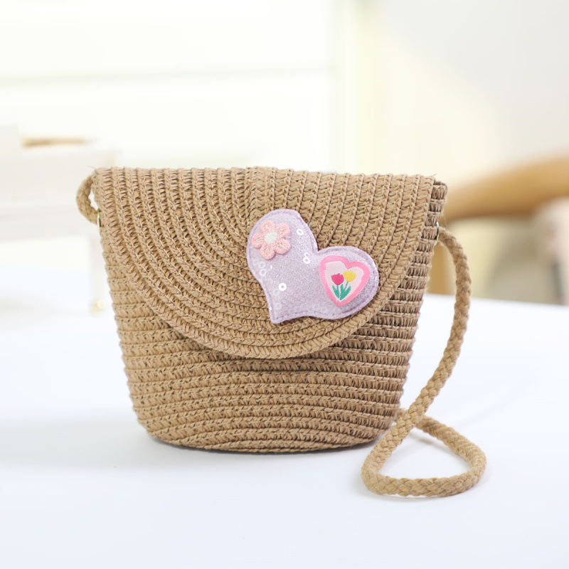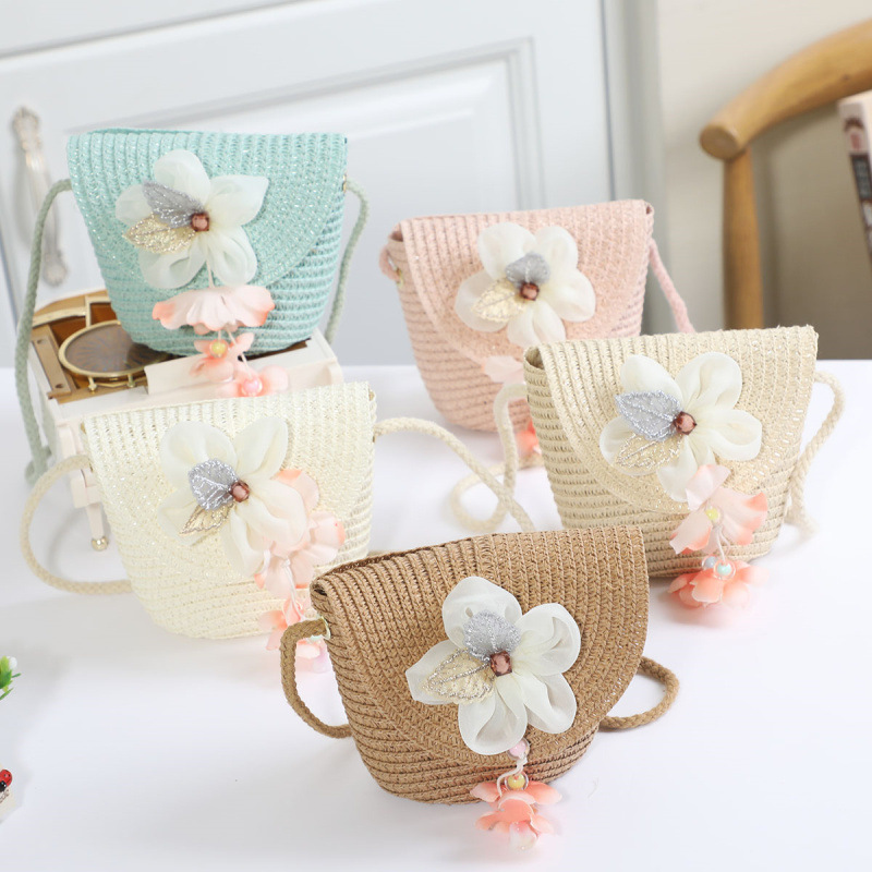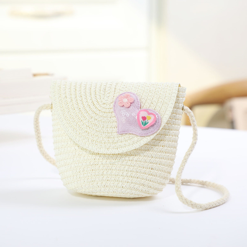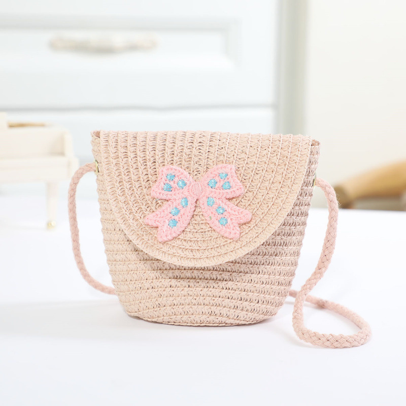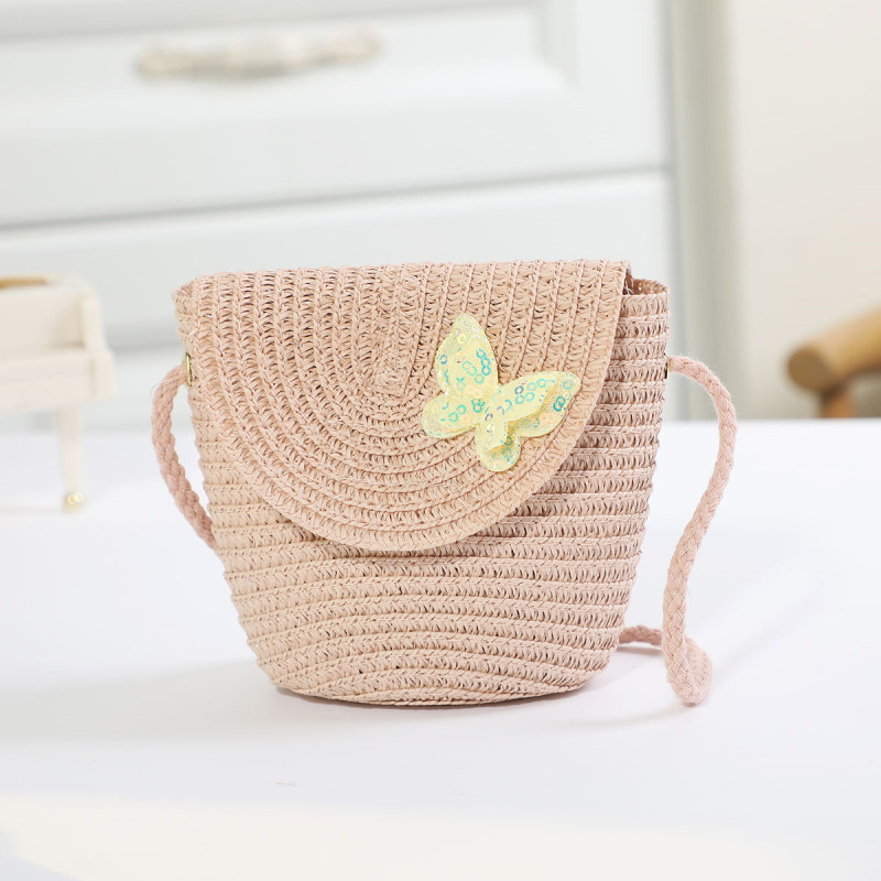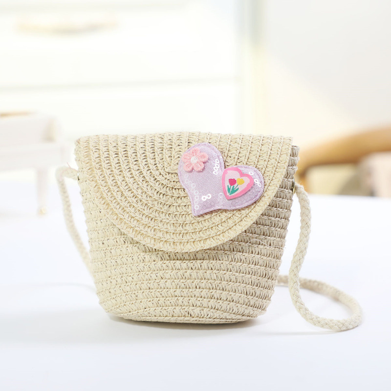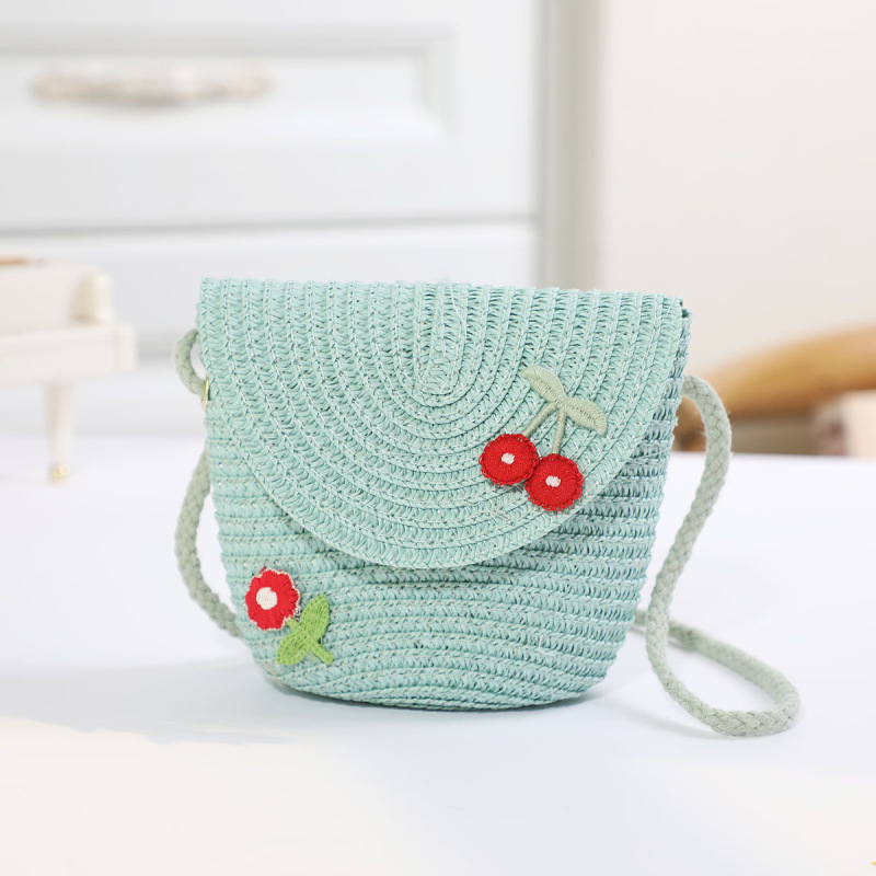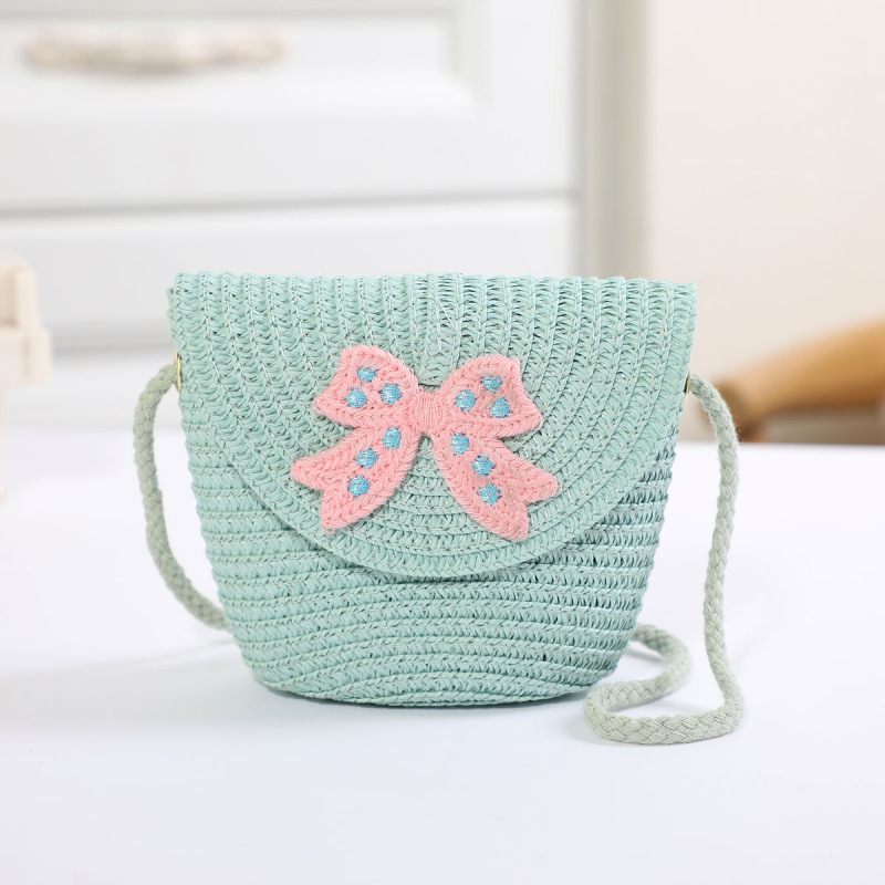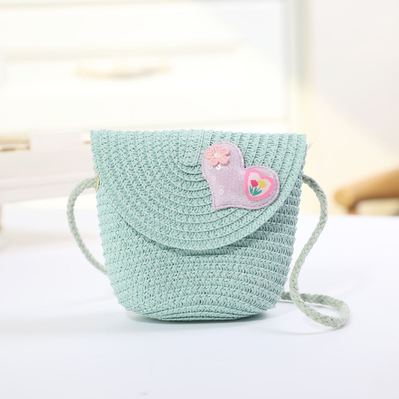 새로운 플립 작은 변화 가방 여름 미니 작은 가방 패션 어린이 밀짚 가방 만화 귀여운 어깨 메신저 가방