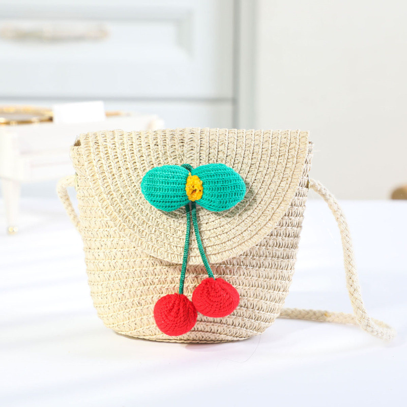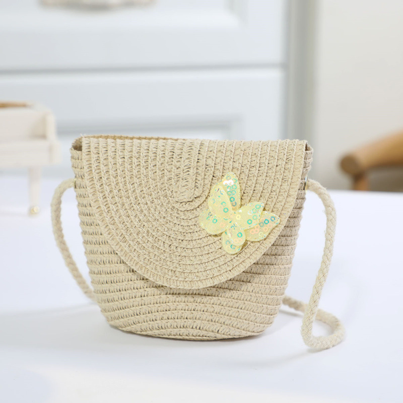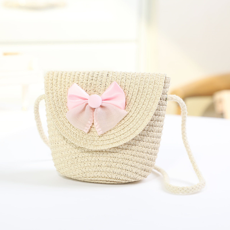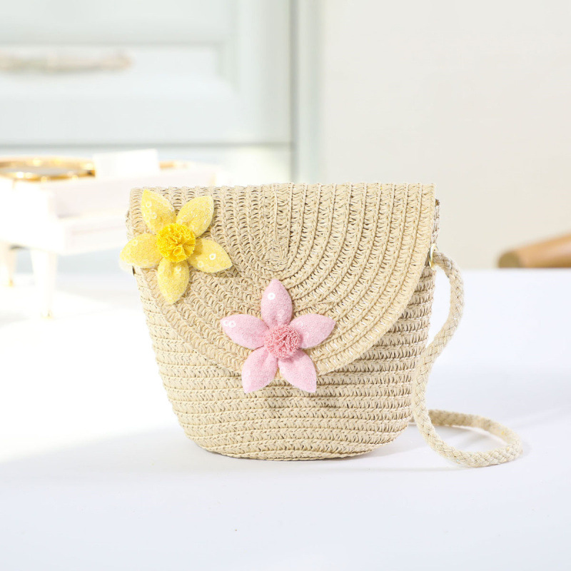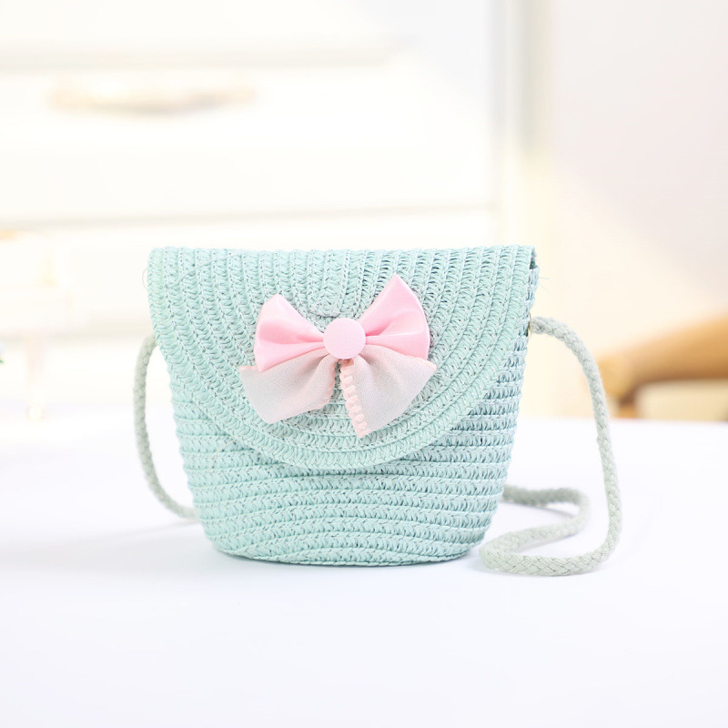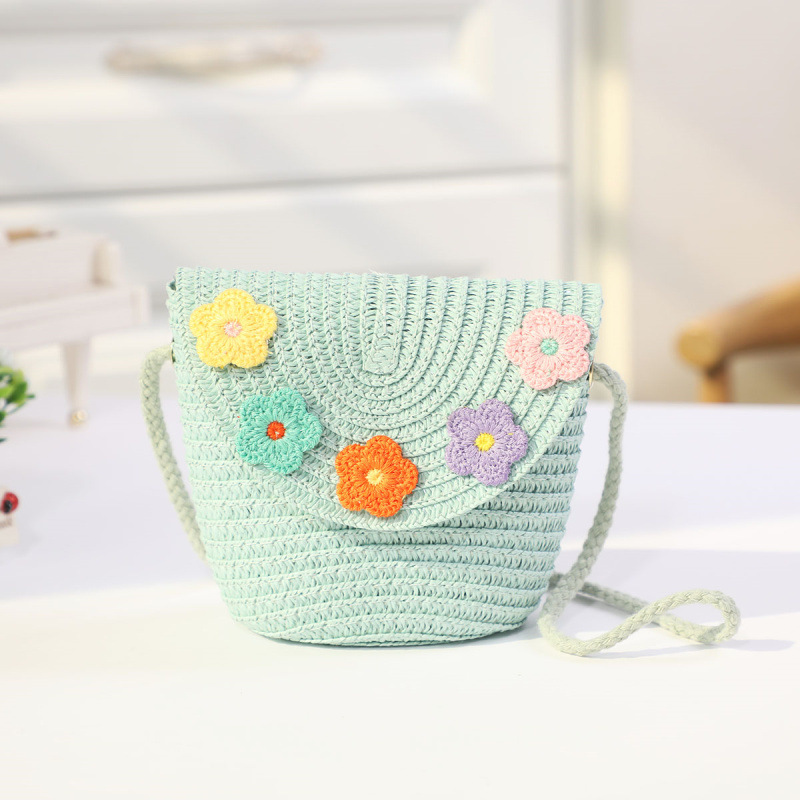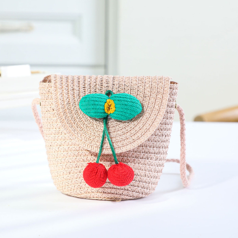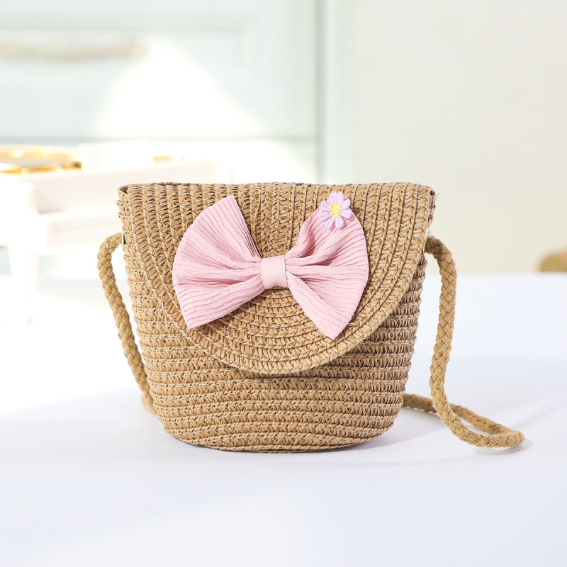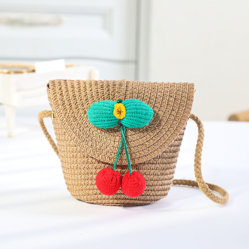 새로운 플립 작은 변화 가방 여름 미니 작은 가방 패션 어린이 밀짚 가방 만화 귀여운 어깨 메신저 가방