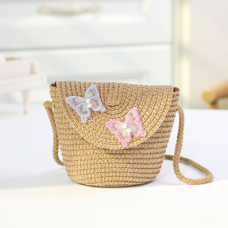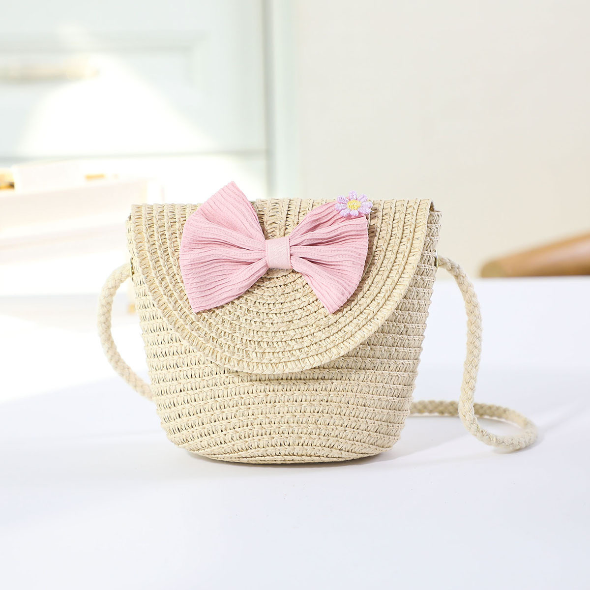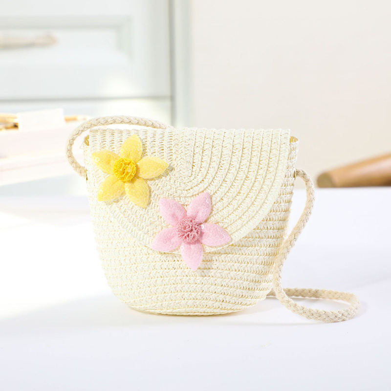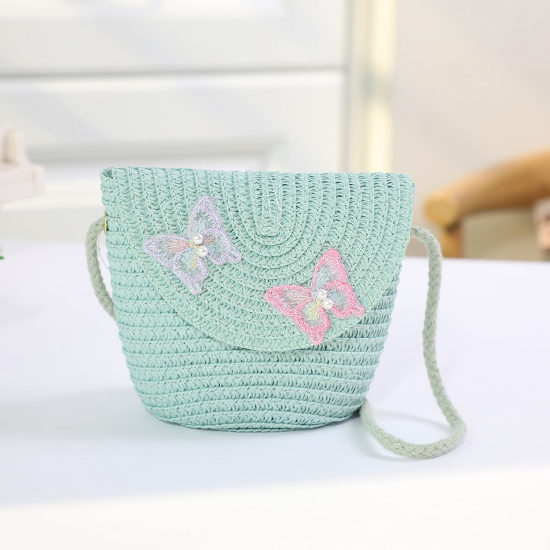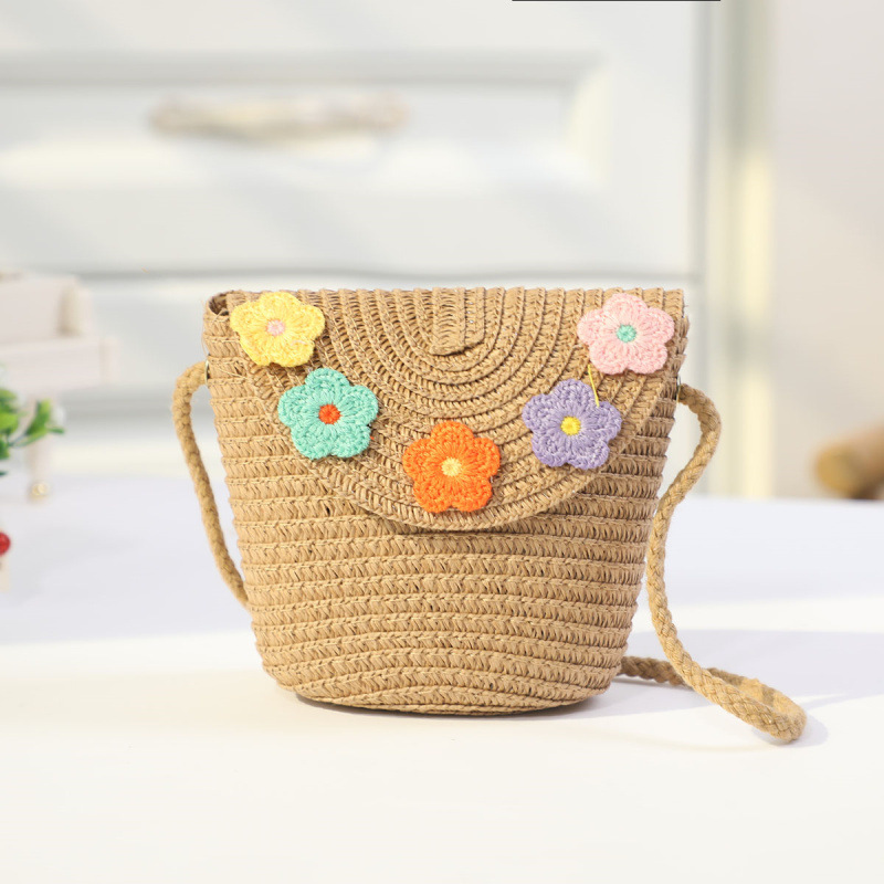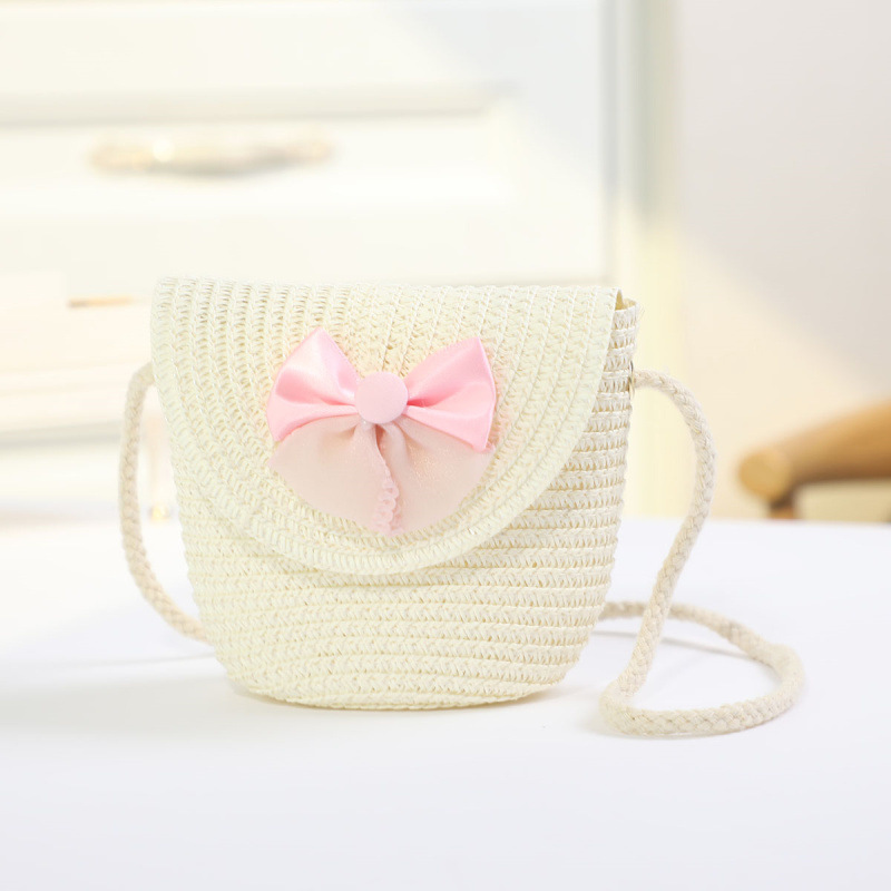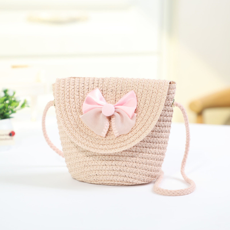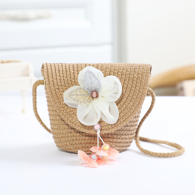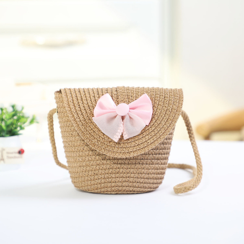 새로운 플립 작은 변화 가방 여름 미니 작은 가방 패션 어린이 밀짚 가방 만화 귀여운 어깨 메신저 가방