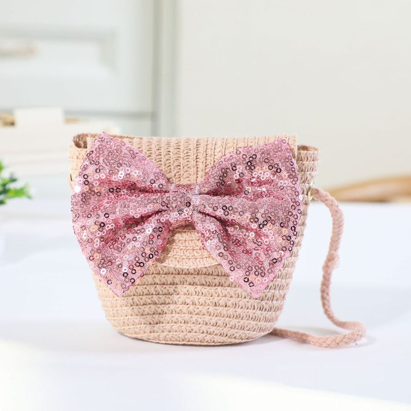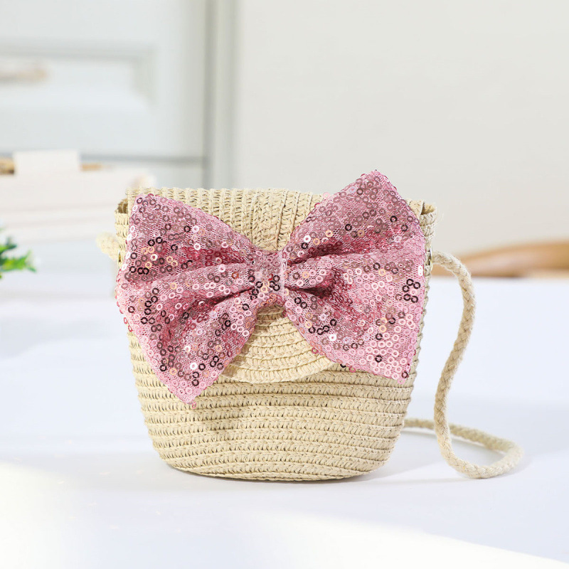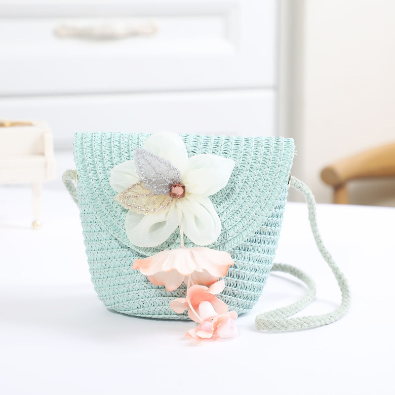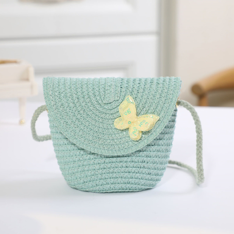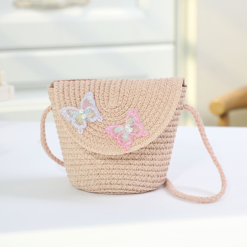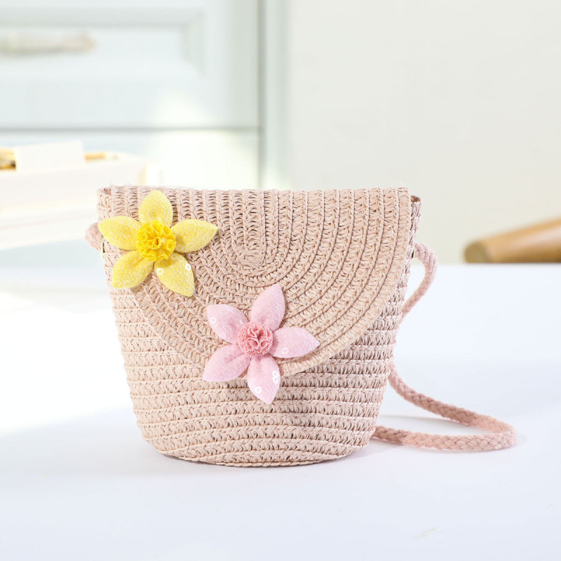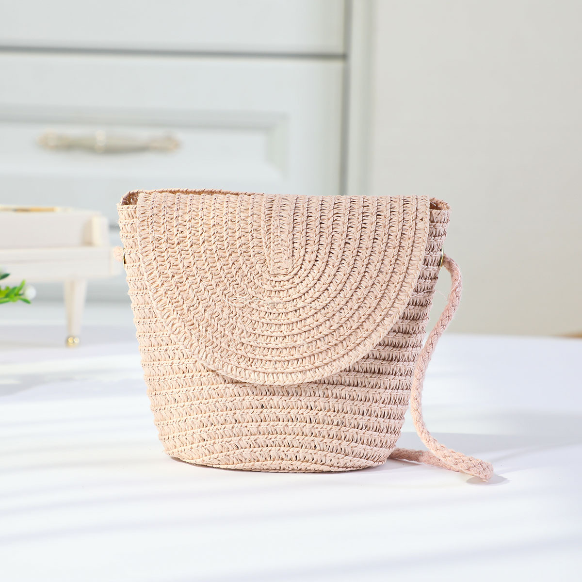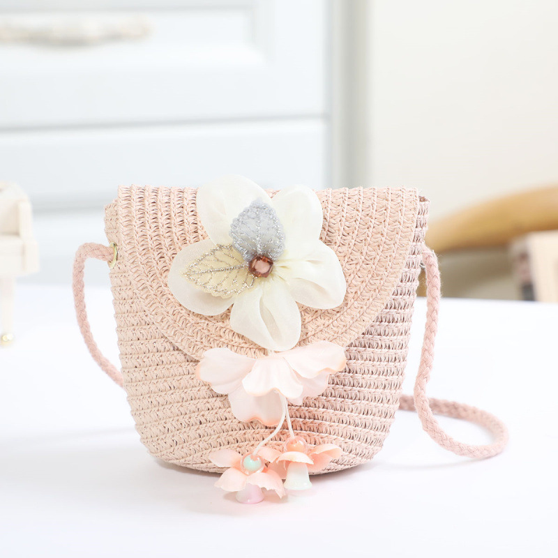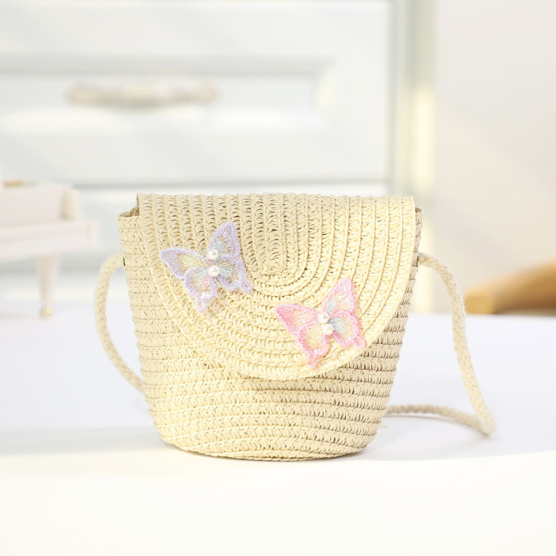 새로운 플립 작은 변화 가방 여름 미니 작은 가방 패션 어린이 밀짚 가방 만화 귀여운 어깨 메신저 가방