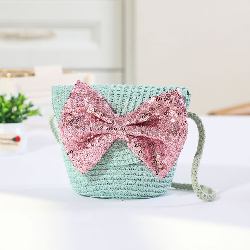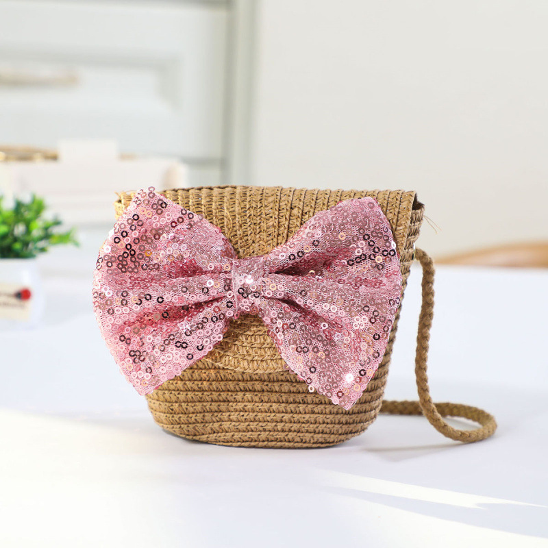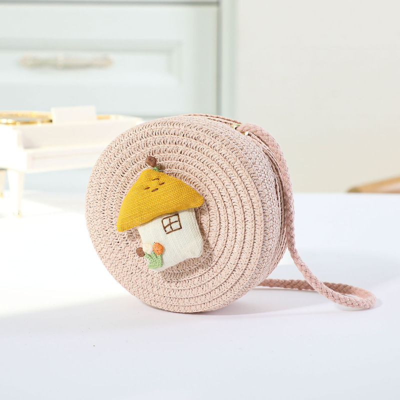 새로운 플립 작은 변화 가방 여름 미니 작은 가방 패션 어린이 밀짚 가방 만화 귀여운 어깨 메신저 가방스토어 가기