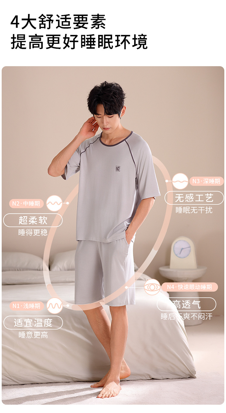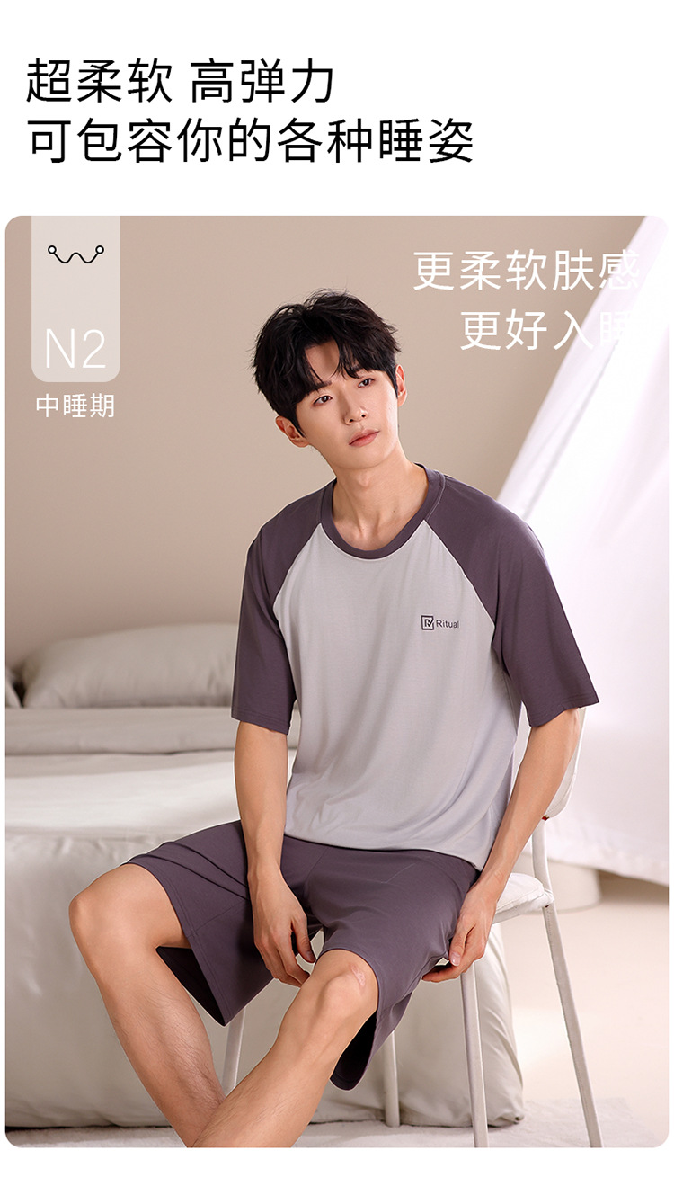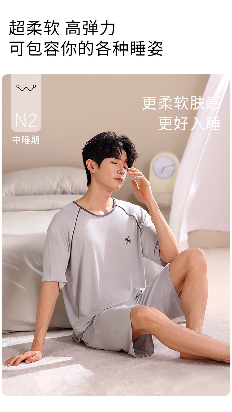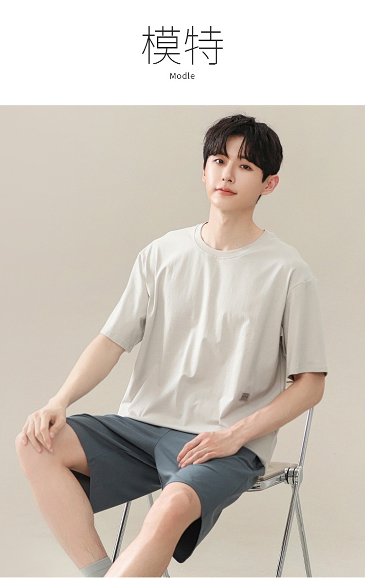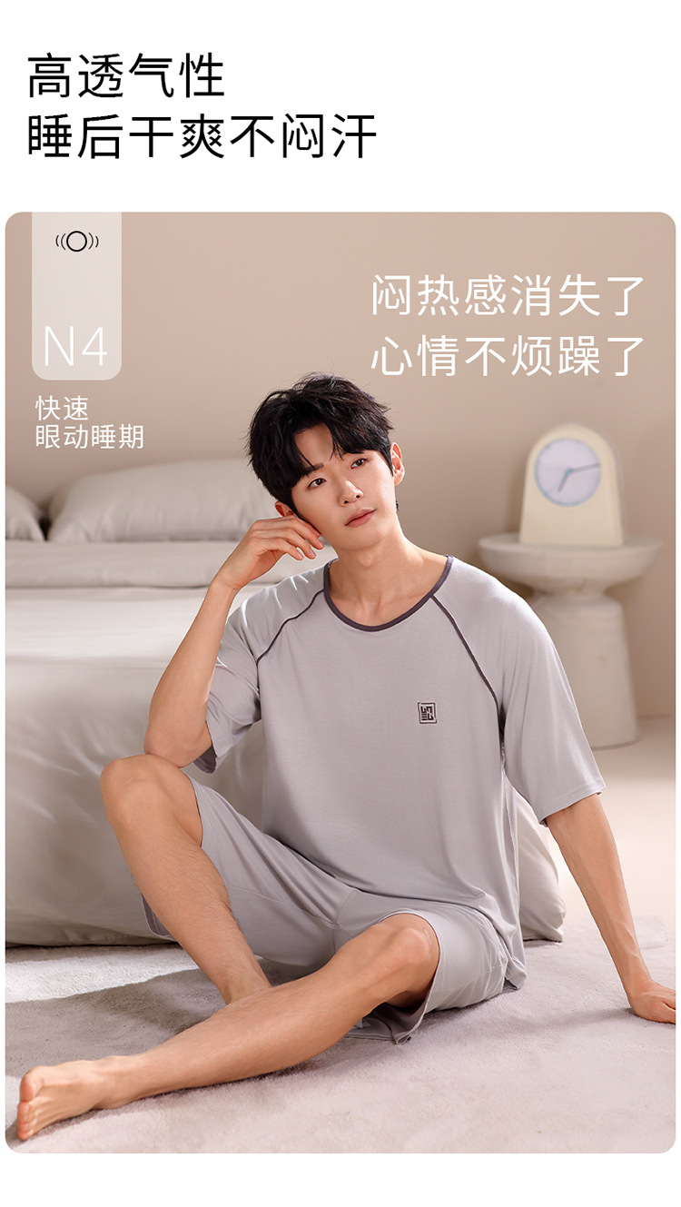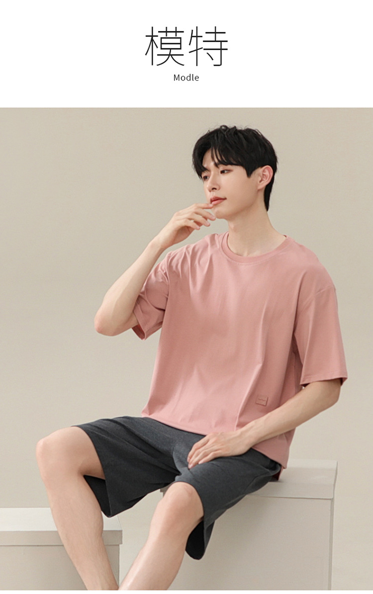 2024 새로운 모달 남성 잠옷 여름 얇은 반팔 반바지 둥근 목 단색 가정복 세트스토어 가기