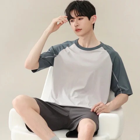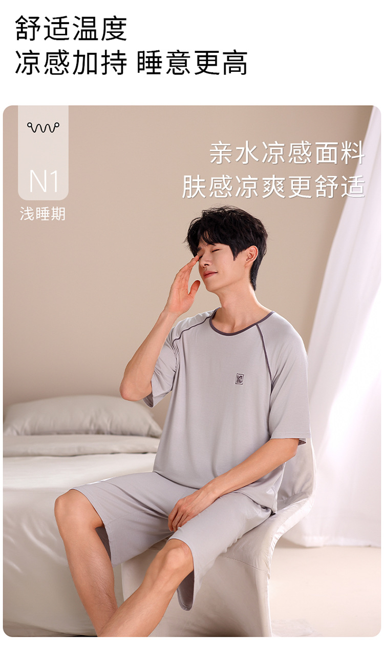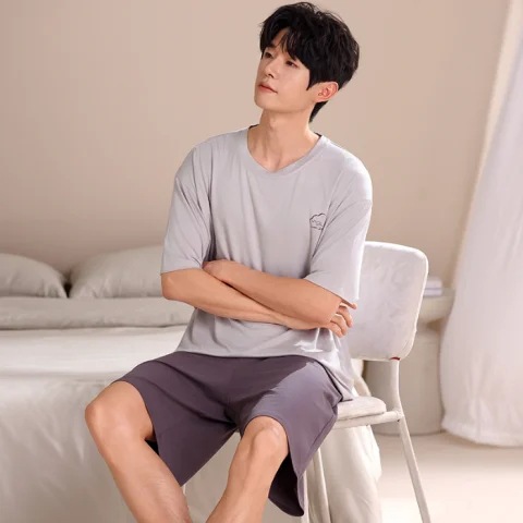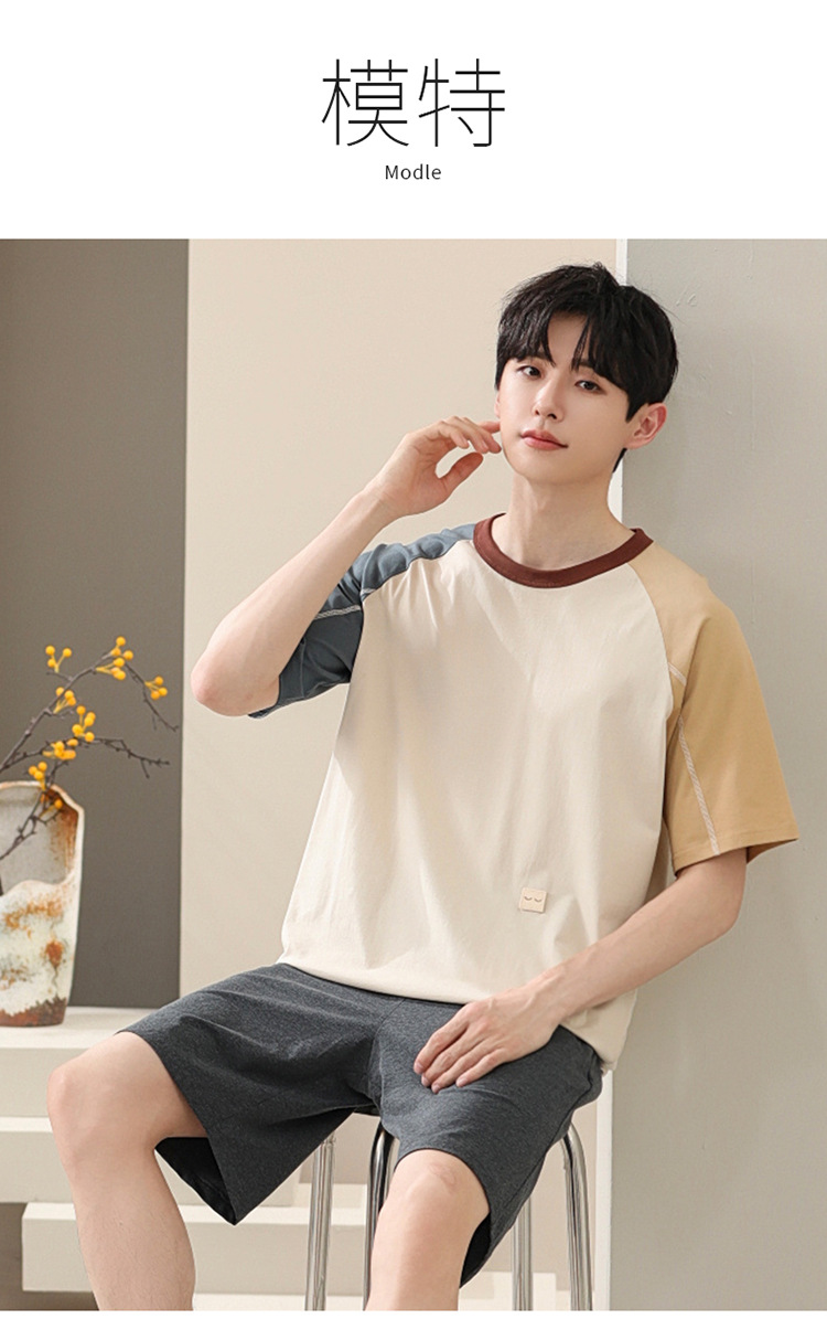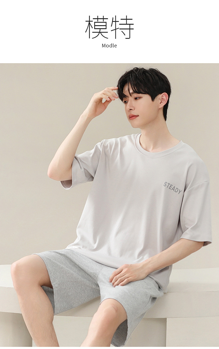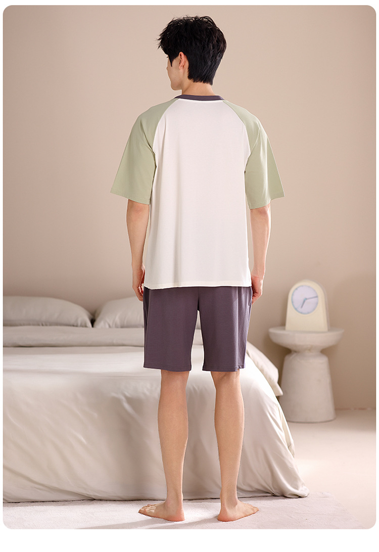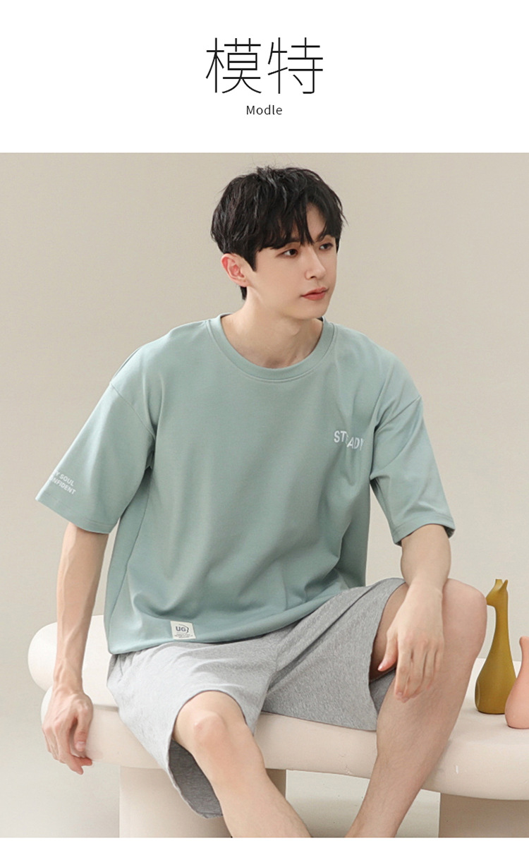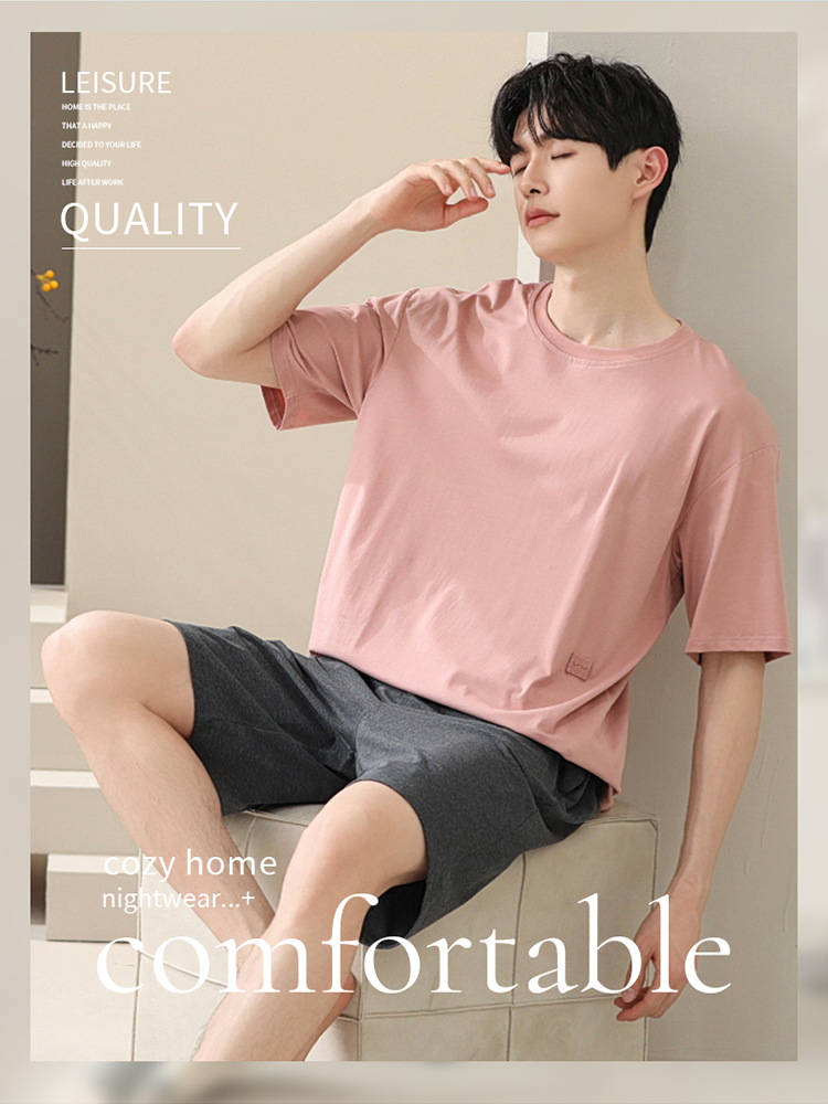 2024 새로운 모달 남성 잠옷 여름 얇은 반팔 반바지 둥근 목 단색 가정복 세트스토어 가기
