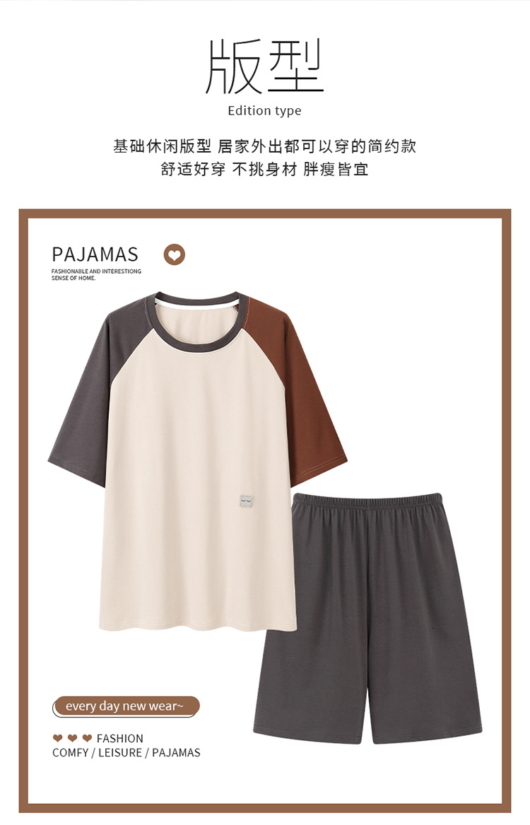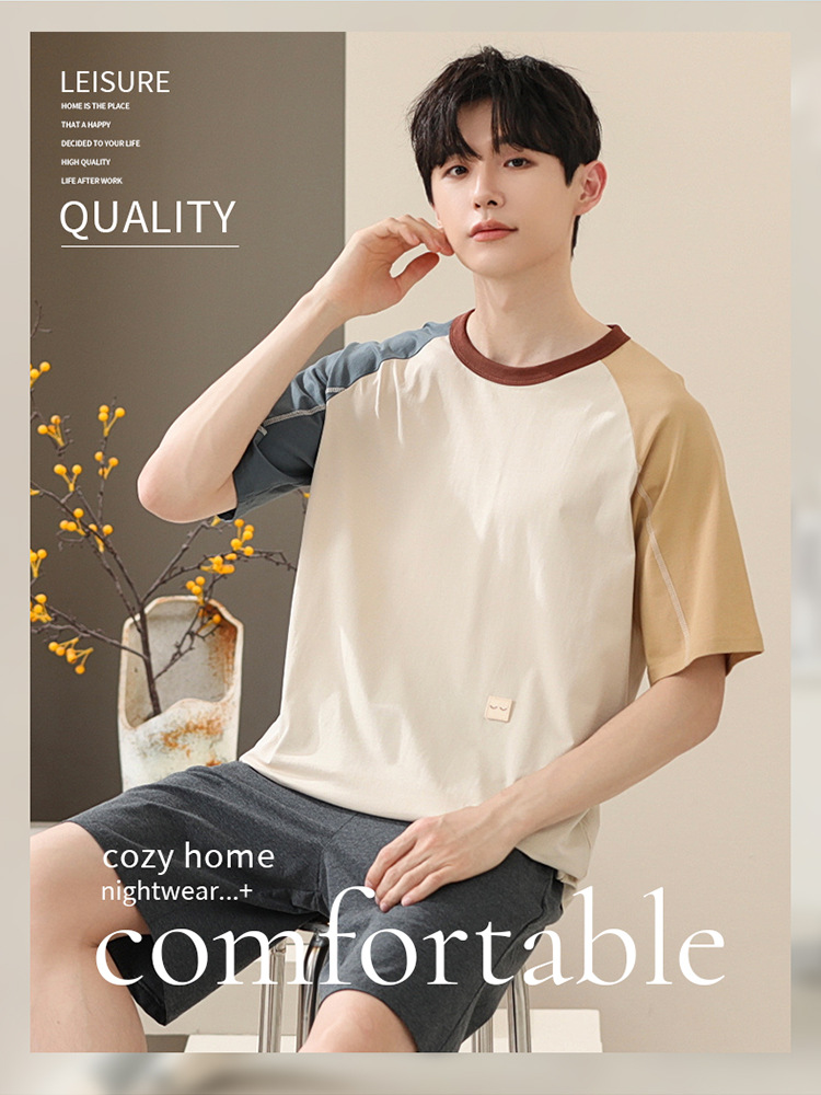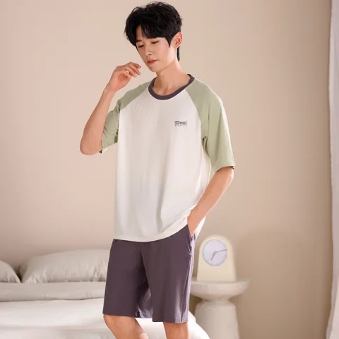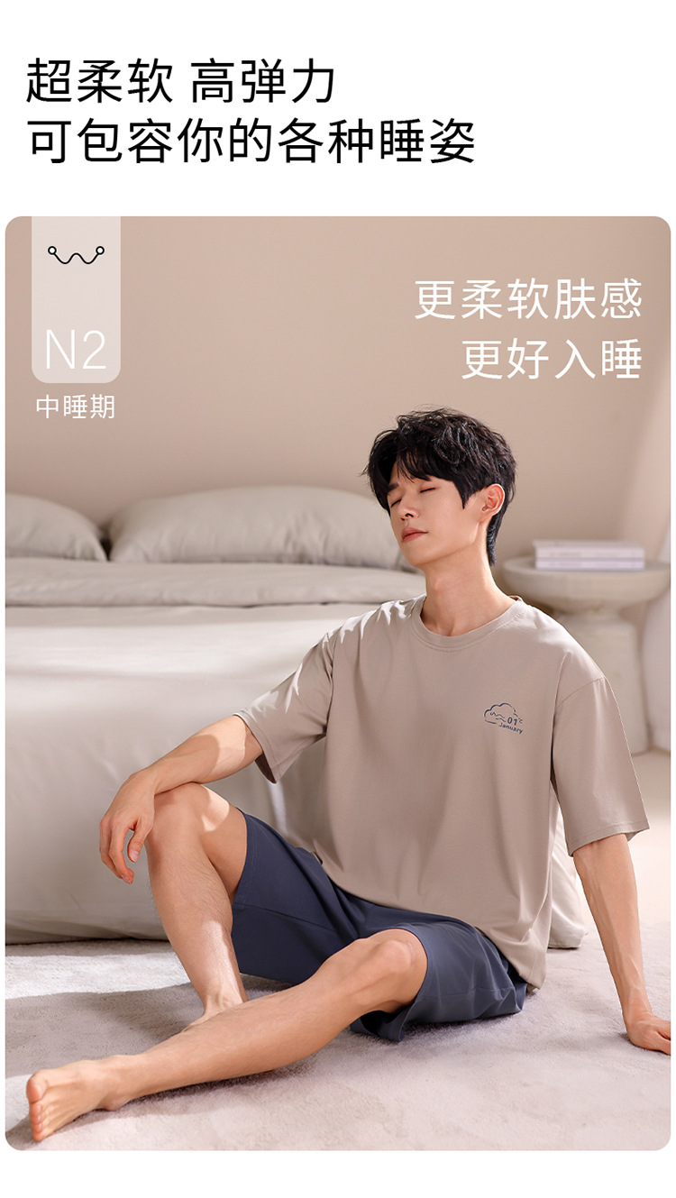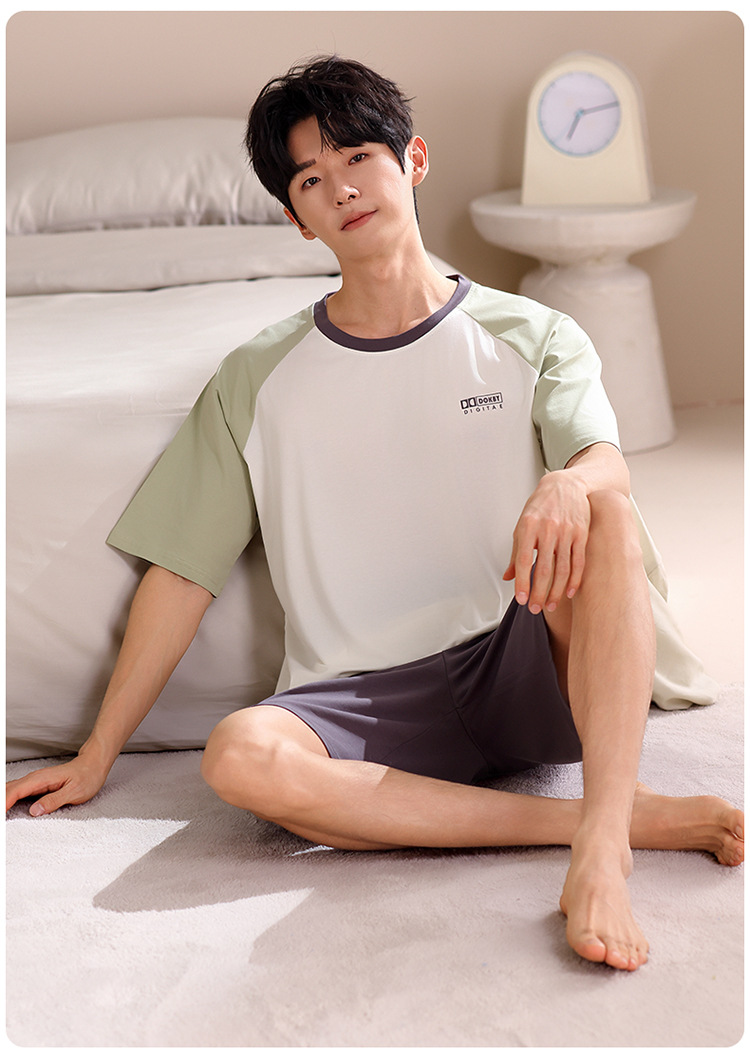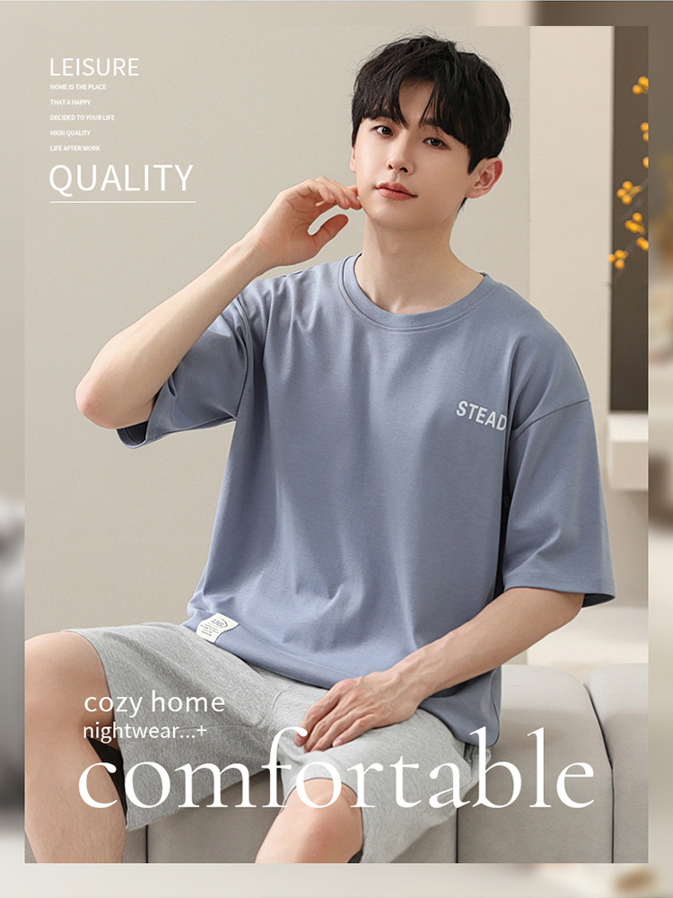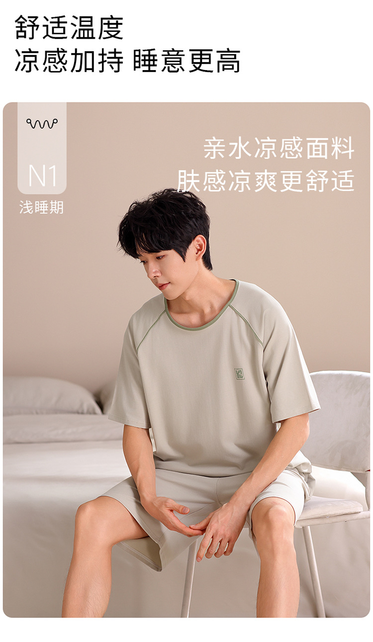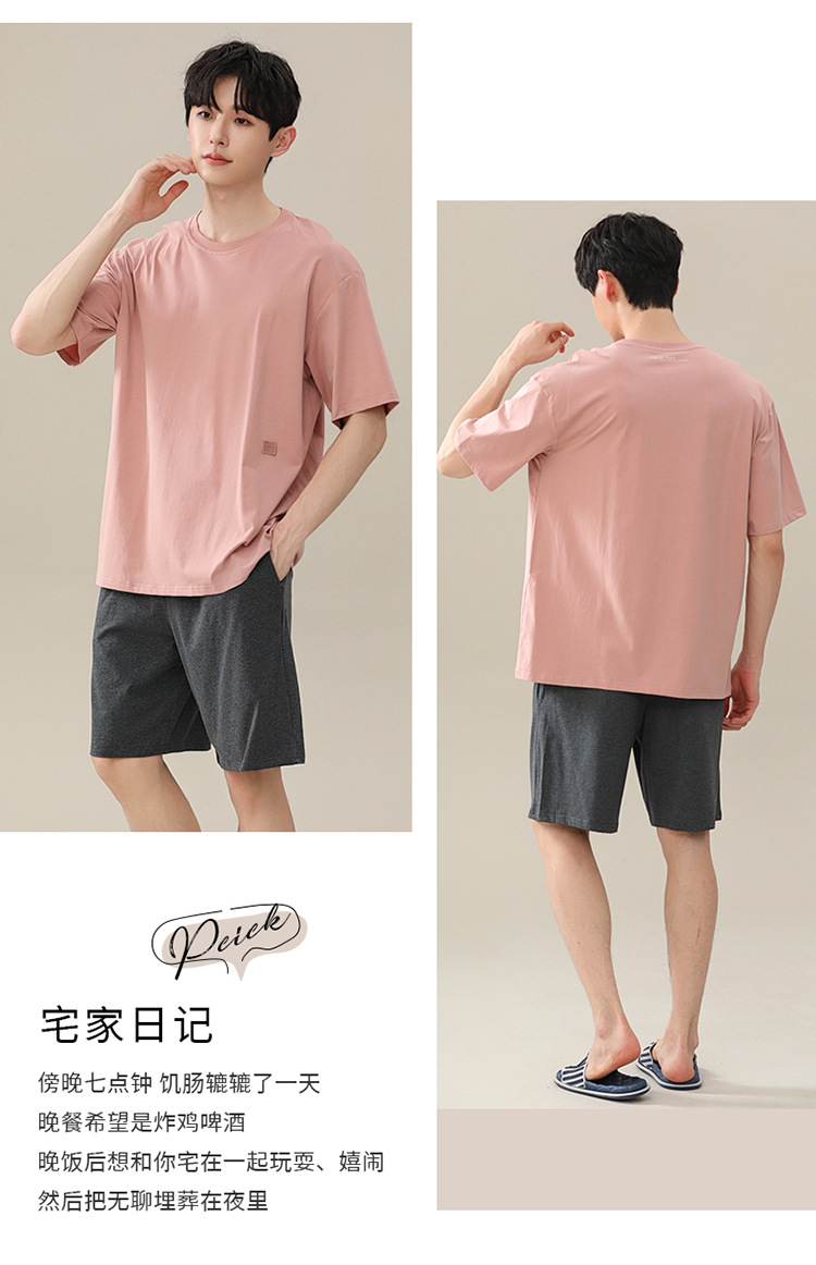 2024 새로운 모달 남성 잠옷 여름 얇은 반팔 반바지 둥근 목 단색 가정복 세트스토어 가기