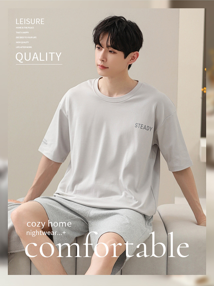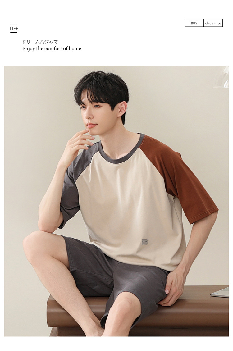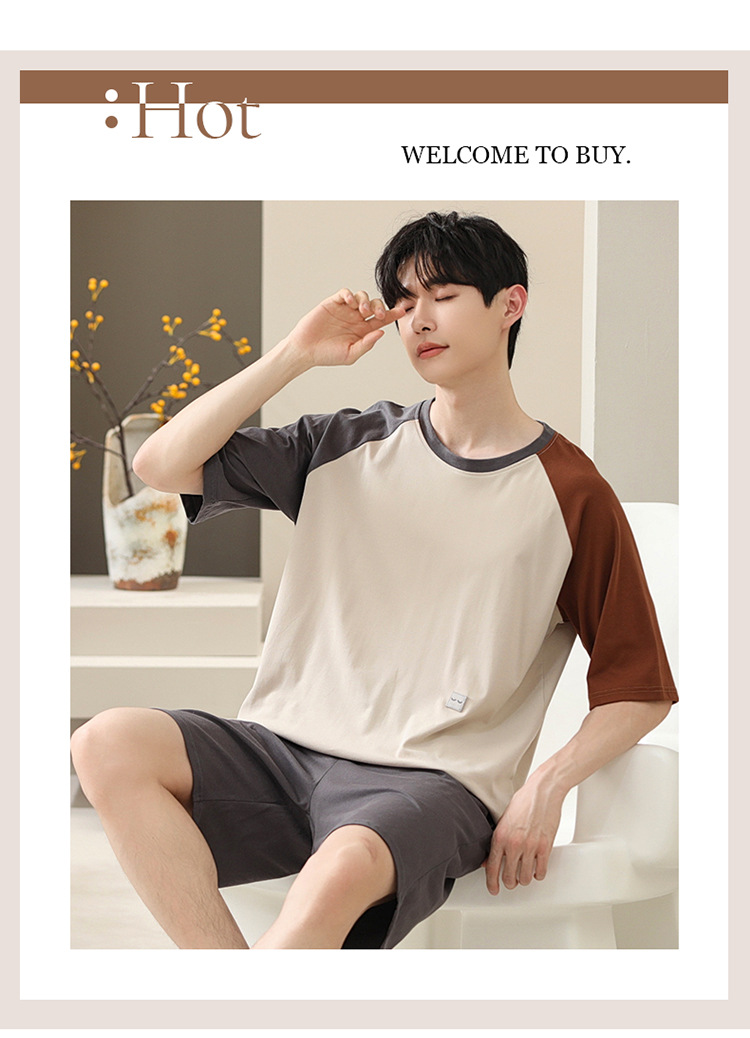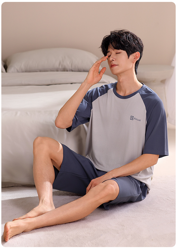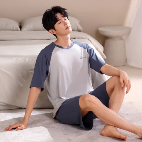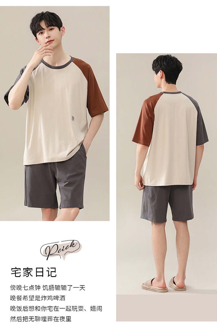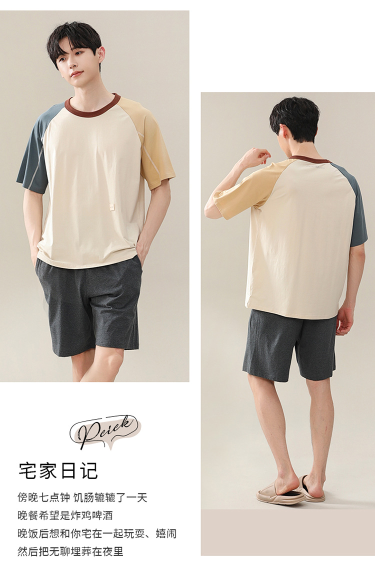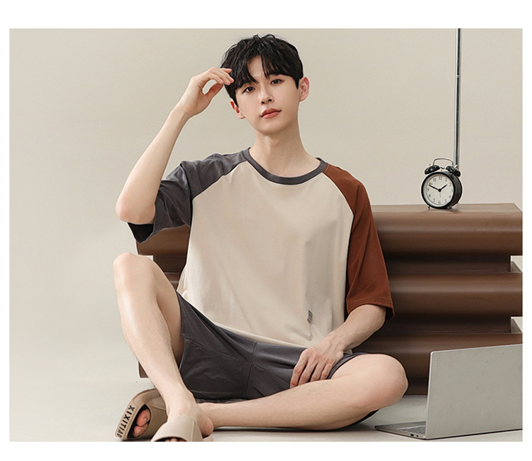 2024 새로운 모달 남성 잠옷 여름 얇은 반팔 반바지 둥근 목 단색 가정복 세트스토어 가기