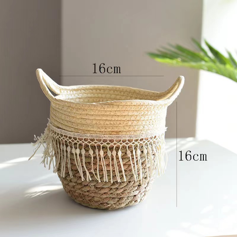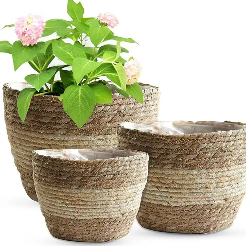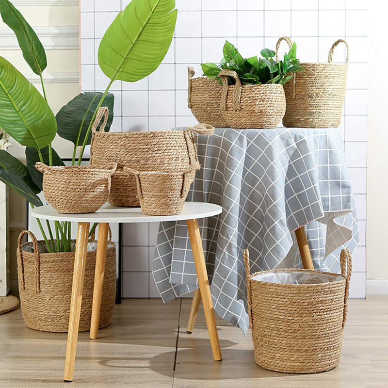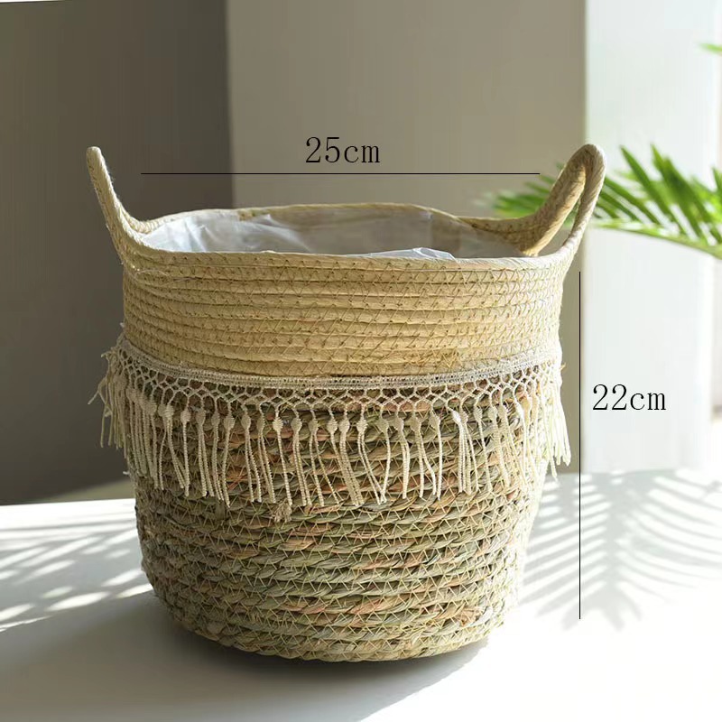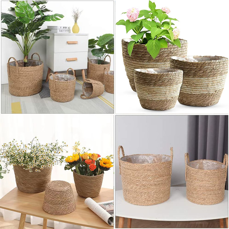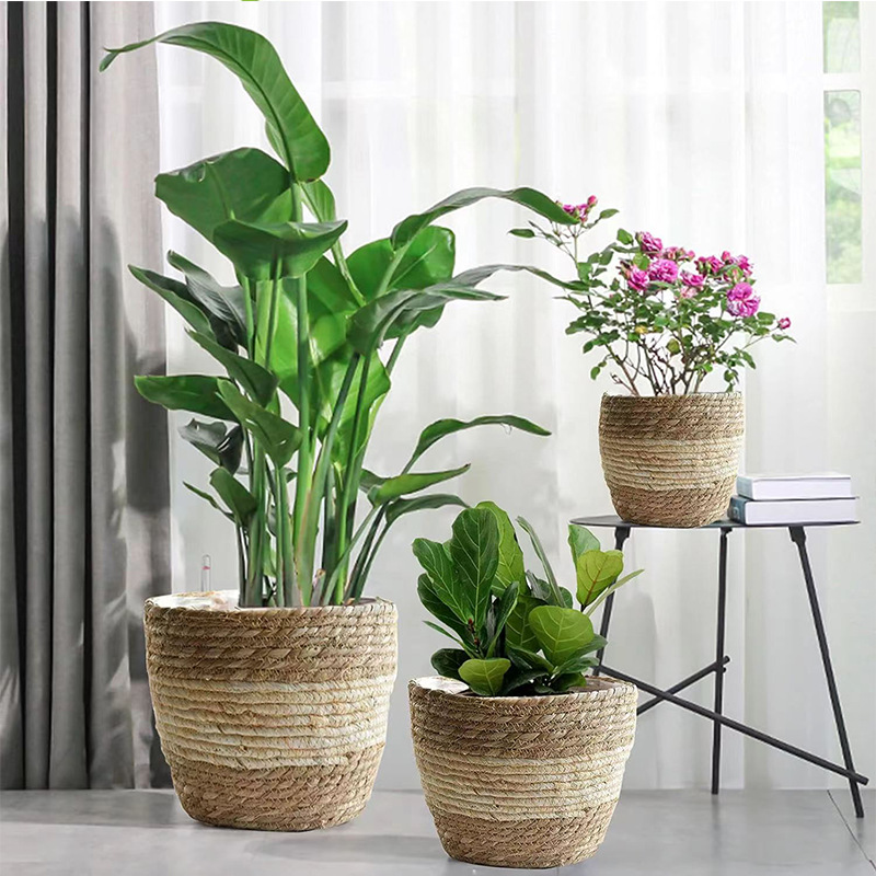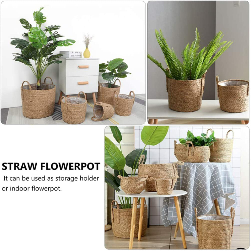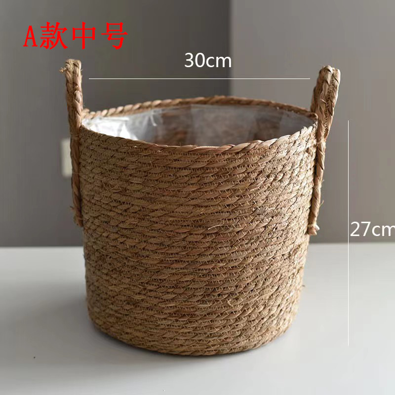 북유럽 스타일 특대형 풀짚 화분, 짠 화분 커버, 푸드라스틱 꽃바구니, 식물 바구니, 바닥에 놓는 분재 바구니, 등나무 바구니, INS 스타일