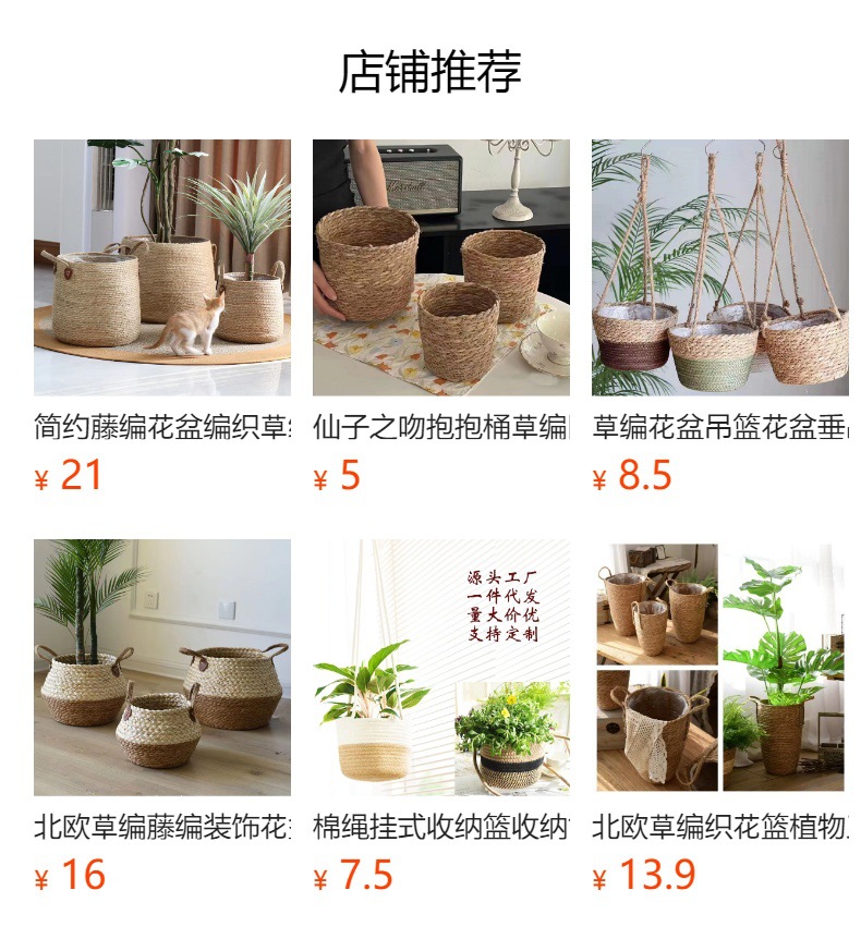 북유럽 스타일 특대형 풀짚 화분, 짠 화분 커버, 푸드라스틱 꽃바구니, 식물 바구니, 바닥에 놓는 분재 바구니, 등나무 바구니, INS 스타일스토어 가기