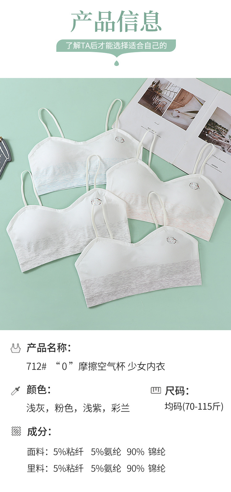 개발 기간 소녀 브래지어 스트랩 뷰티 백 안티 범프 바닥 소녀 고정 컵 원활한 중학생 원활한 속옷스토어 가기