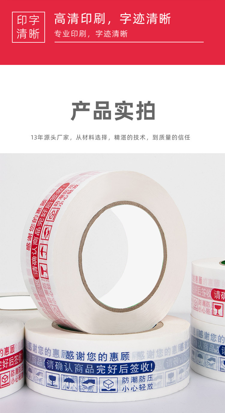 • 흰색 배경에 빨간색 문자; 폭 4.2xthick 2.5x 길이 150 (전체 상자에 40 롤이 필요함)